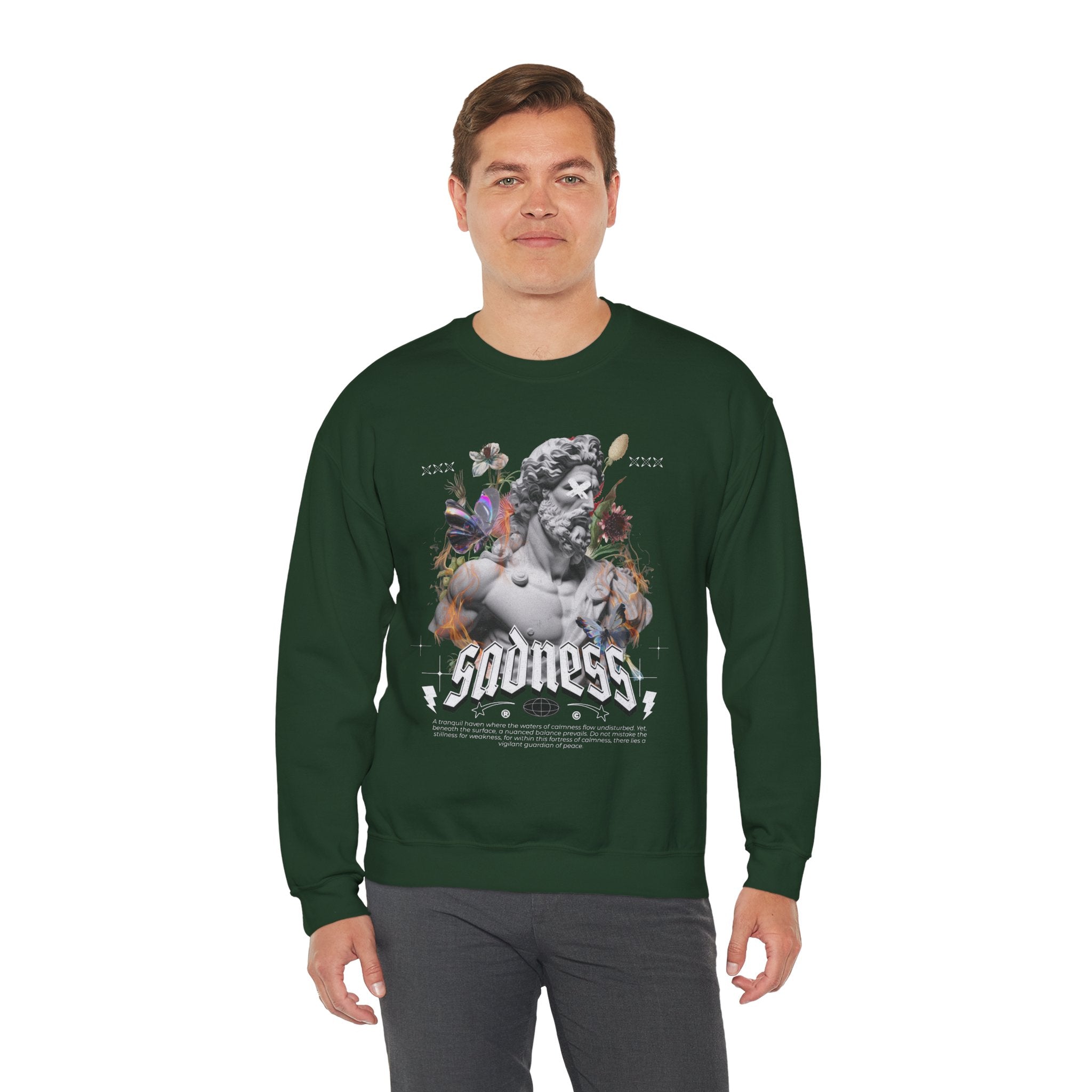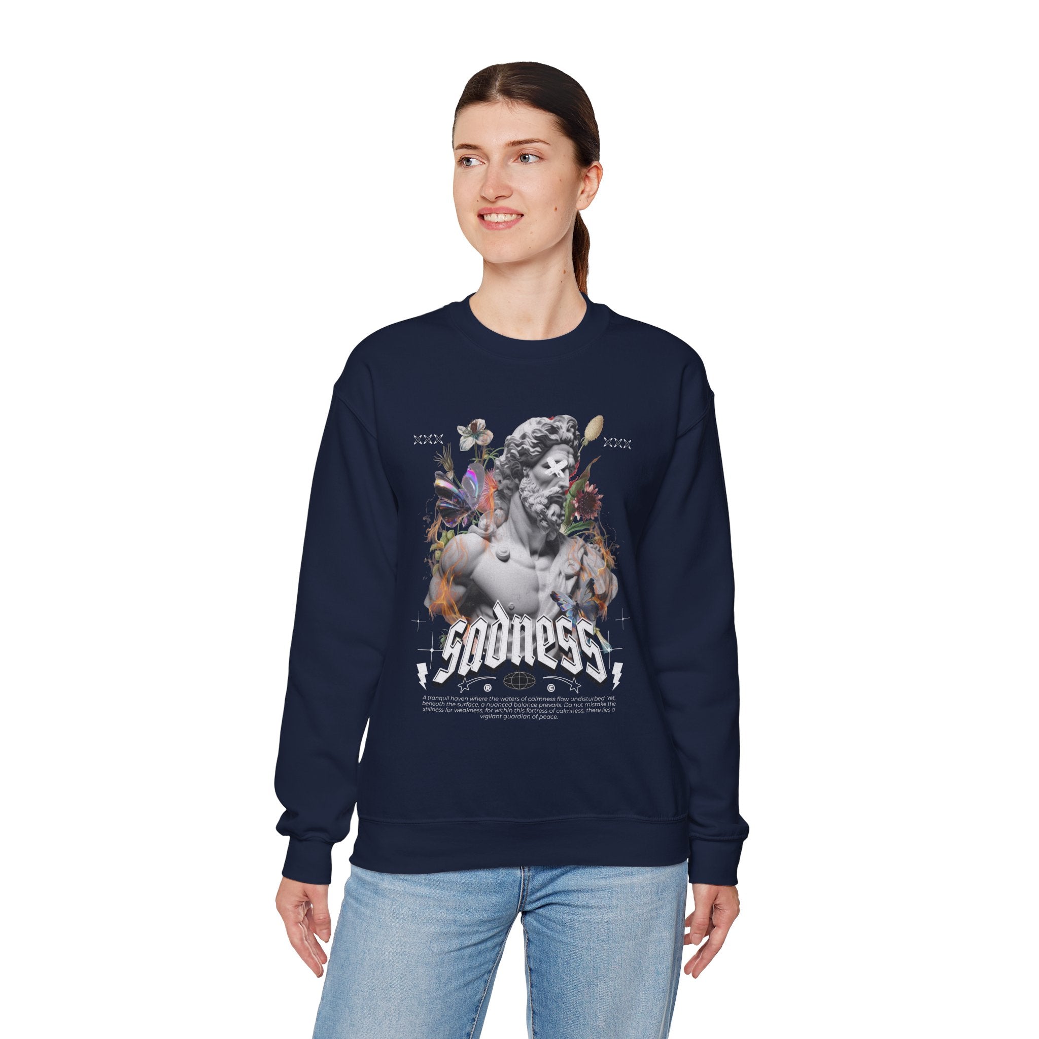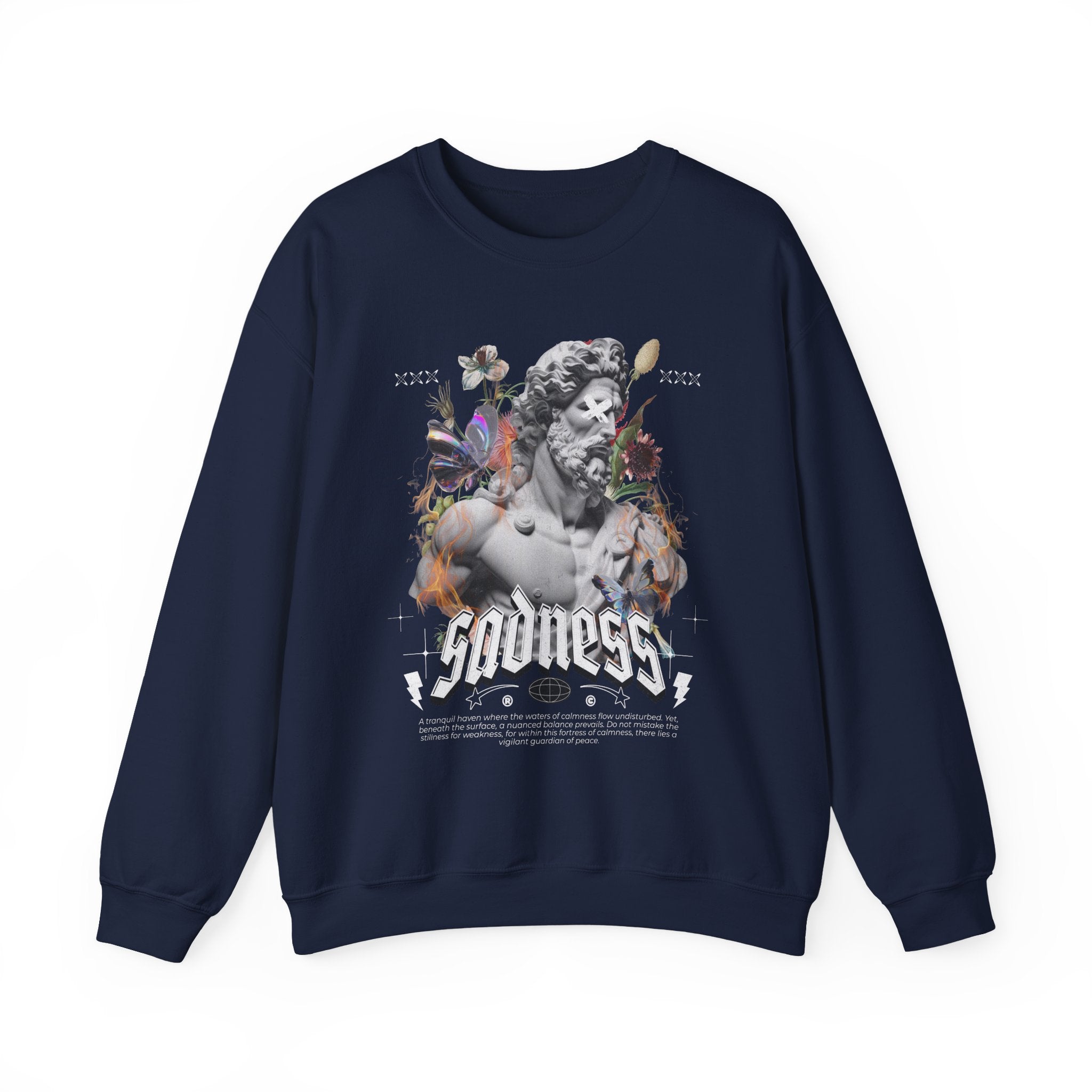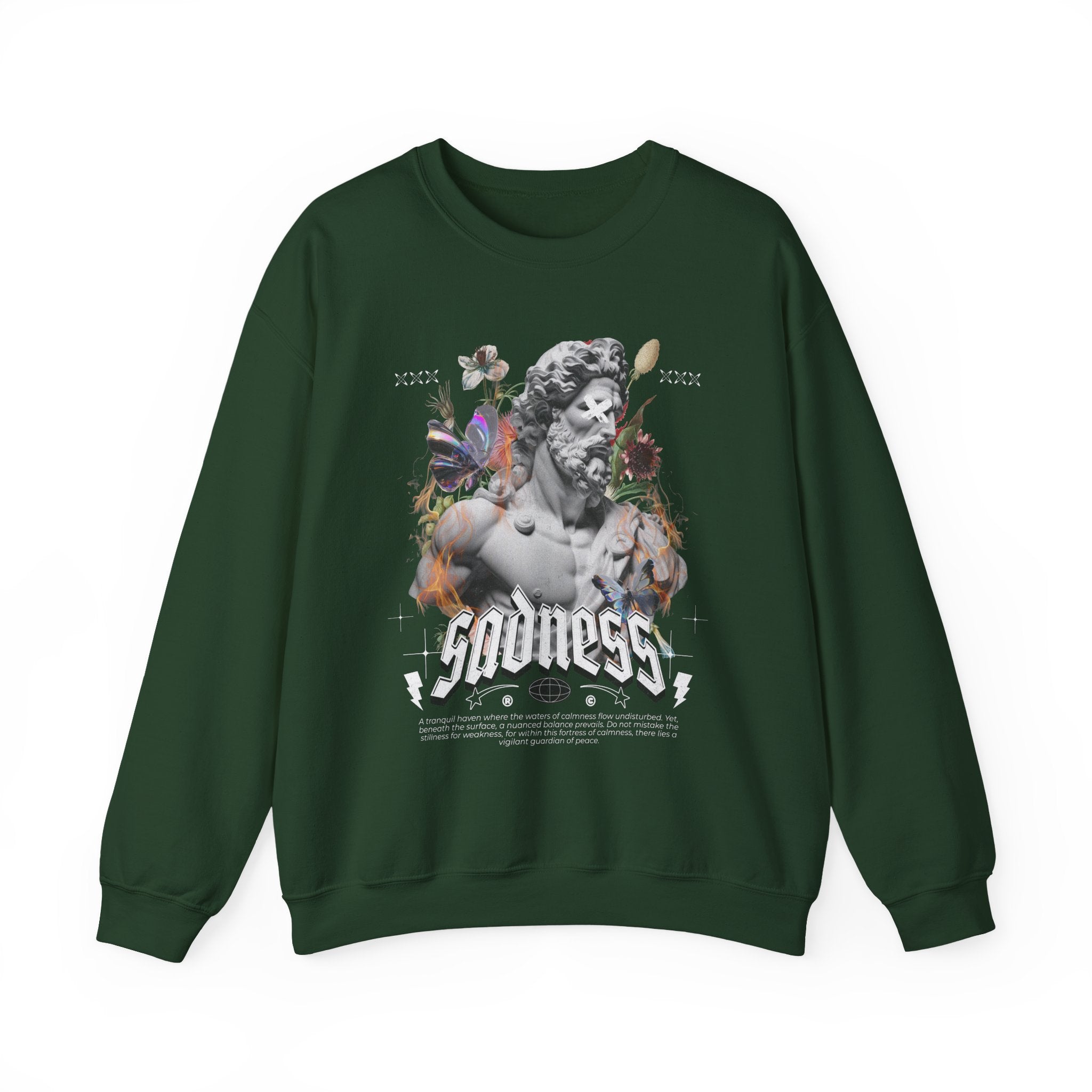 The Sadness Statue Art Crewneck Sweatshirt is more than clothing β itβs wearable art with meaning. Featuring a Greek-inspired statue graphic blended with surreal butterflies, flowers, flames, and bold typography, this piece reflects strength, melancholy, and artistic depth.