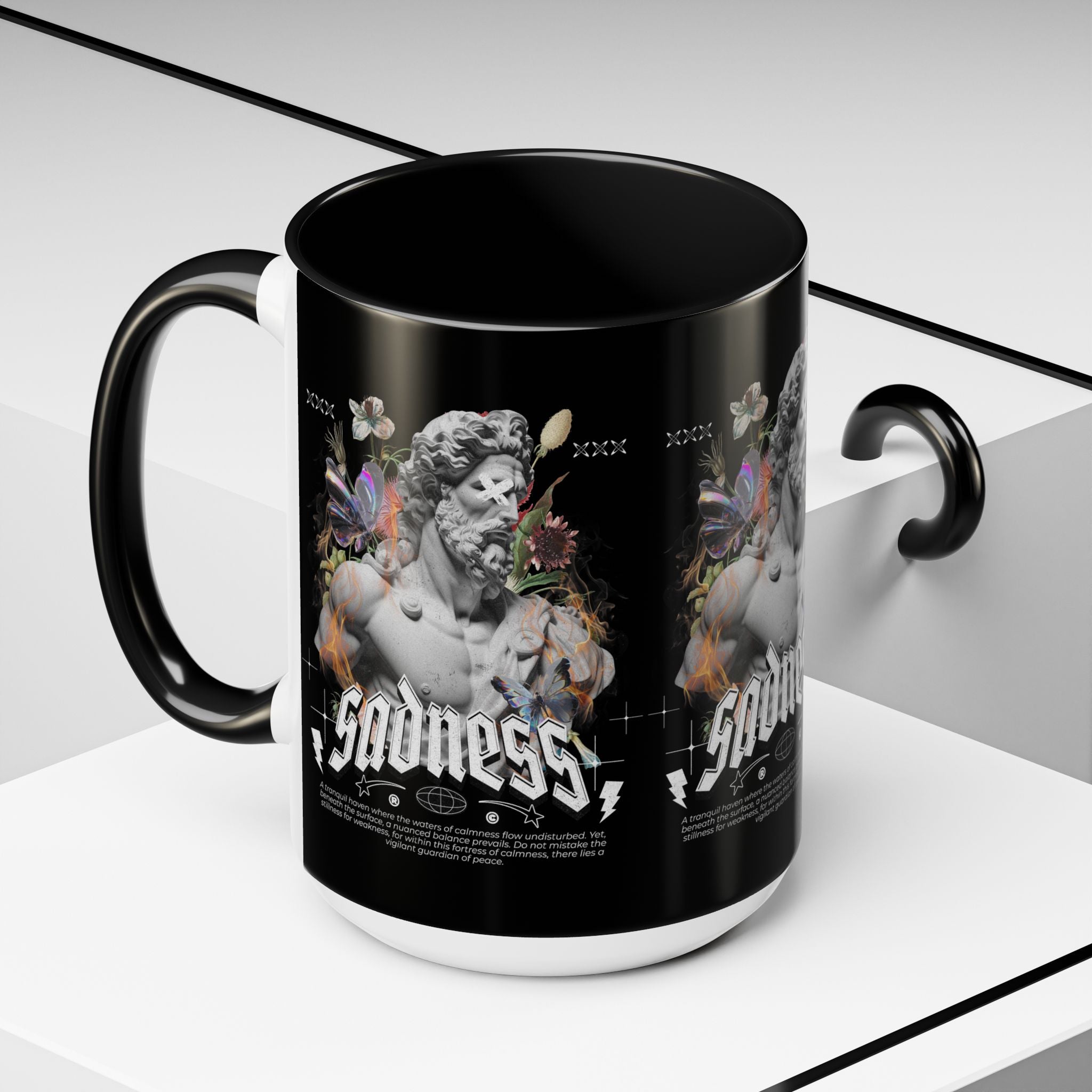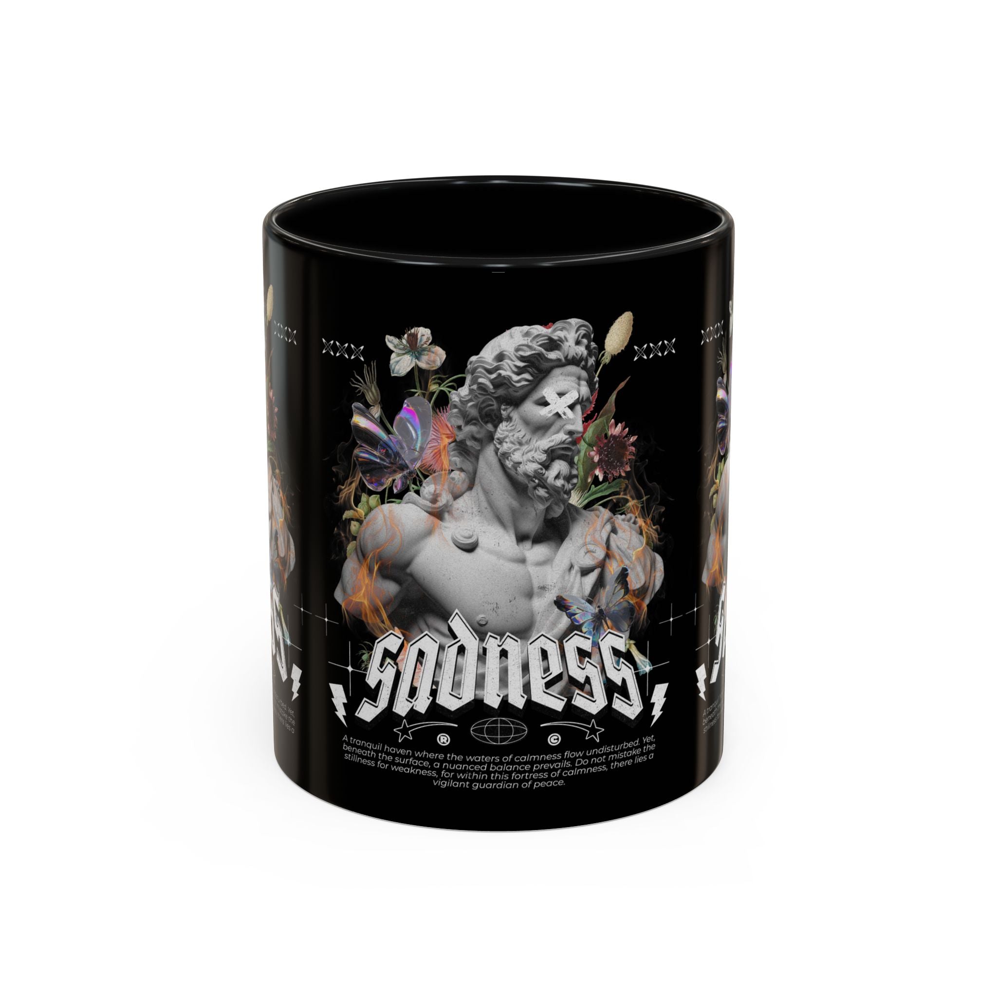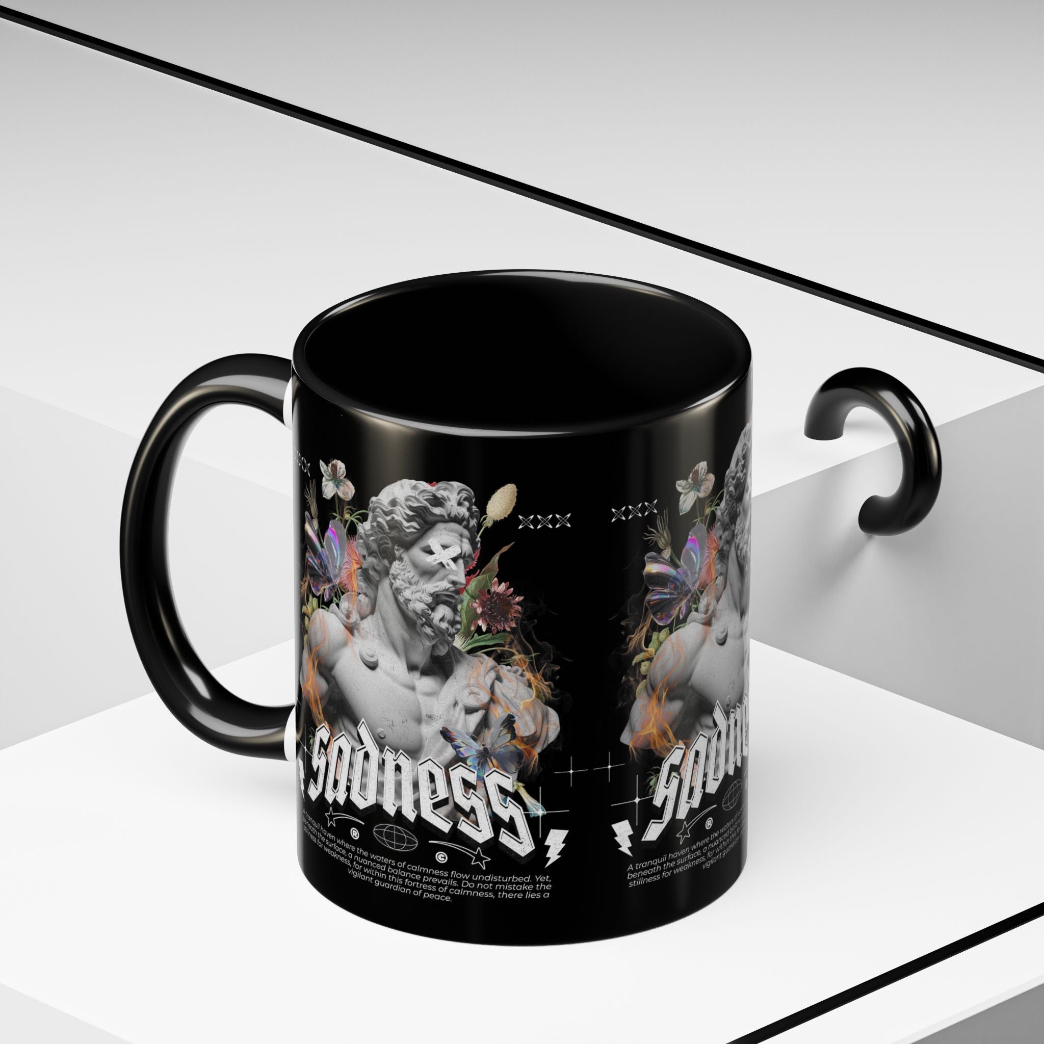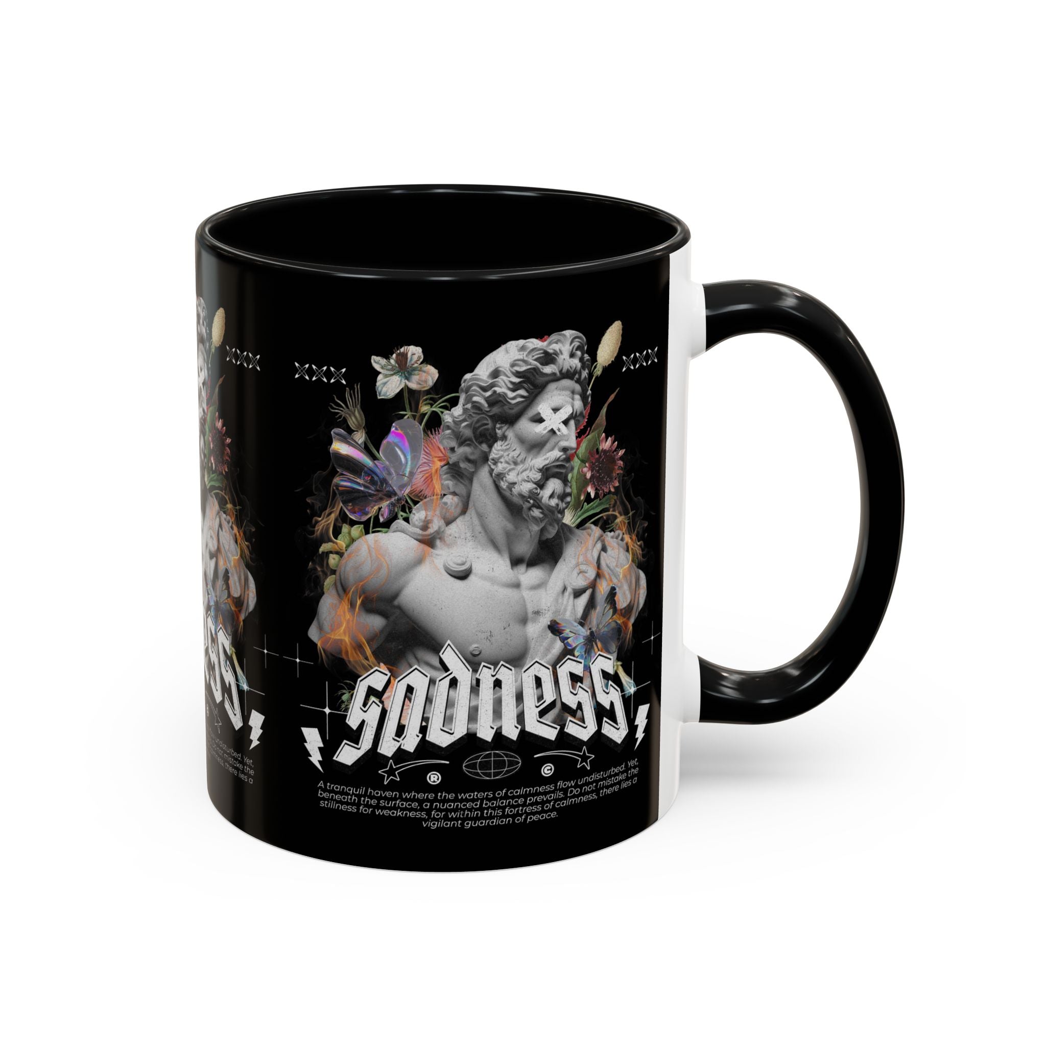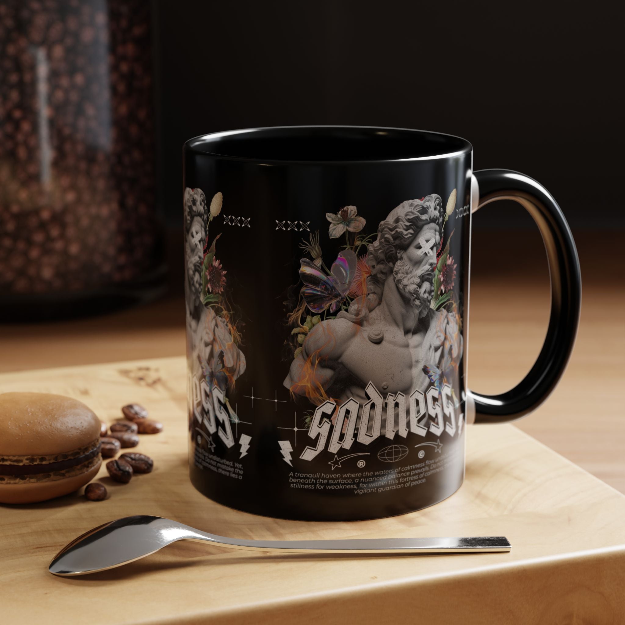 The Sadness Accent Coffee Mug combines classical art with modern street-style design. Featuring a stone statue with X-ed eyes, butterflies, and subtle flame accents, it’s more than just a coffee mug—it’s an expressive work of art. Perfect for lovers of gothic, artistic, and aesthetic styles, this mug speaks to those who find beauty in emotion.