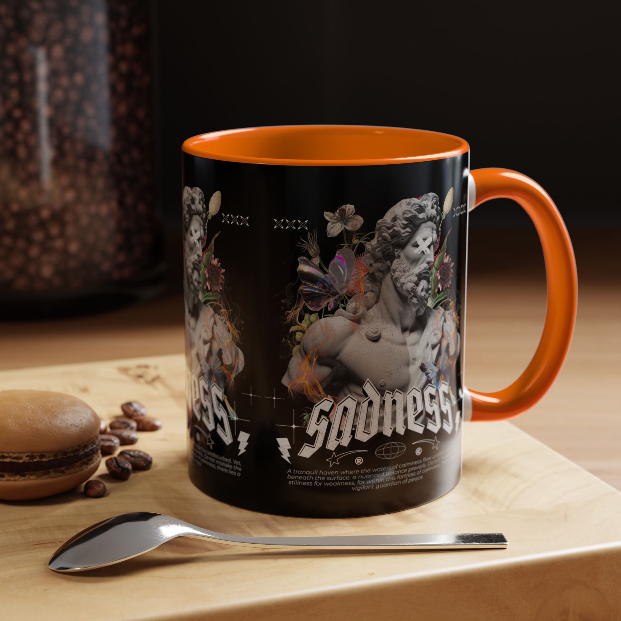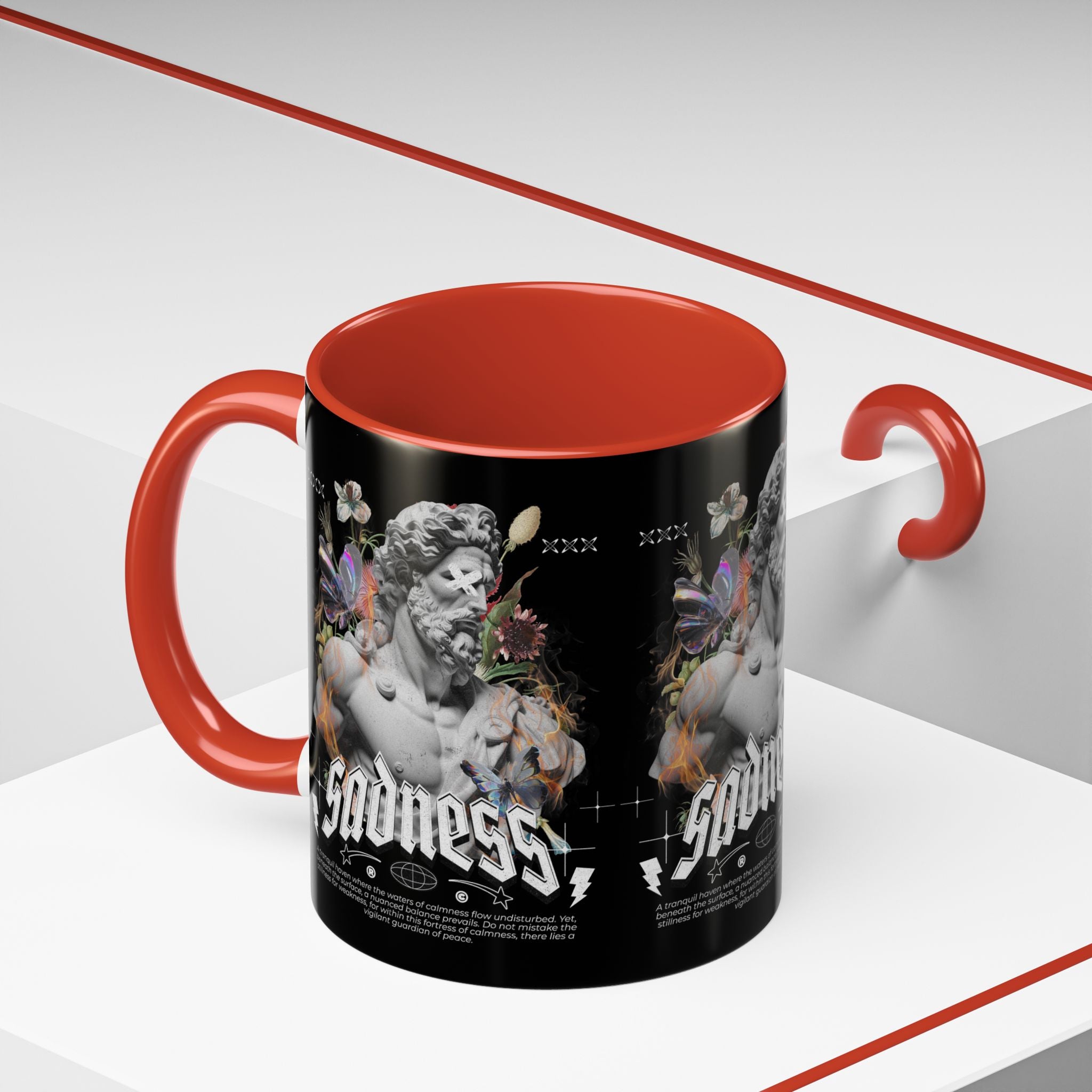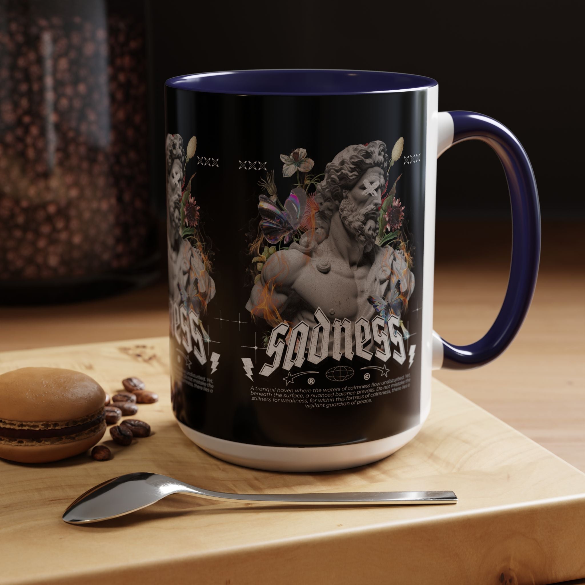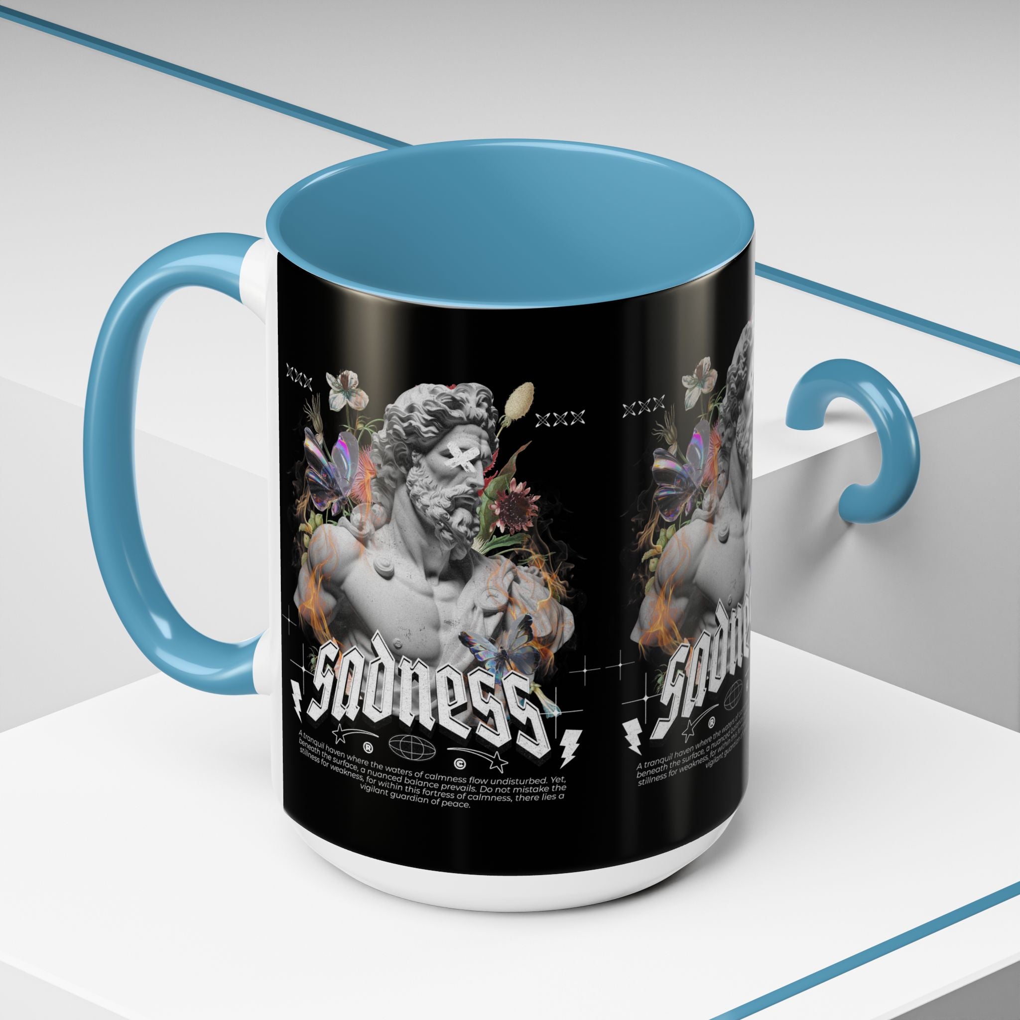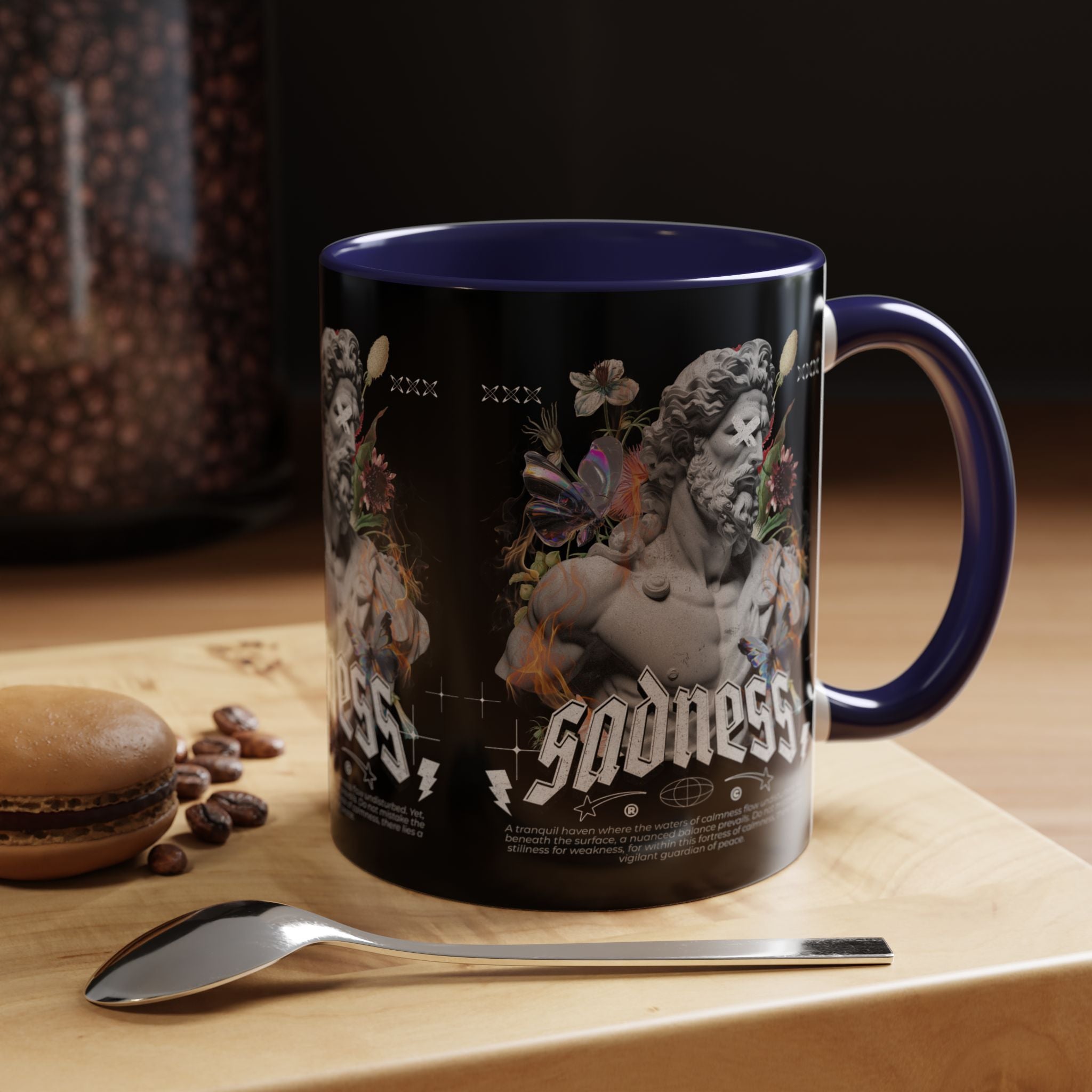The Sadness Accent Coffee Mug combines classical art with modern street-style design. Featuring a stone statue with X-ed eyes, butterflies, and subtle flame accents, it’s more than just a coffee mug—it’s an expressive work of art. Perfect for lovers of gothic, artistic, and aesthetic styles, this mug speaks to those who find beauty in emotion.