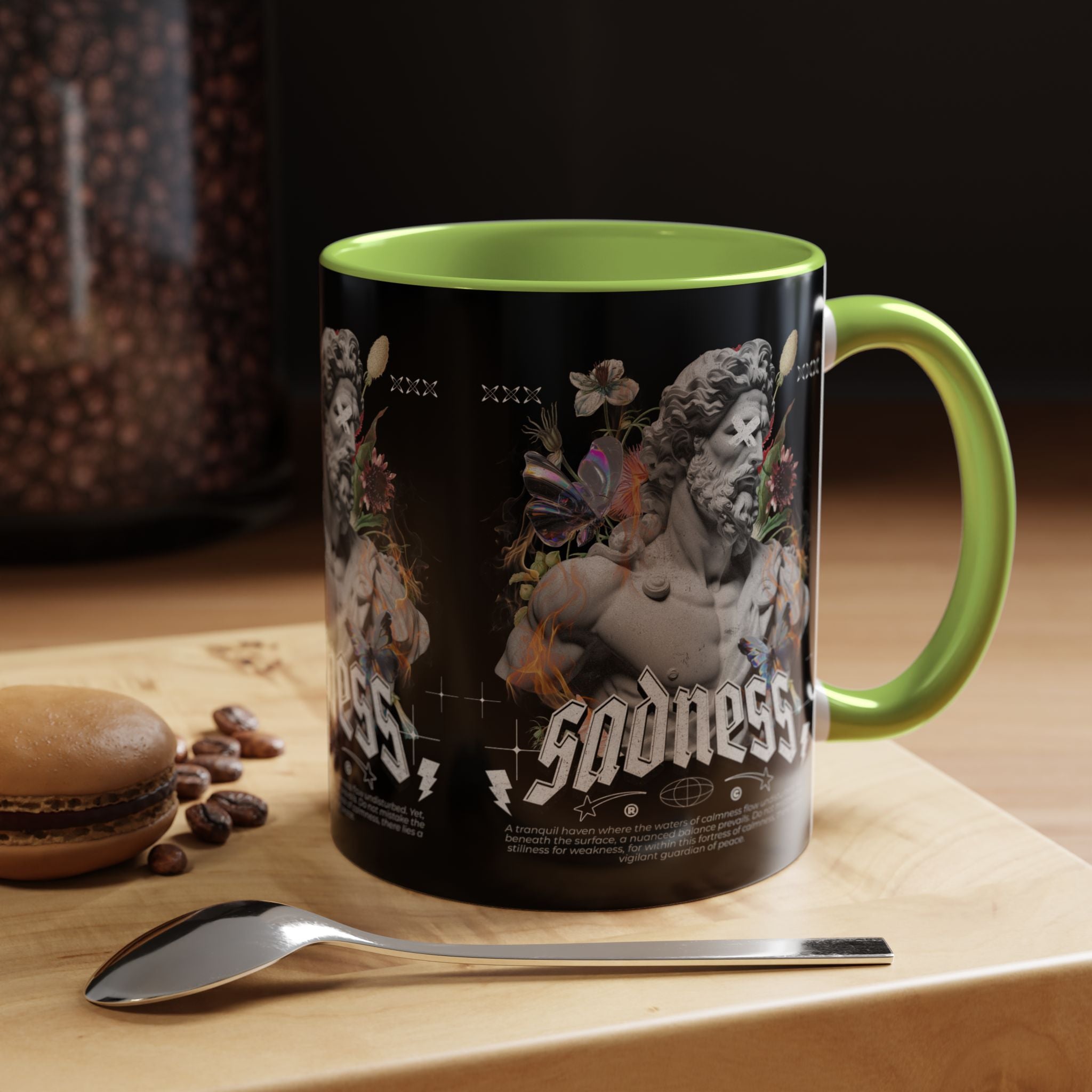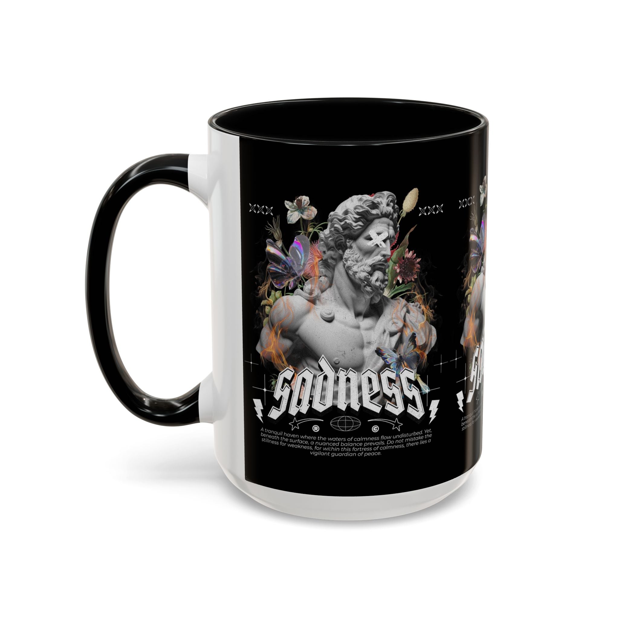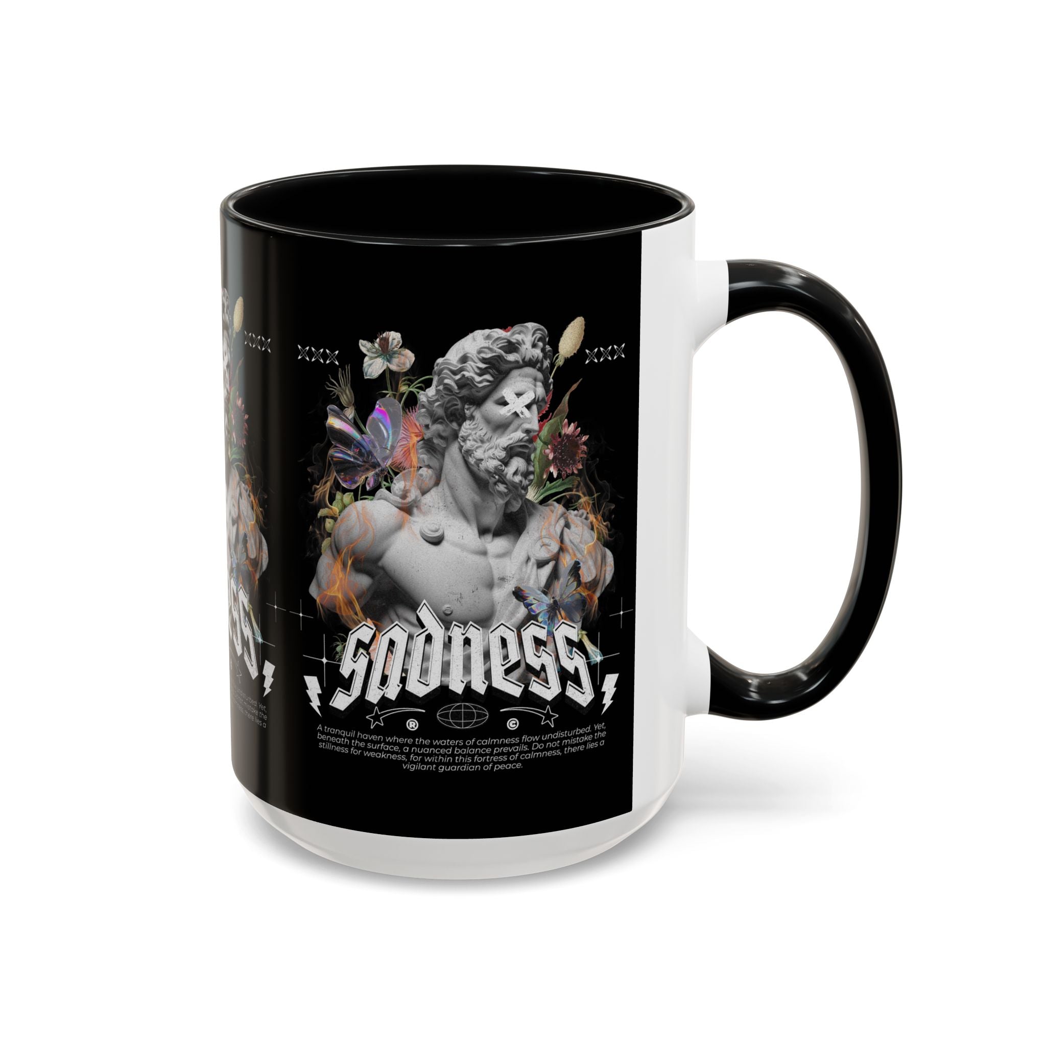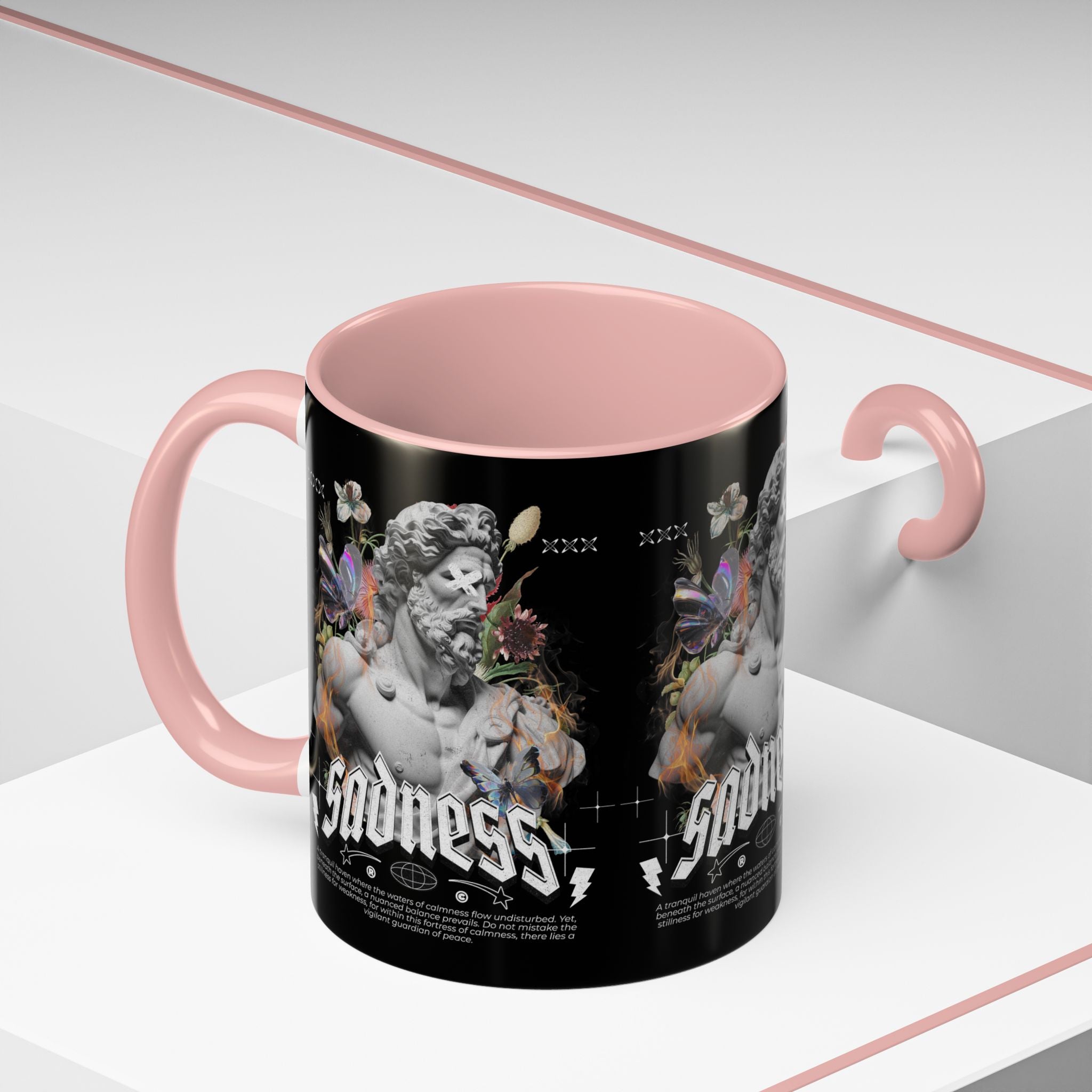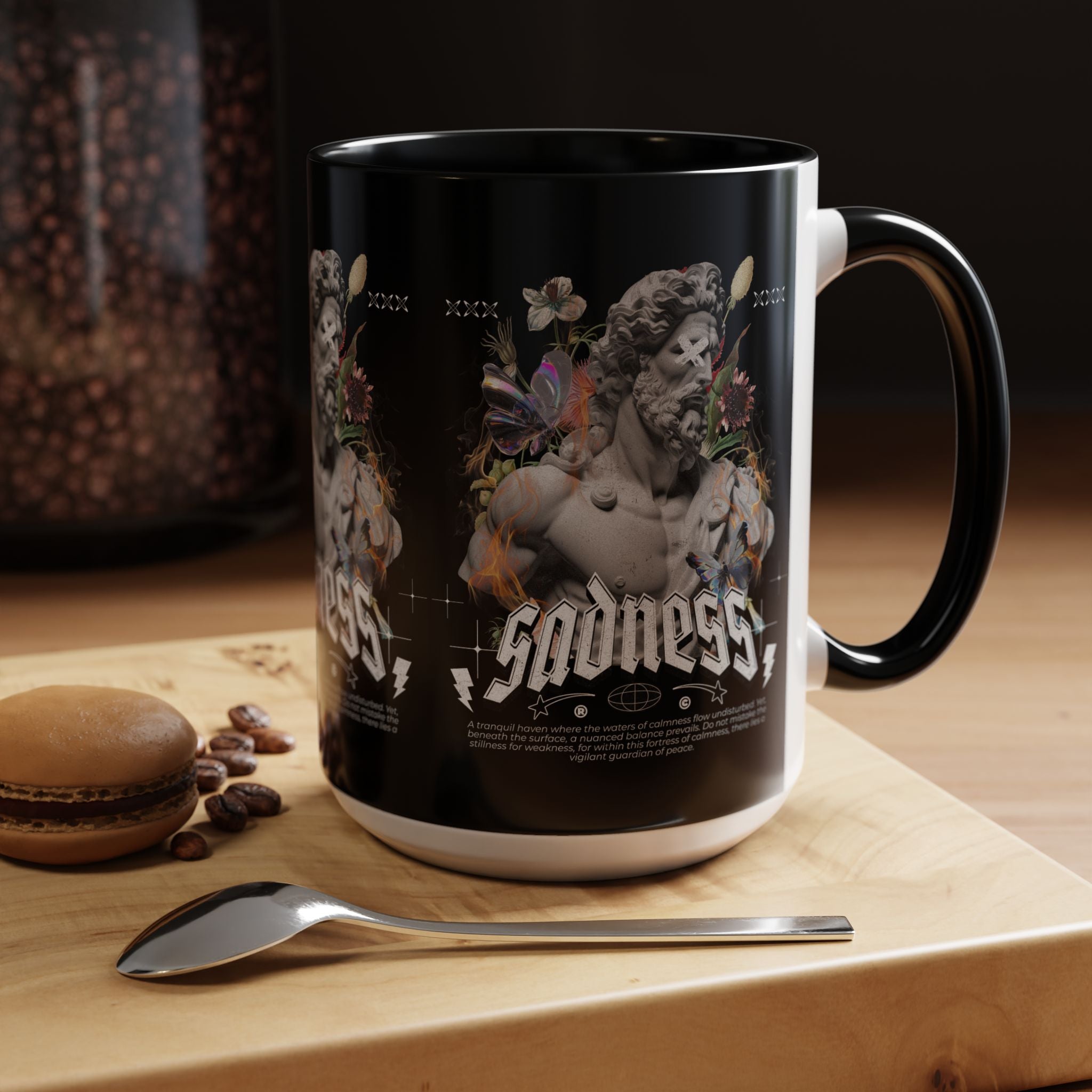 The Sadness Accent Coffee Mug combines classical art with modern street-style design. Featuring a stone statue with X-ed eyes, butterflies, and subtle flame accents, it’s more than just a coffee mug—it’s an expressive work of art. Perfect for lovers of gothic, artistic, and aesthetic styles, this mug speaks to those who find beauty in emotion.