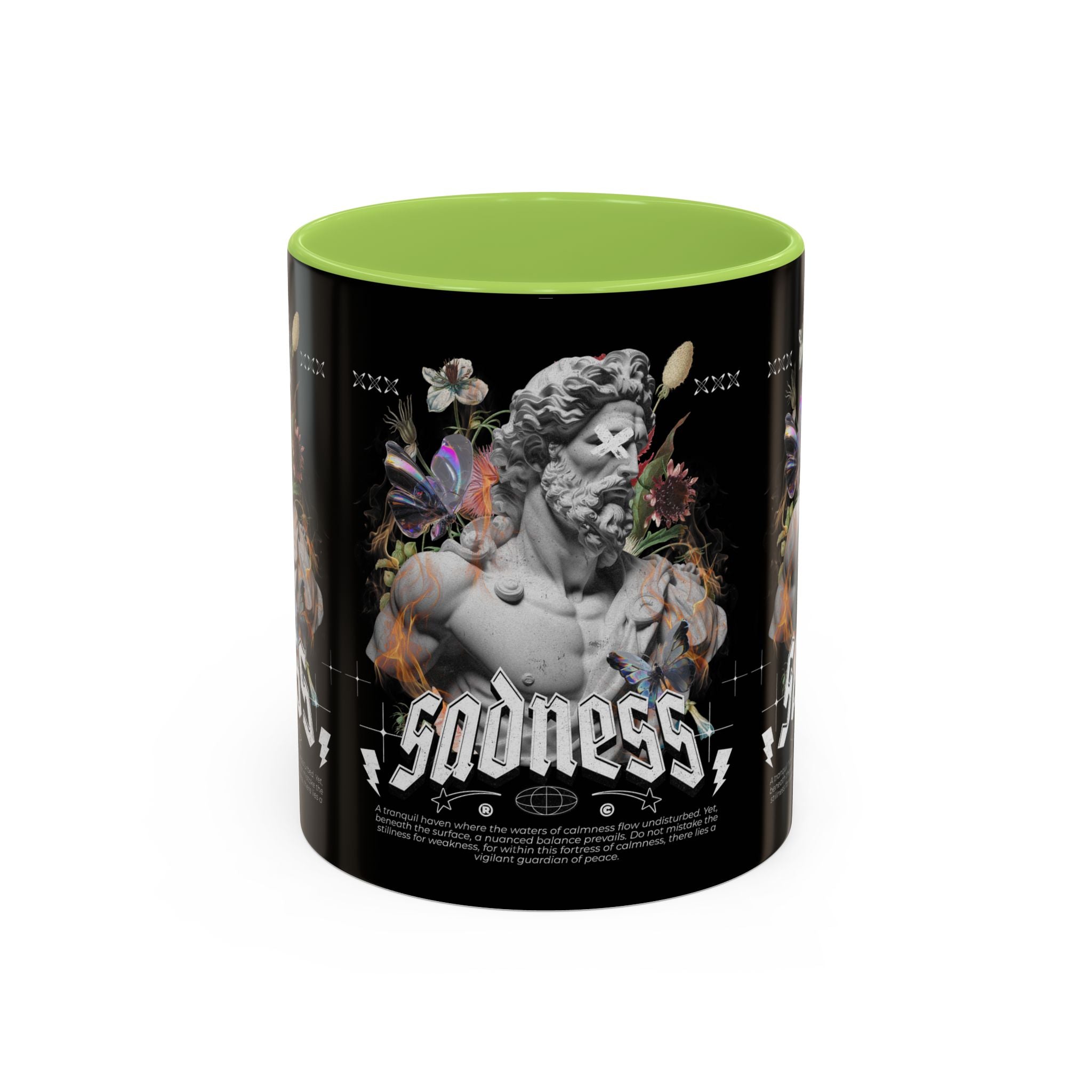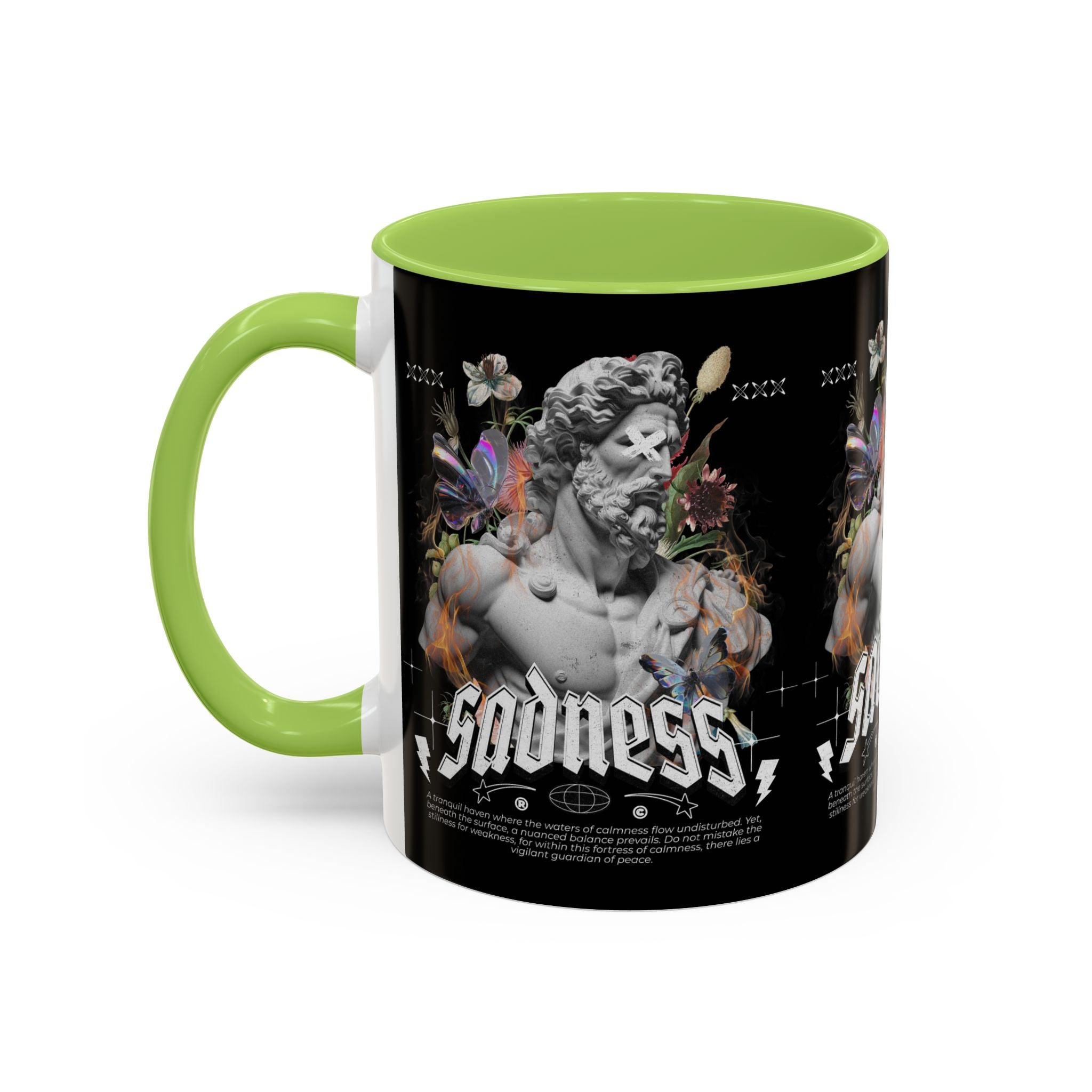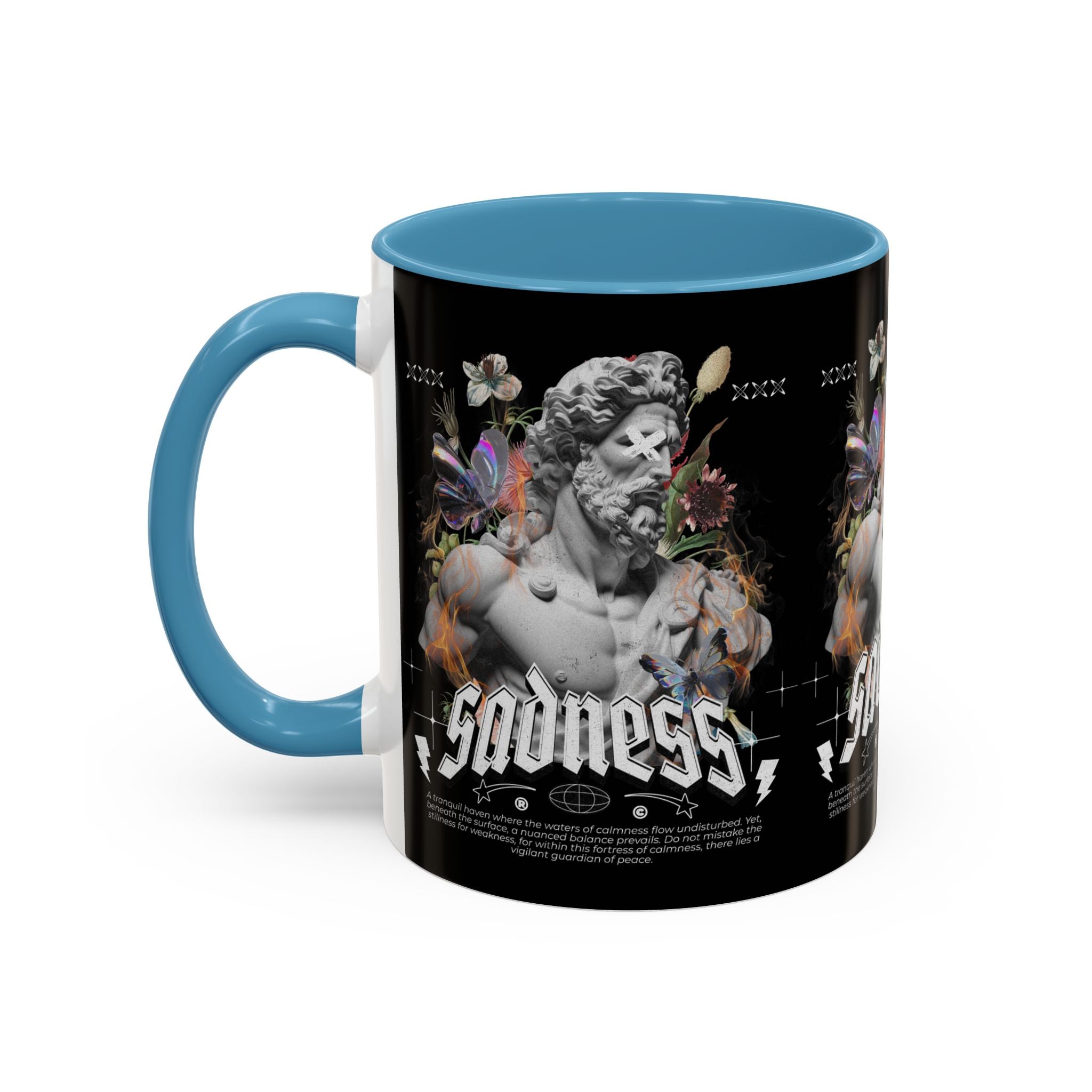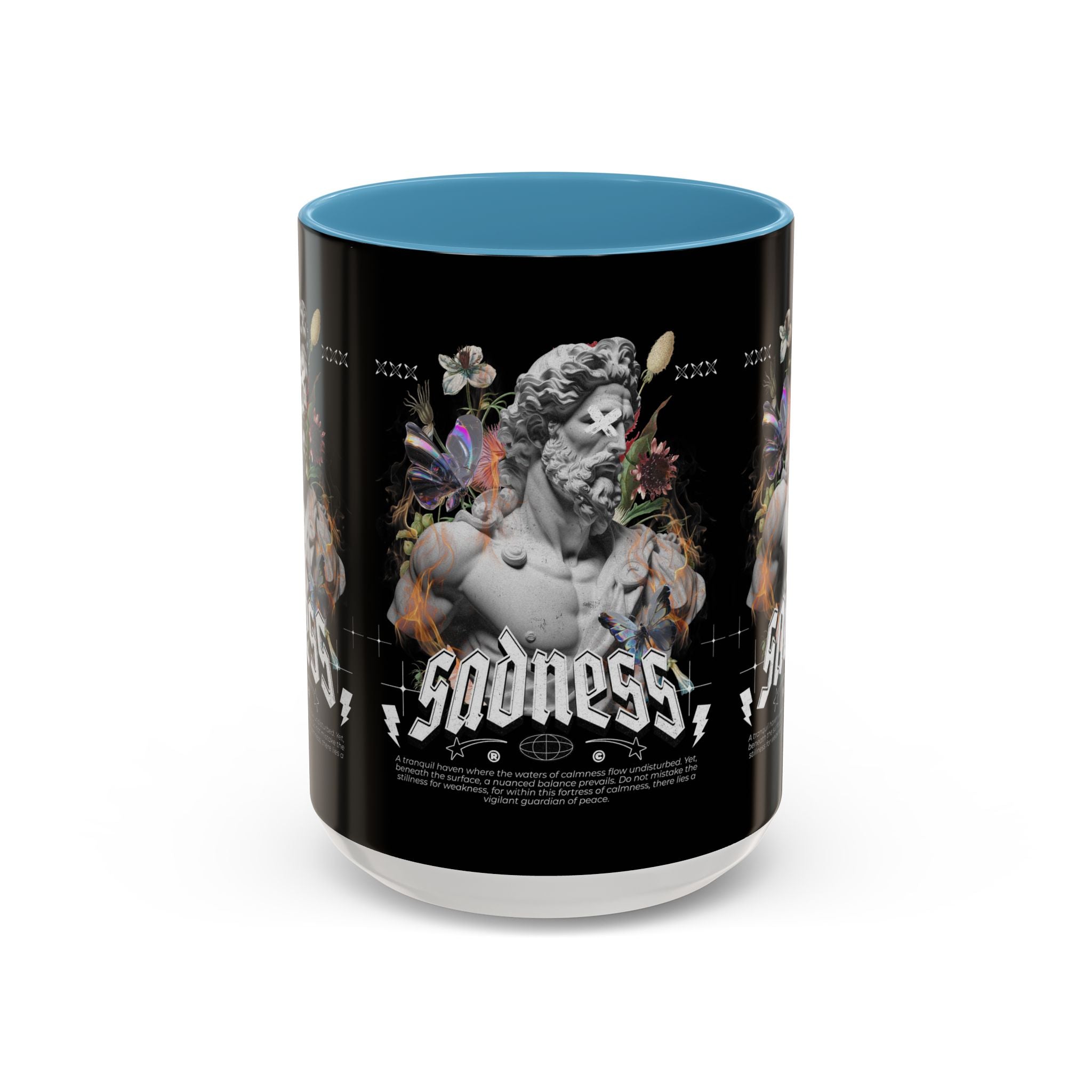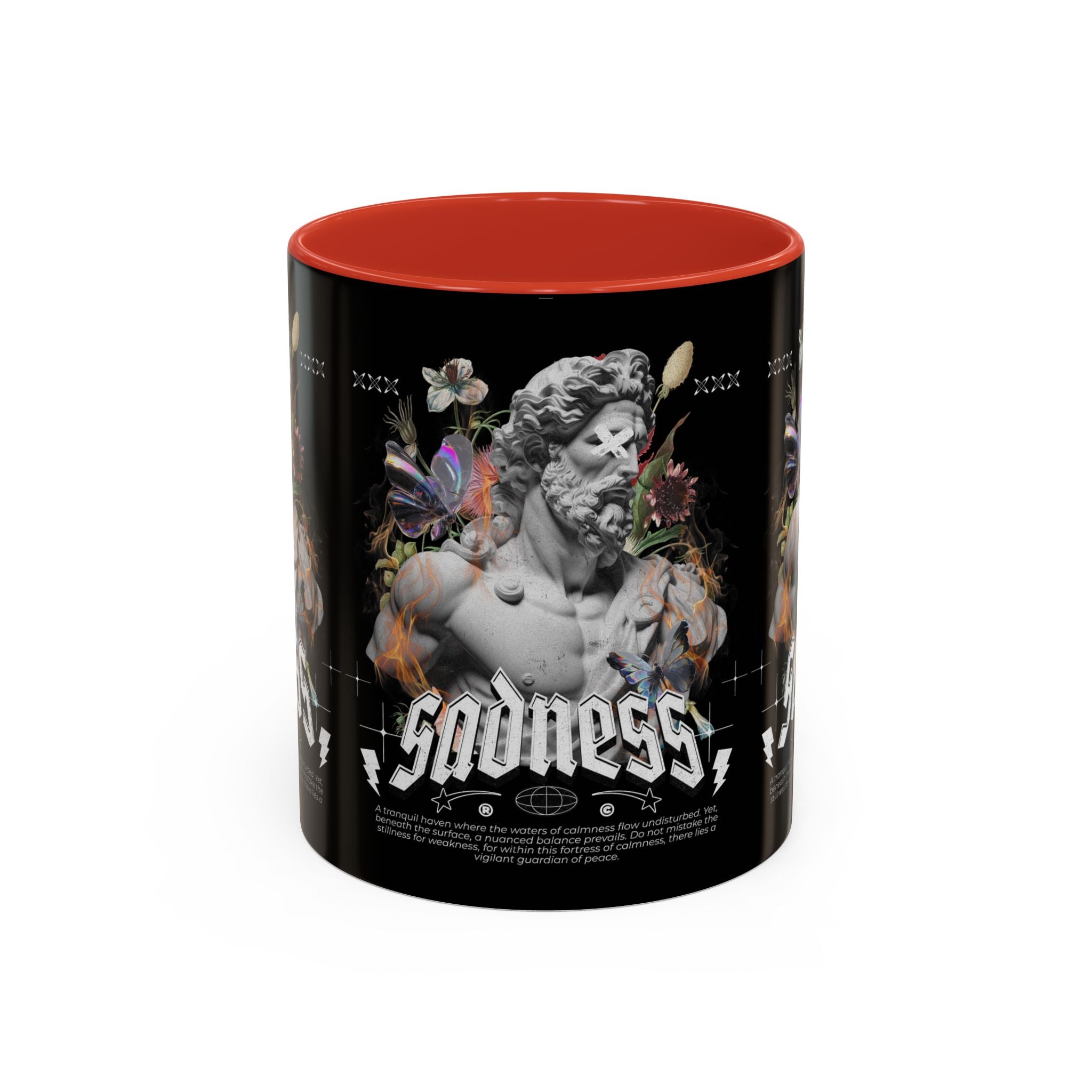 The Sadness Accent Coffee Mug combines classical art with modern street-style design. Featuring a stone statue with X-ed eyes, butterflies, and subtle flame accents, it’s more than just a coffee mug—it’s an expressive work of art. Perfect for lovers of gothic, artistic, and aesthetic styles, this mug speaks to those who find beauty in emotion.