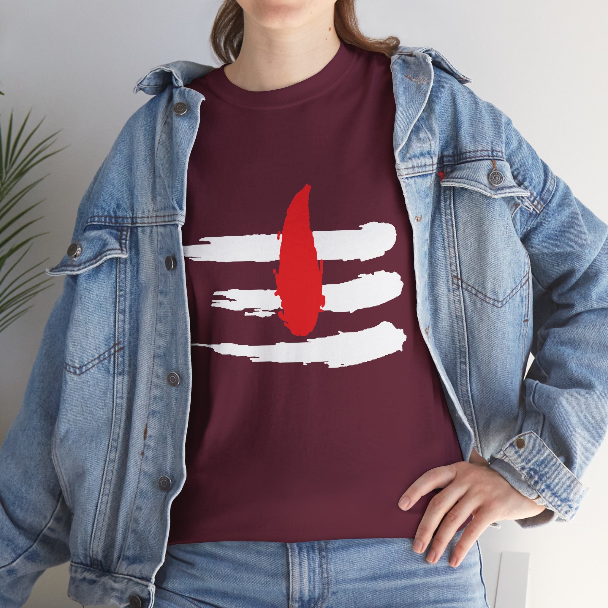 This Shiv Tilak design represents the sacred Tripundra with bold red vertical tilak symbolizing devotion to Mahadev. Minimal yet commanding, this design reflects spiritual strength, inner fire, and fearless identity.