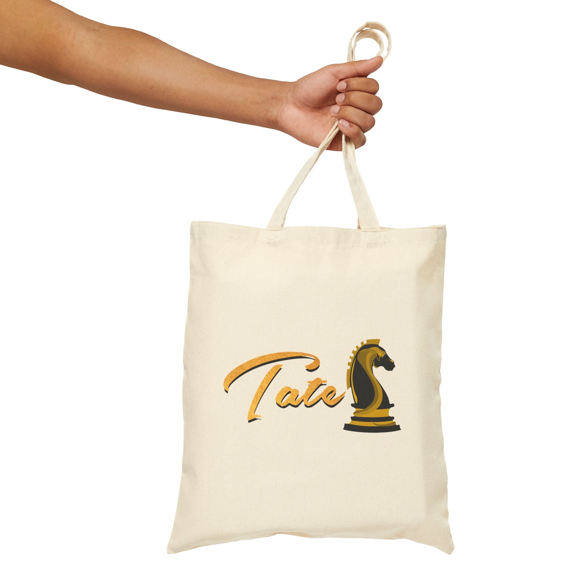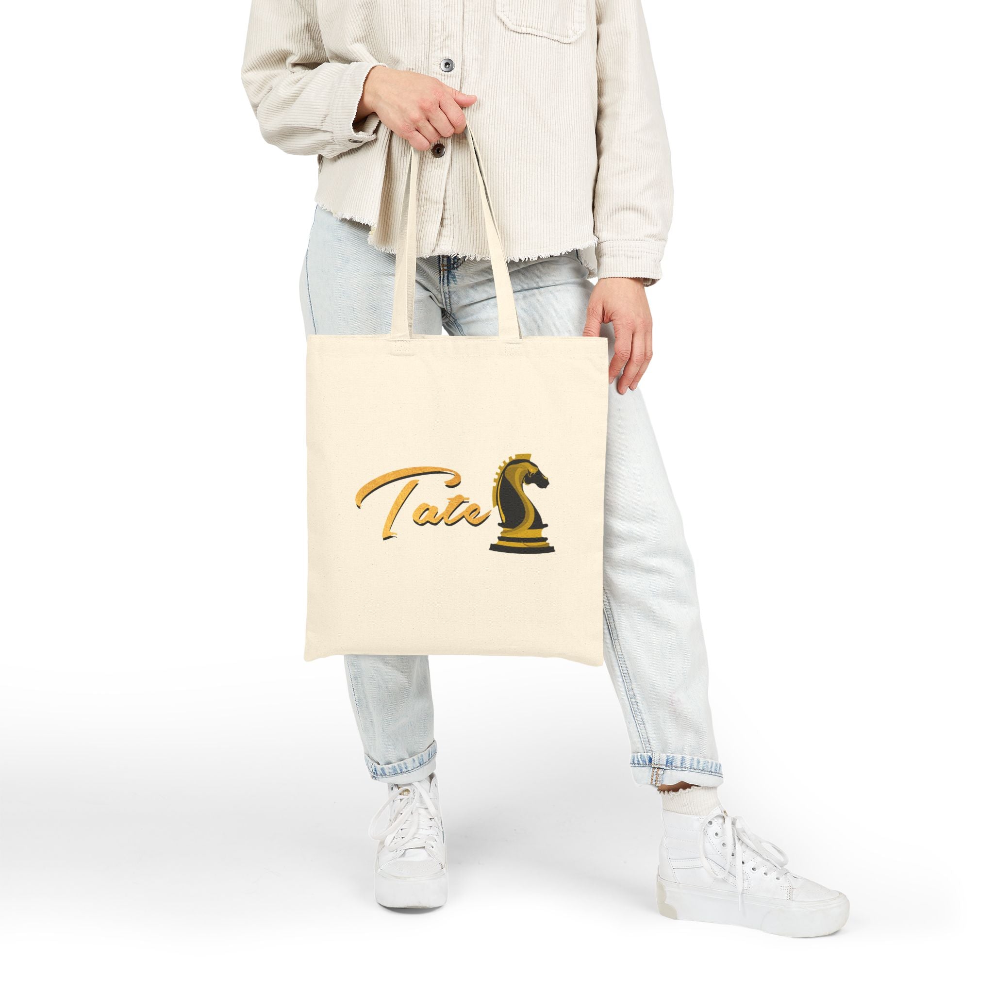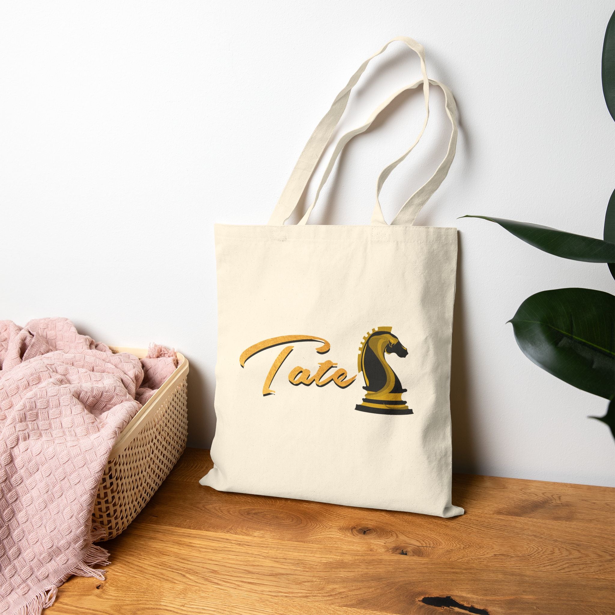The Tate Knight Cotton Canvas Tote Bag isn’t just a bag — it’s a symbol of strategy, discipline, and the power of the hustler mindset. Featuring a bold knight chess piece and Tate script logo, this tote is designed for those who value entrepreneurship, ambition, and smart moves in life.