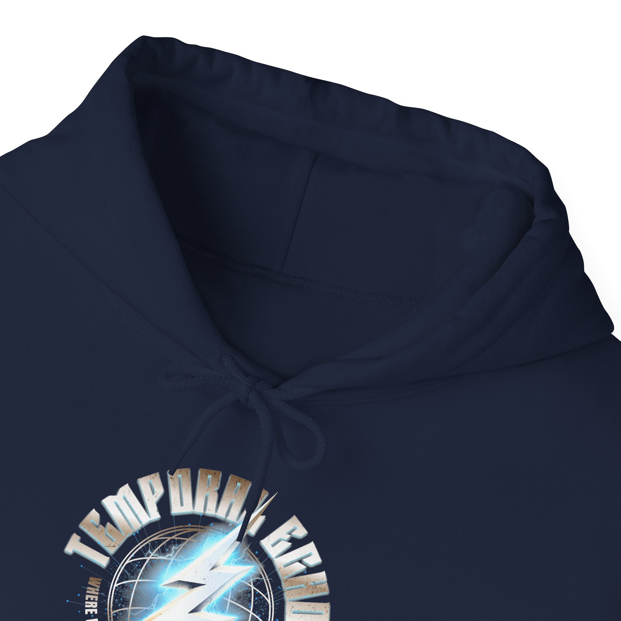 Step into the Temporal Echo Hooded Sweatshirt, where past, present, and future collide in a flash of lightning. Featuring a bold globe and lightning design, this hoodie is more than apparel—it’s a symbol of strength, time, and unstoppable energy.