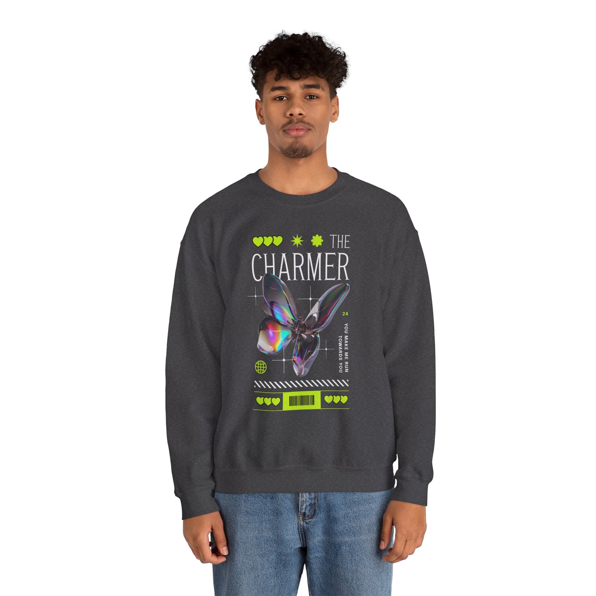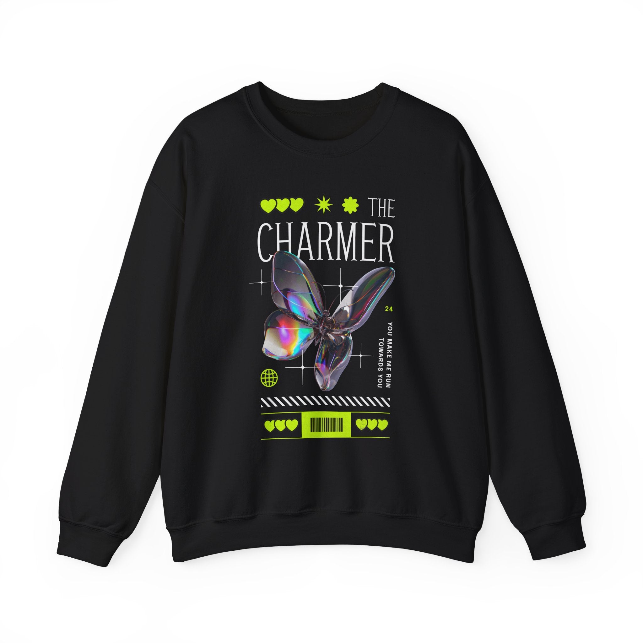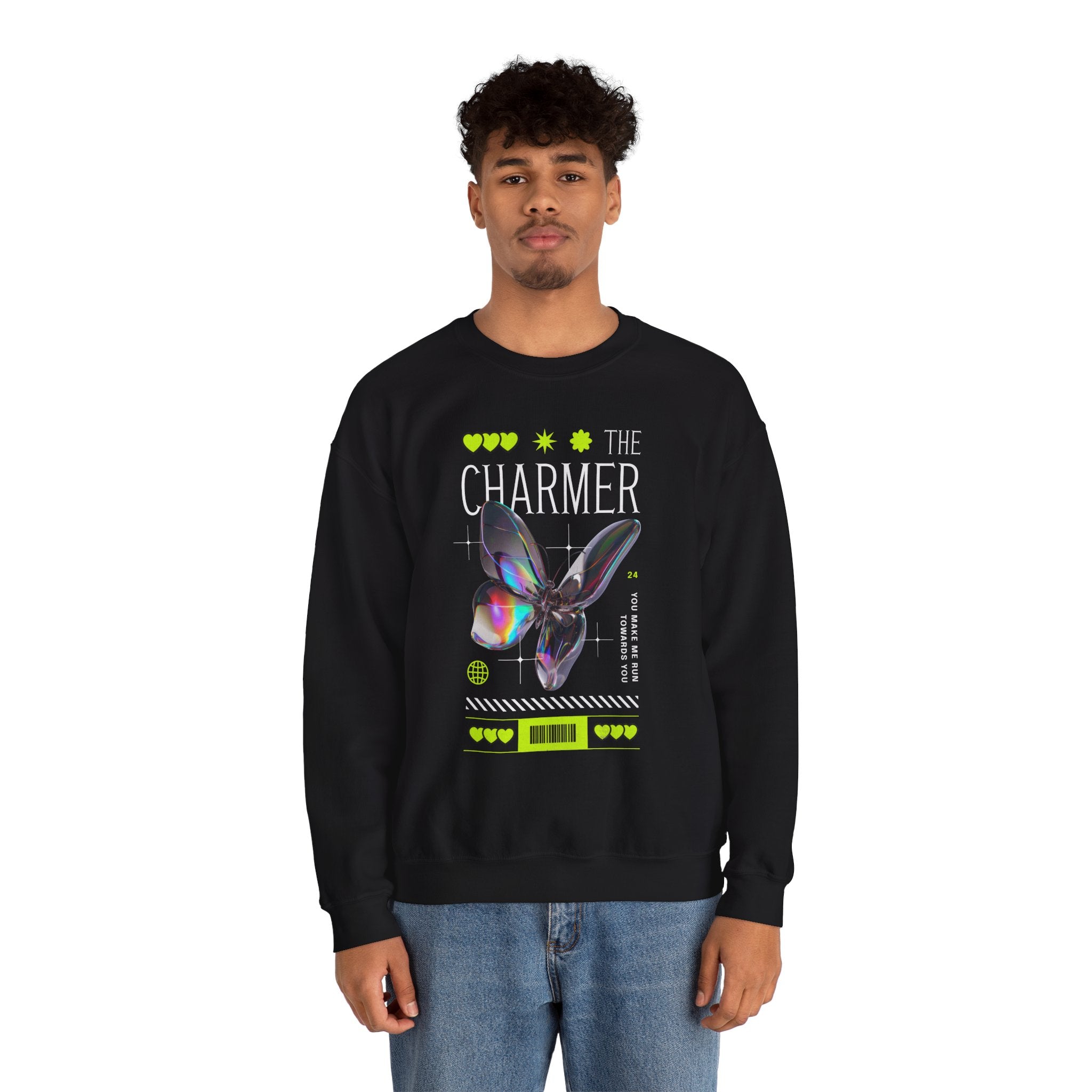 The Charmer Unisex Heavy Blend Crewneck Sweatshirt brings together streetwear vibes and futuristic neon butterfly art in a cozy, everyday essential. With its cyber-aesthetic design, glowing accents, and surreal details, this sweatshirt is a true statement piece for those who embrace individuality.