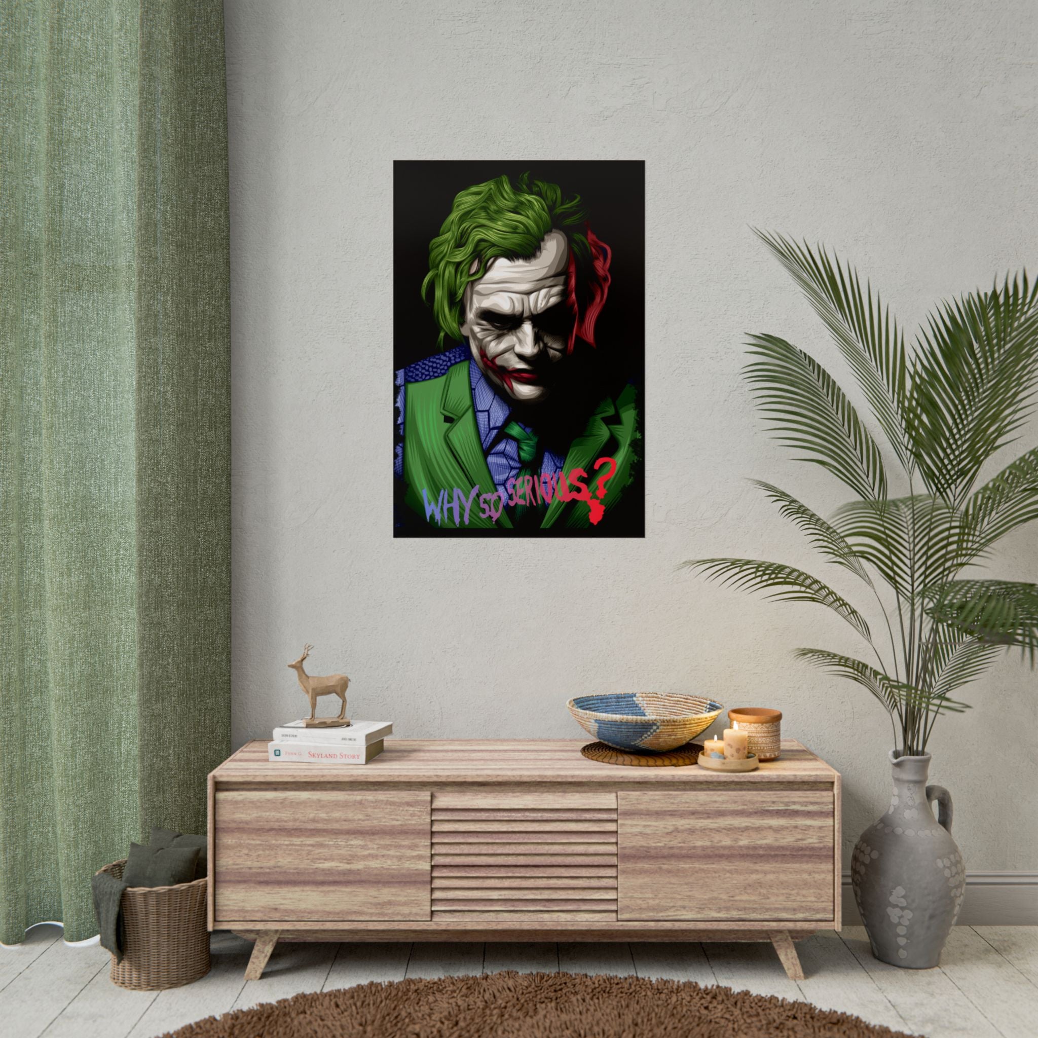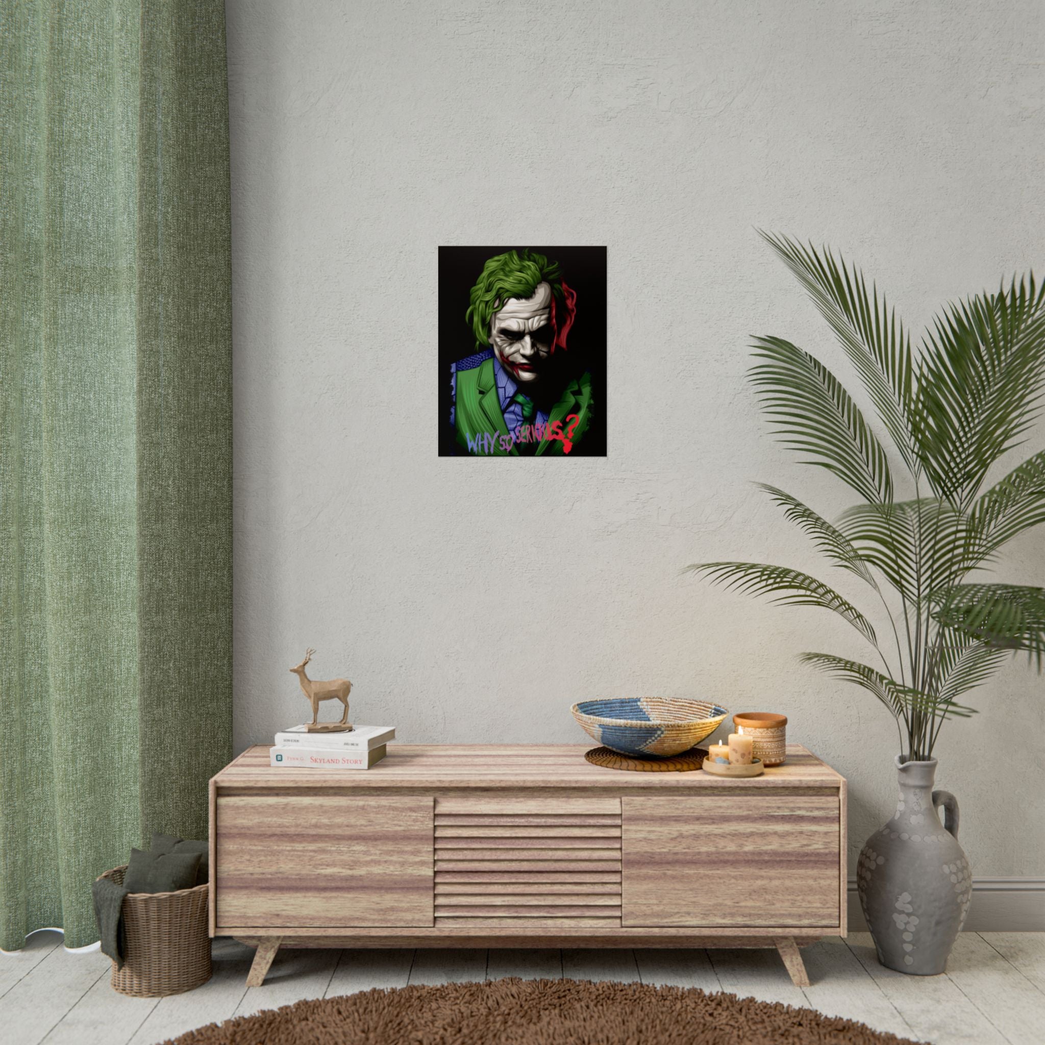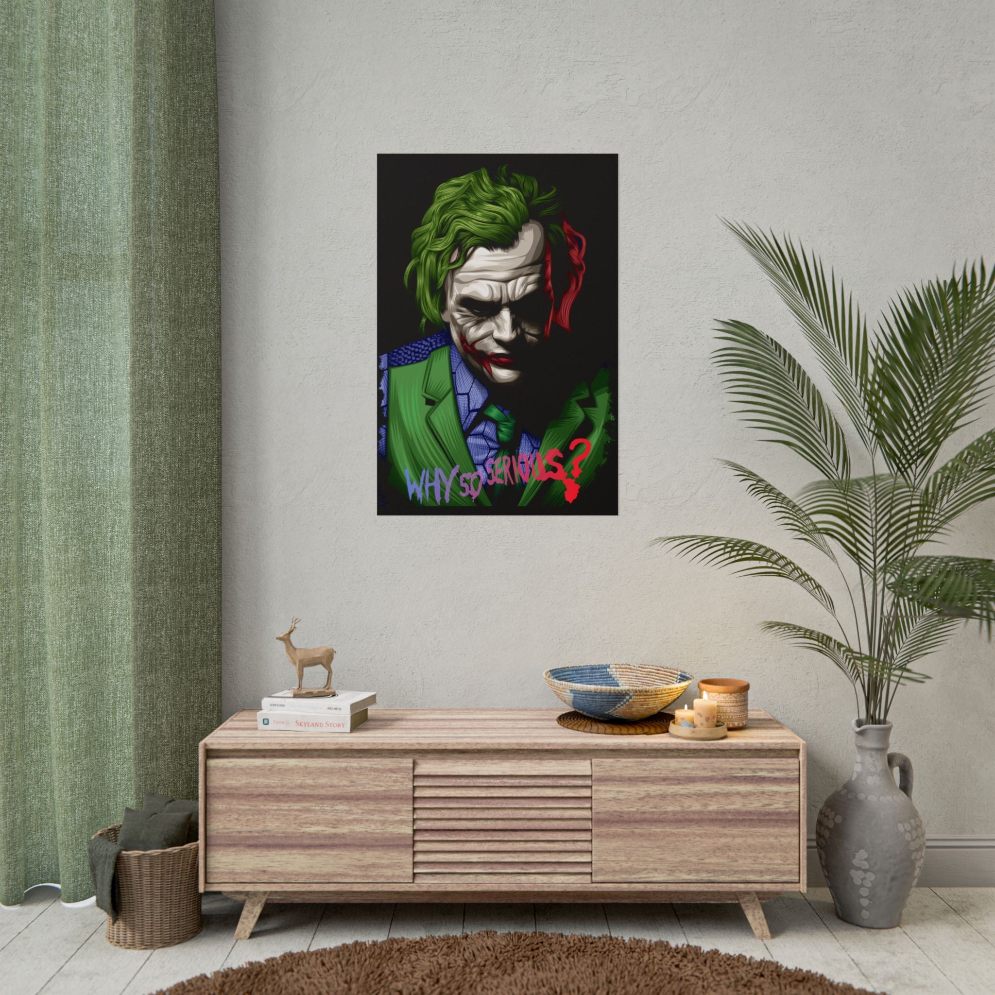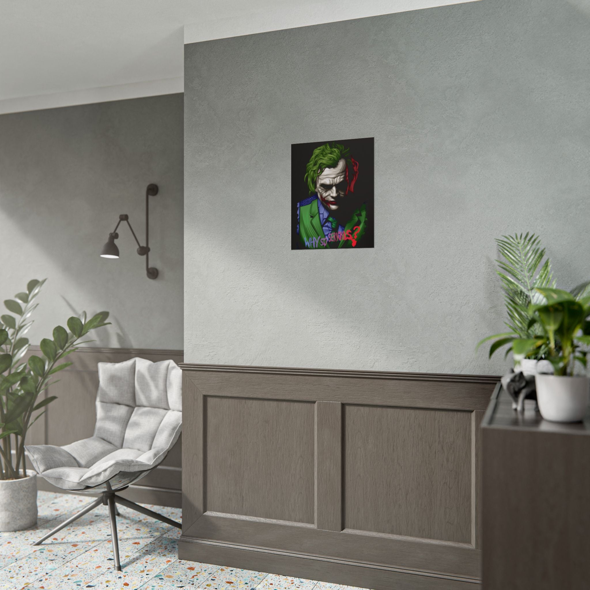This design isn’t just seen — it’s felt. With electric greens, bold purples, and blood-red tones glowing against a deep black void, this glossy artwork captures the essence of chaos and control, genius and insanity.