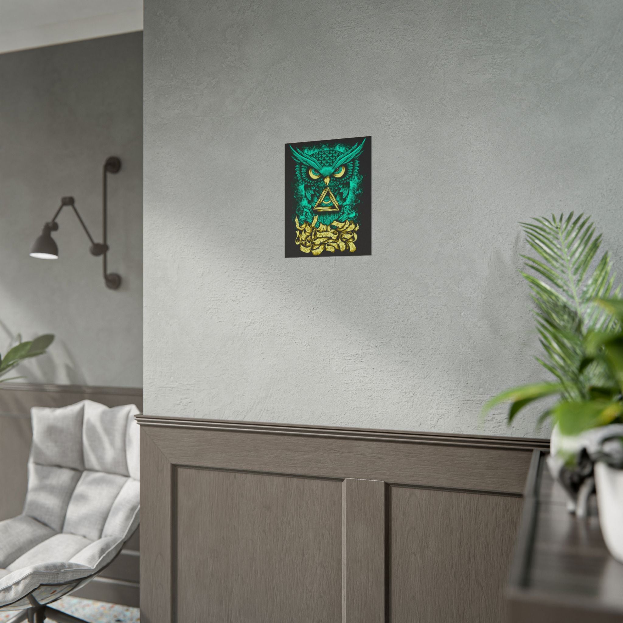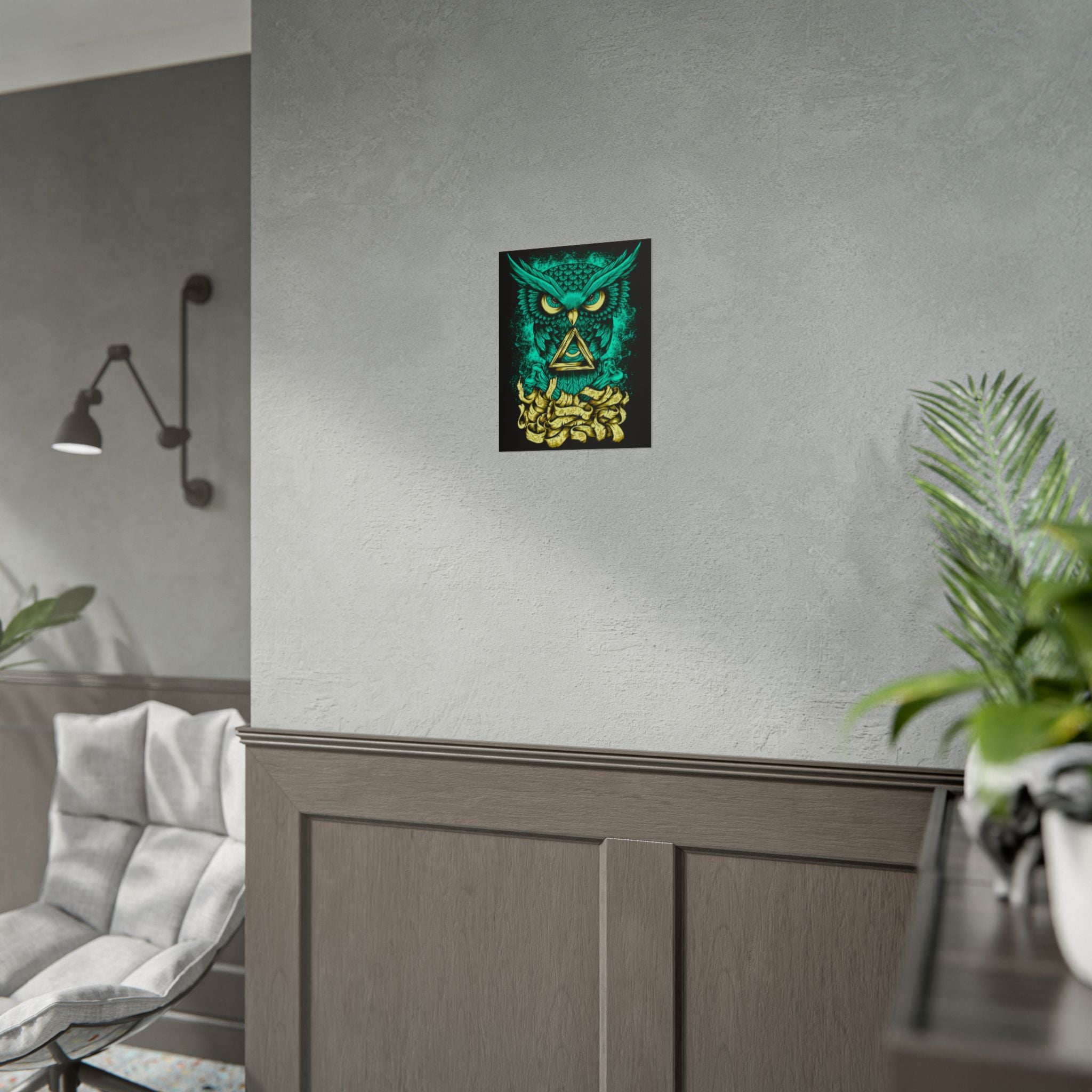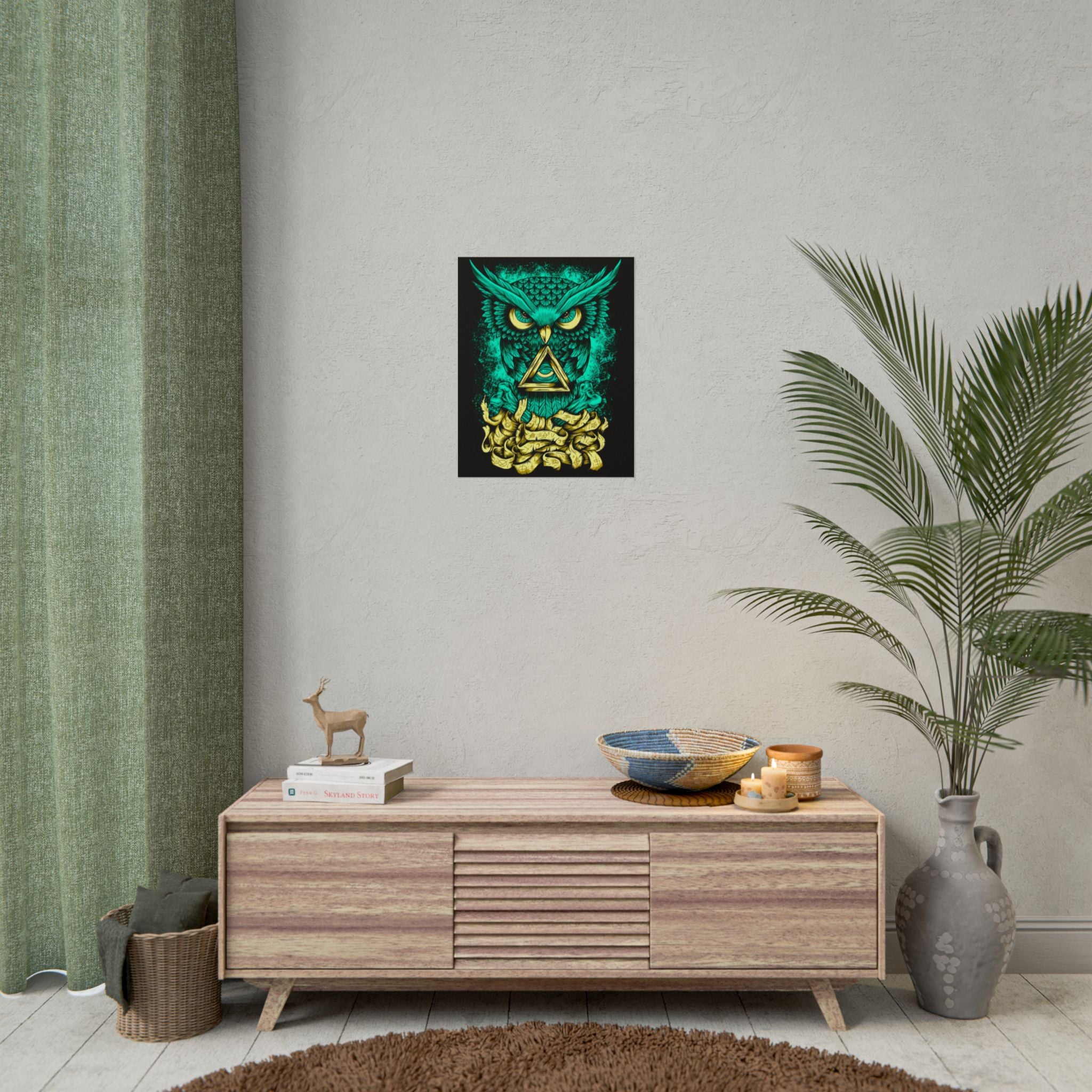 Bring higher awareness and luminous energy into your space with The Watcher Owl Poster, a captivating fusion of mystic geometry, wisdom, and modern design.