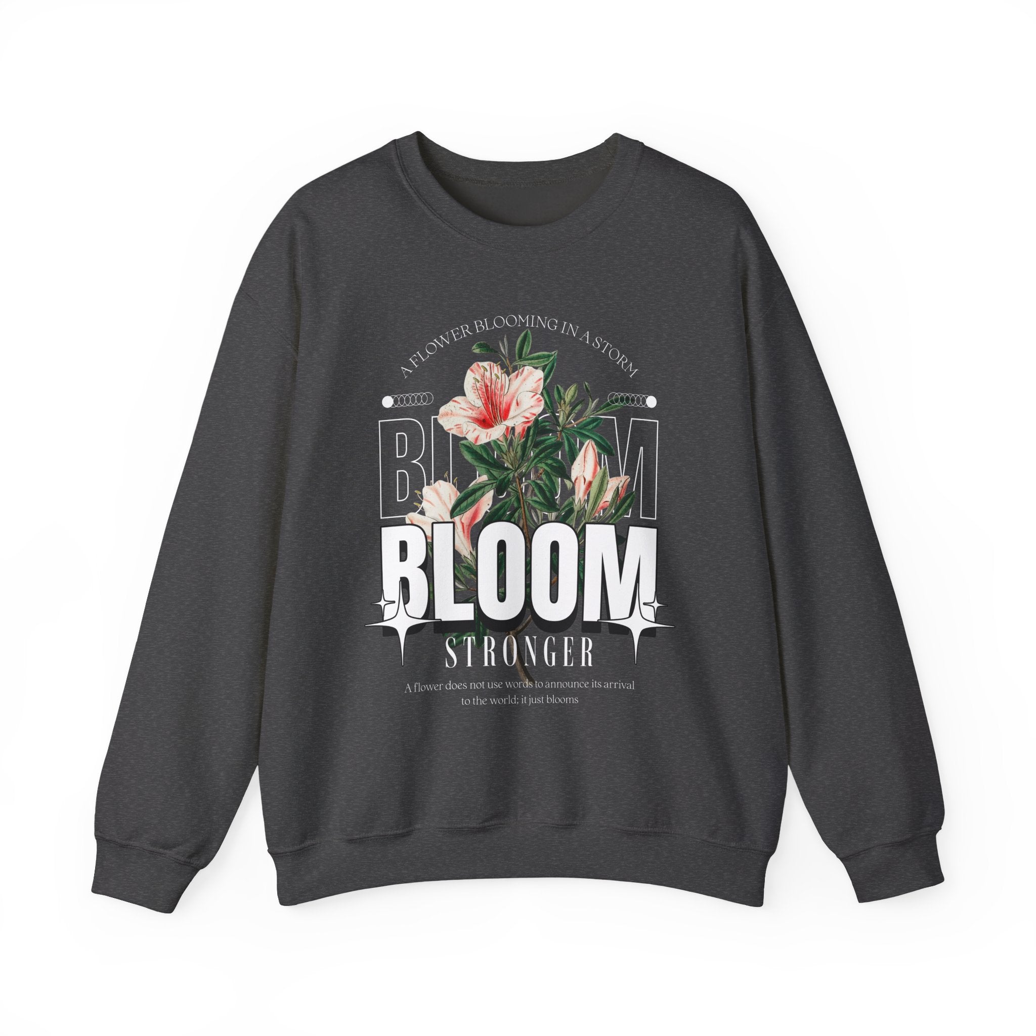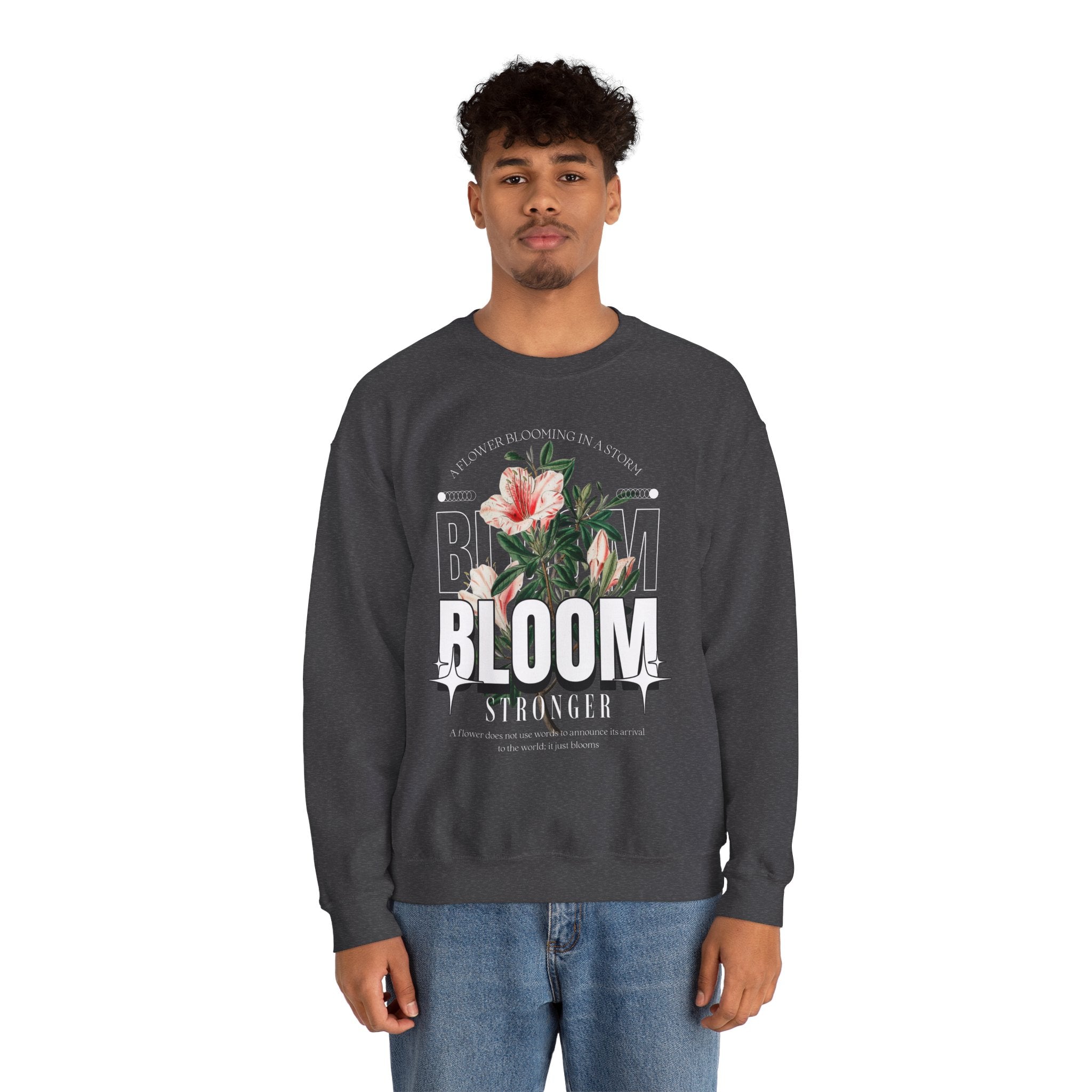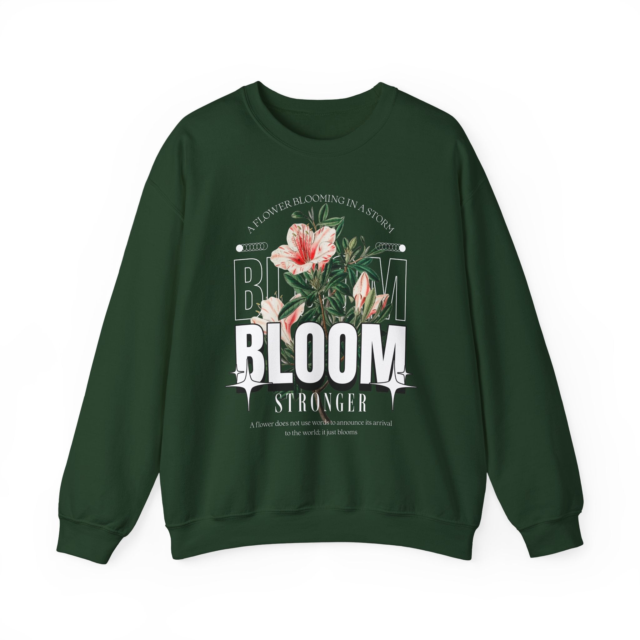The Unisex Heavy Blend™ Crewneck Sweatshirt with the Bloom Stronger floral design celebrates the resilience of nature and the power of positivity. Featuring vibrant botanical artwork with bold BLOOM STRONGER typography, this pullover is a daily reminder to thrive even in life’s toughest storms.