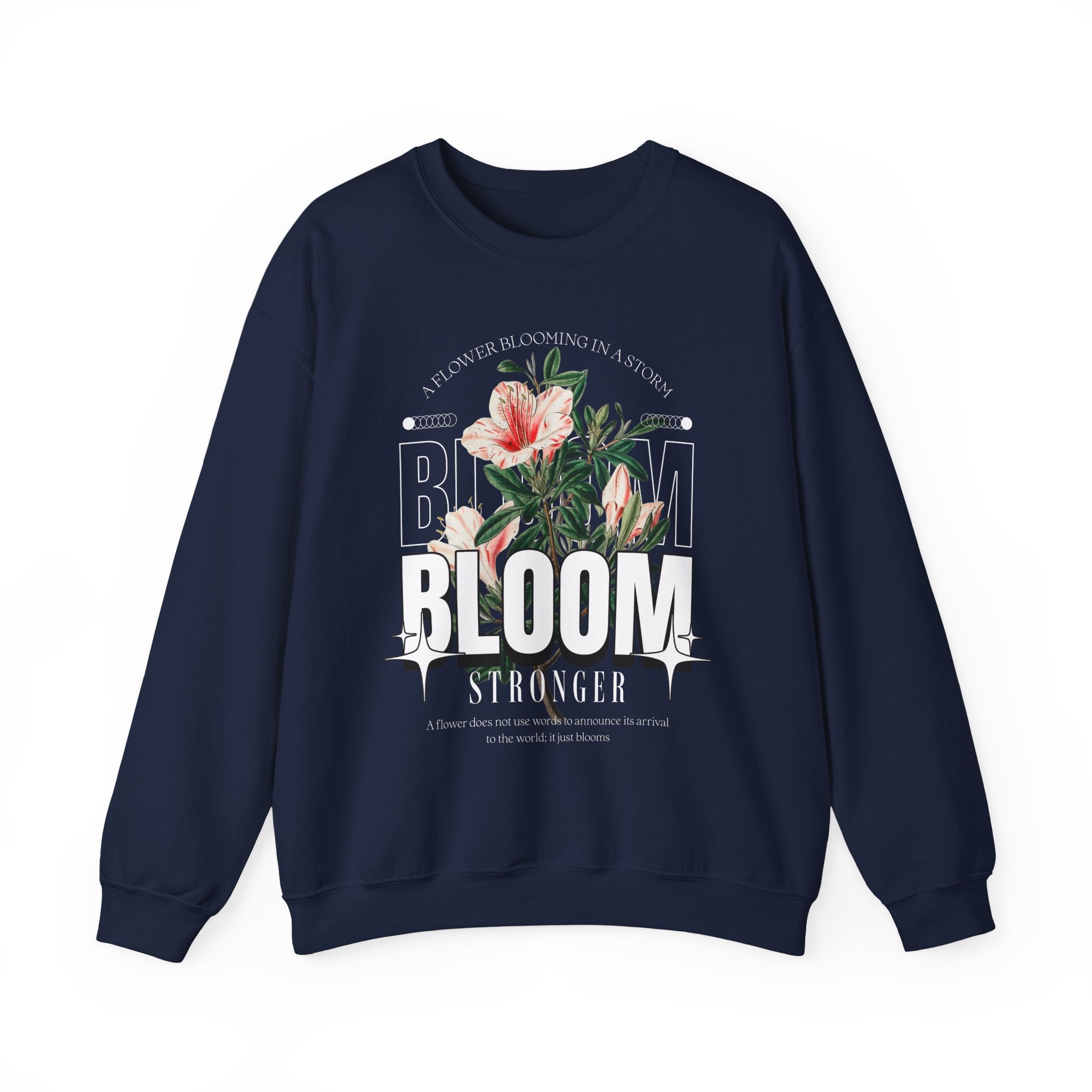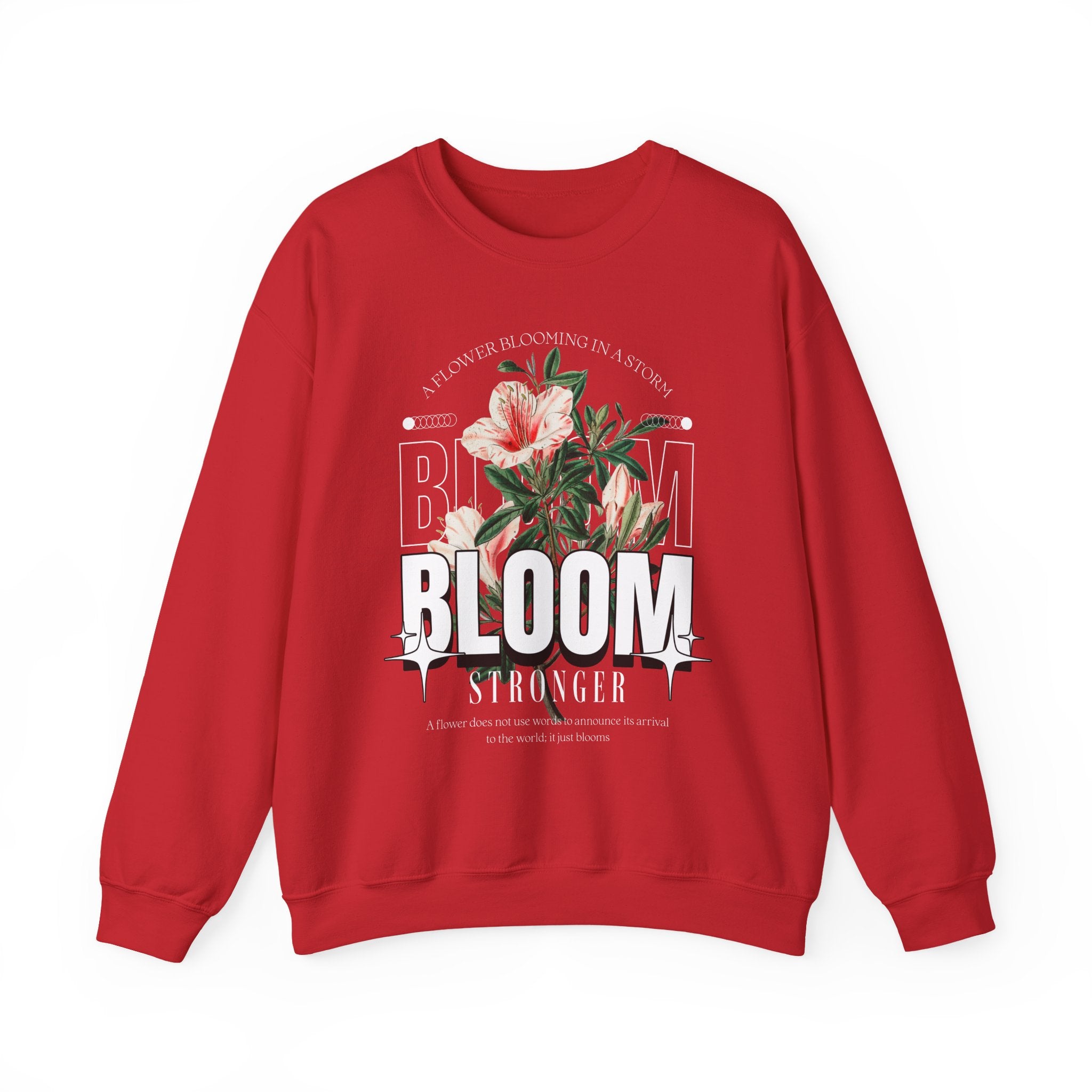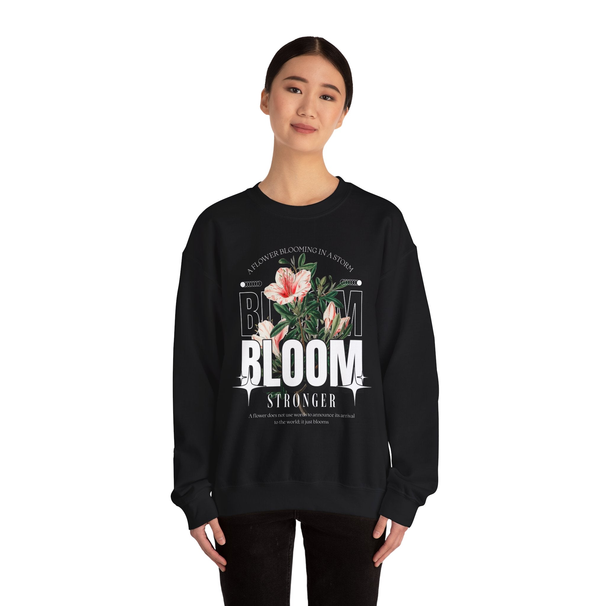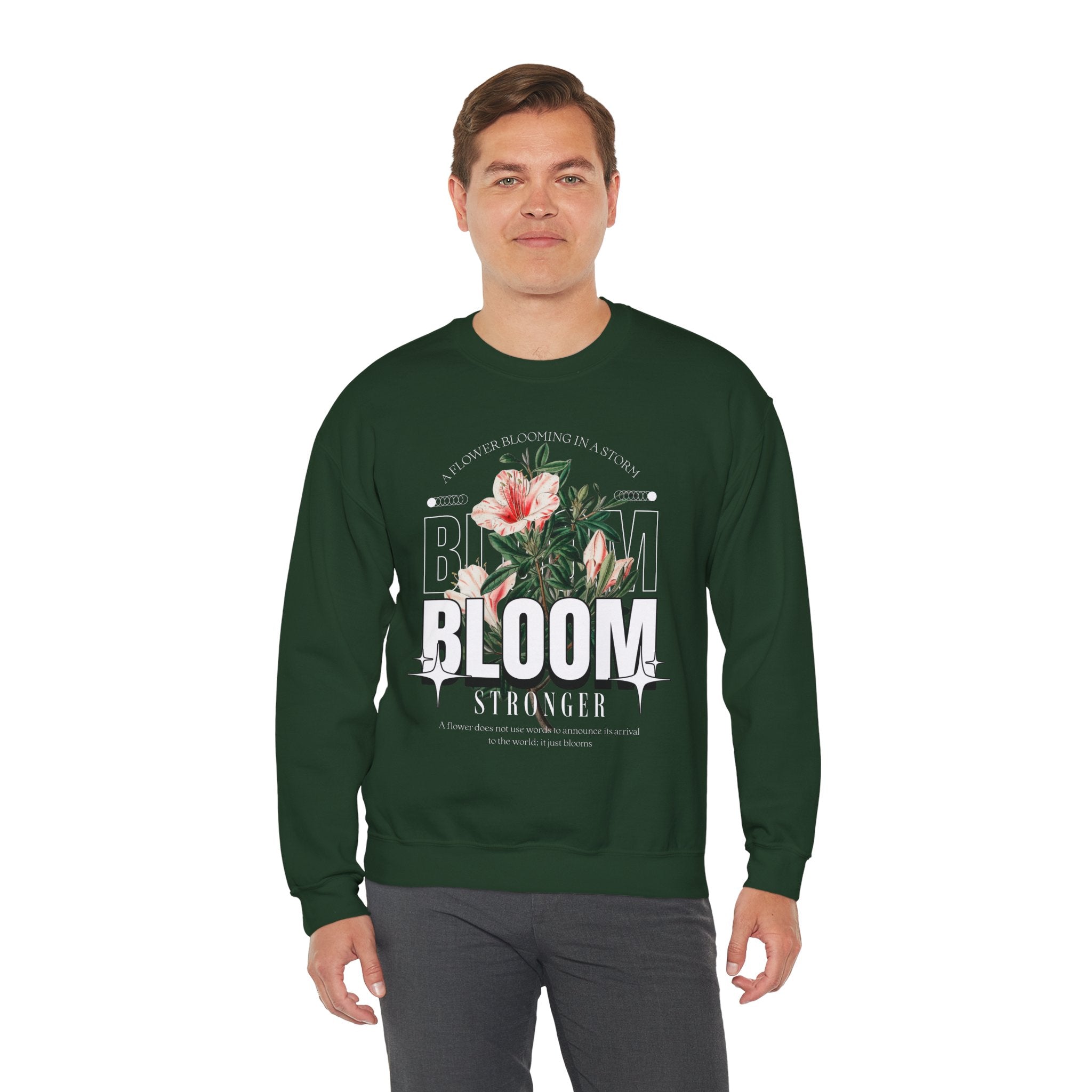 The Unisex Heavy Blend™ Crewneck Sweatshirt with the Bloom Stronger floral design celebrates the resilience of nature and the power of positivity. Featuring vibrant botanical artwork with bold BLOOM STRONGER typography, this pullover is a daily reminder to thrive even in life’s toughest storms.