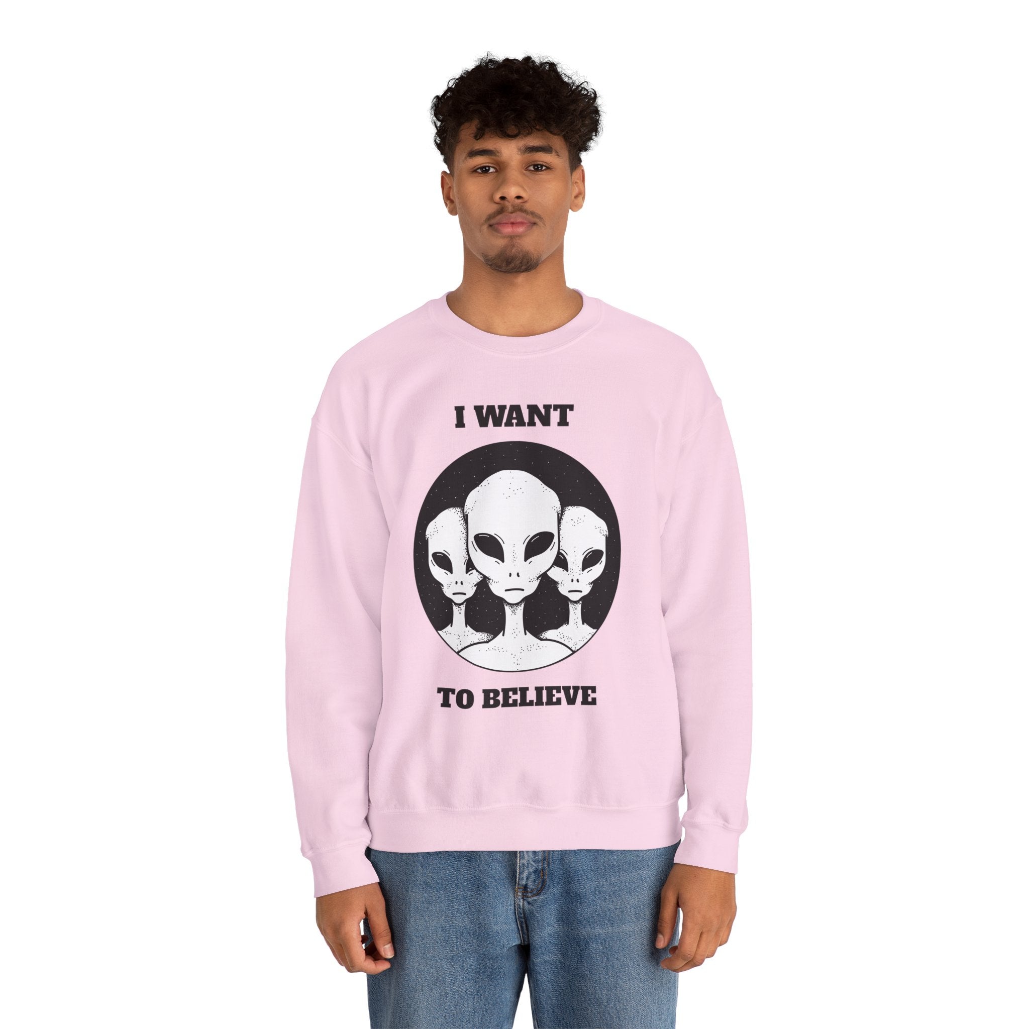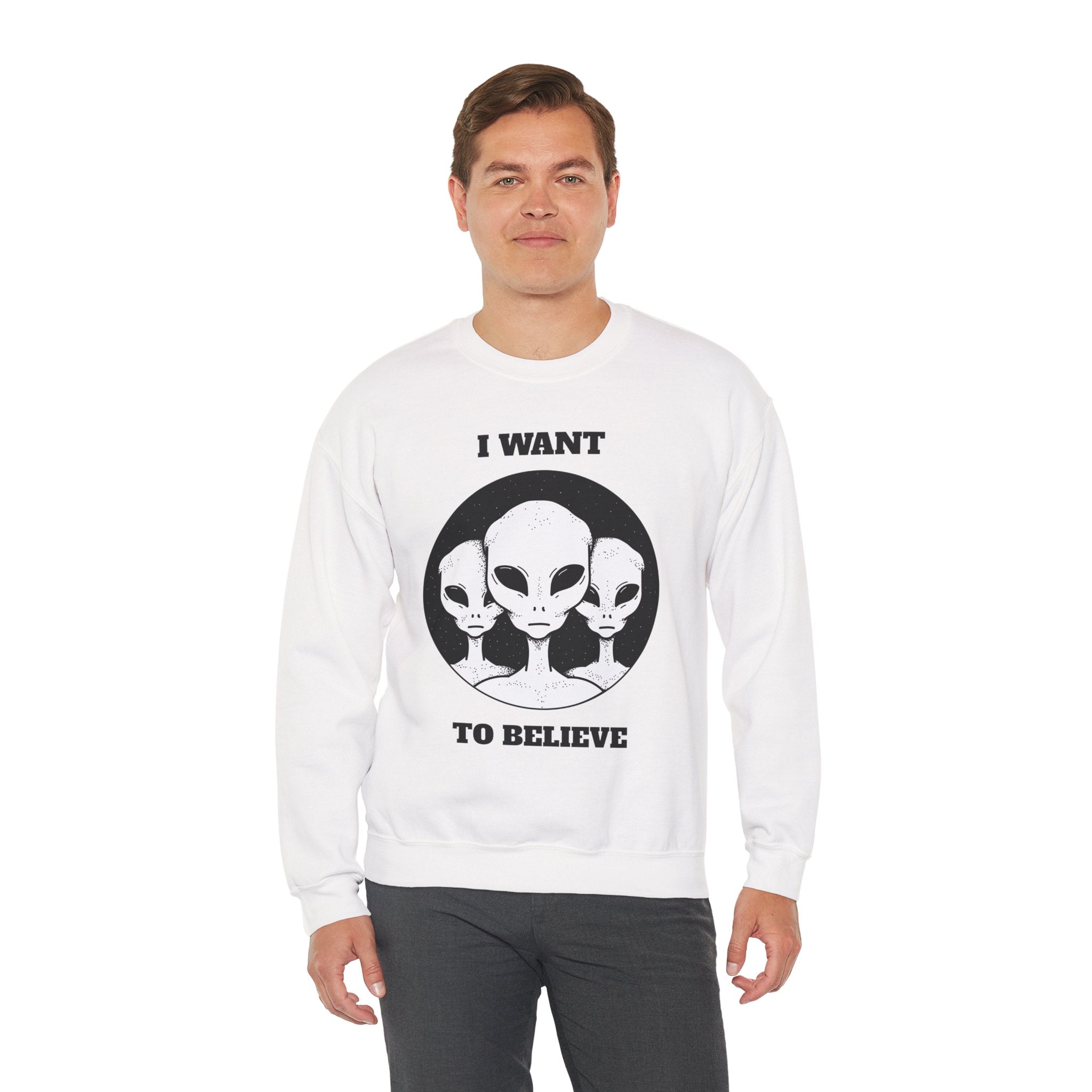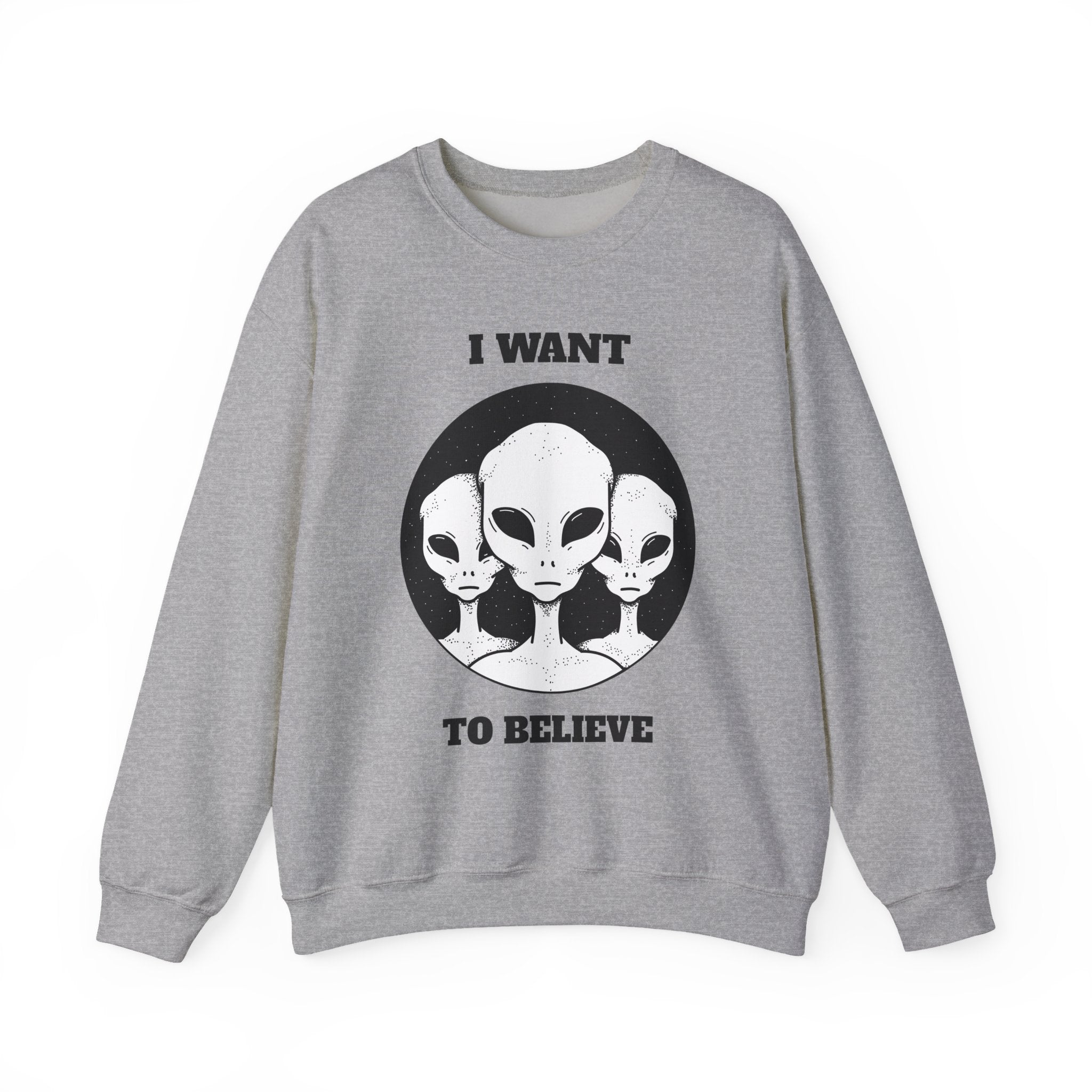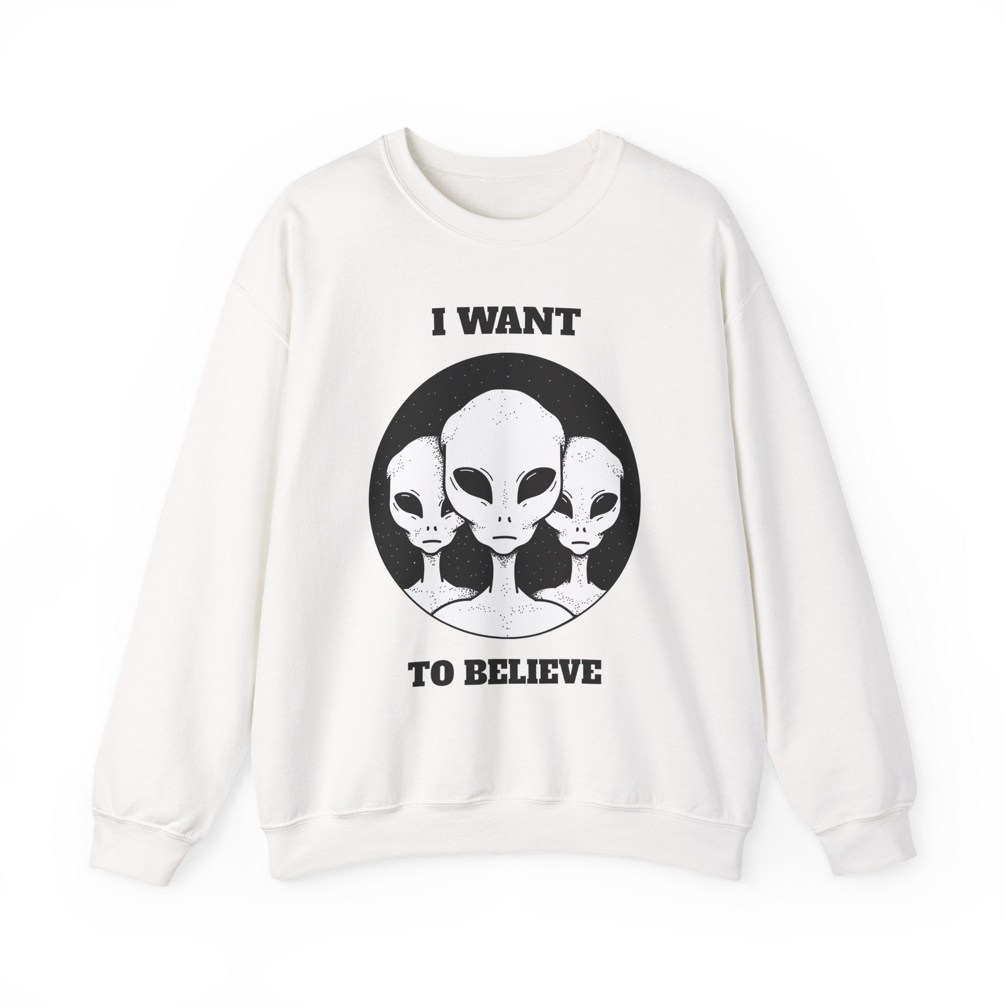 Wrap yourself in cosmic mystery with the Unisex “I Want To Believe” Alien Crewneck Sweatshirt. Designed with bold extraterrestrial graphics and the iconic believer’s phrase, this sweatshirt is the perfect blend of comfort, style, and curiosity.