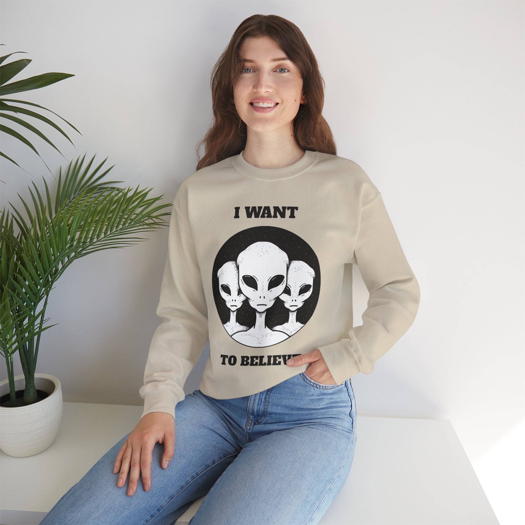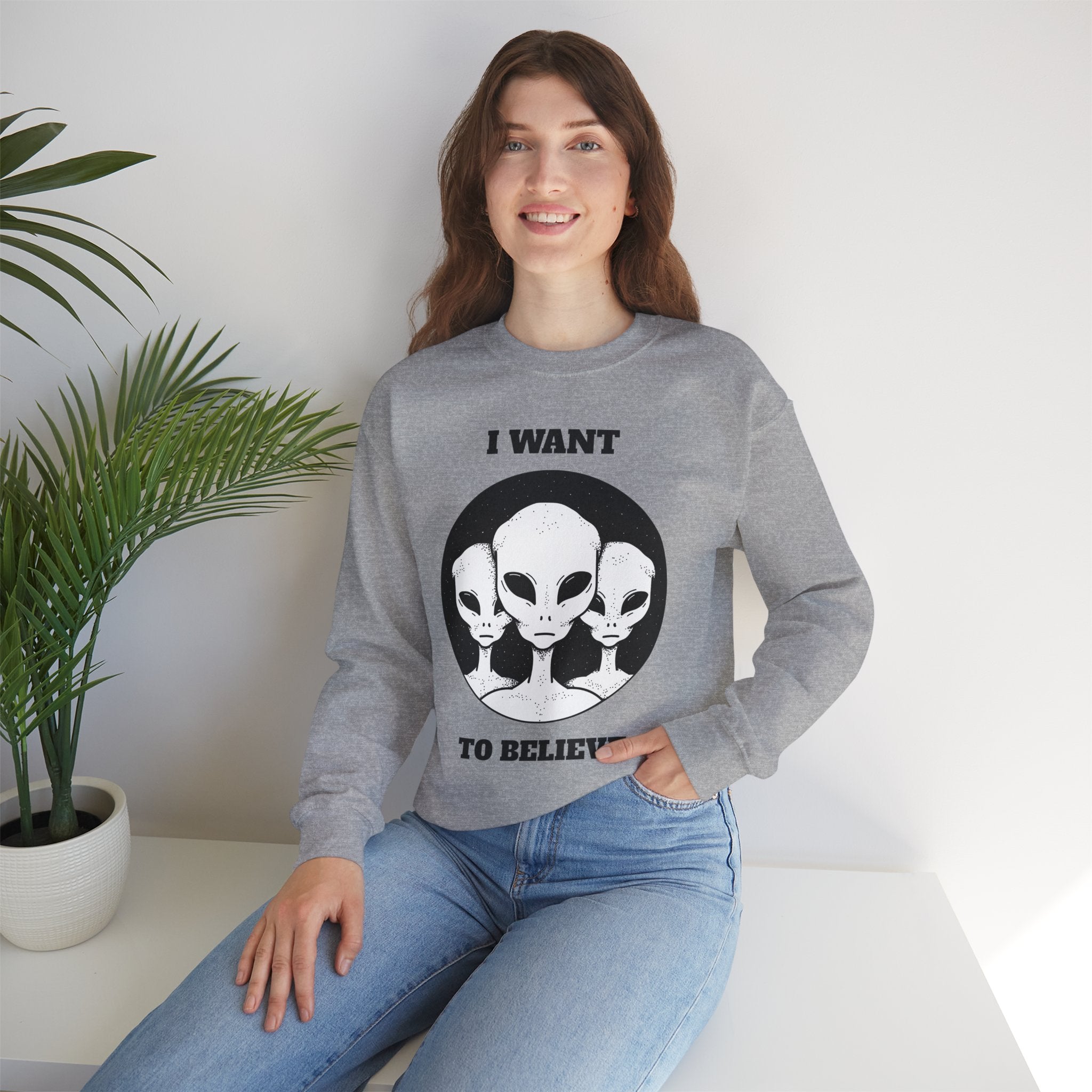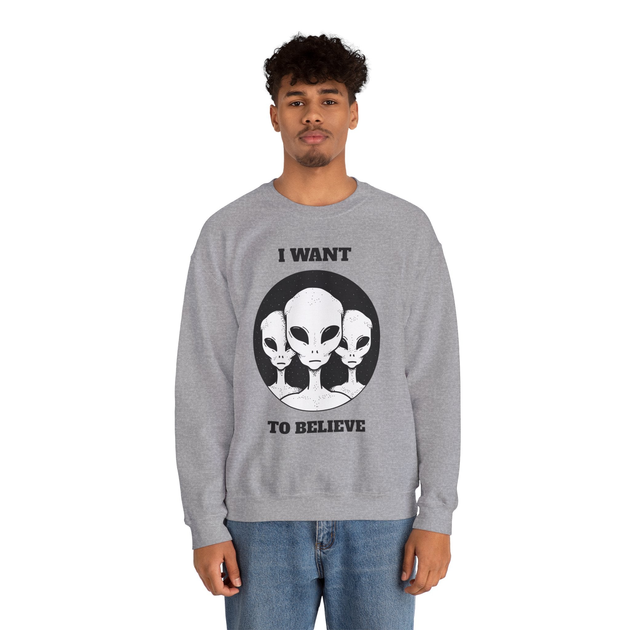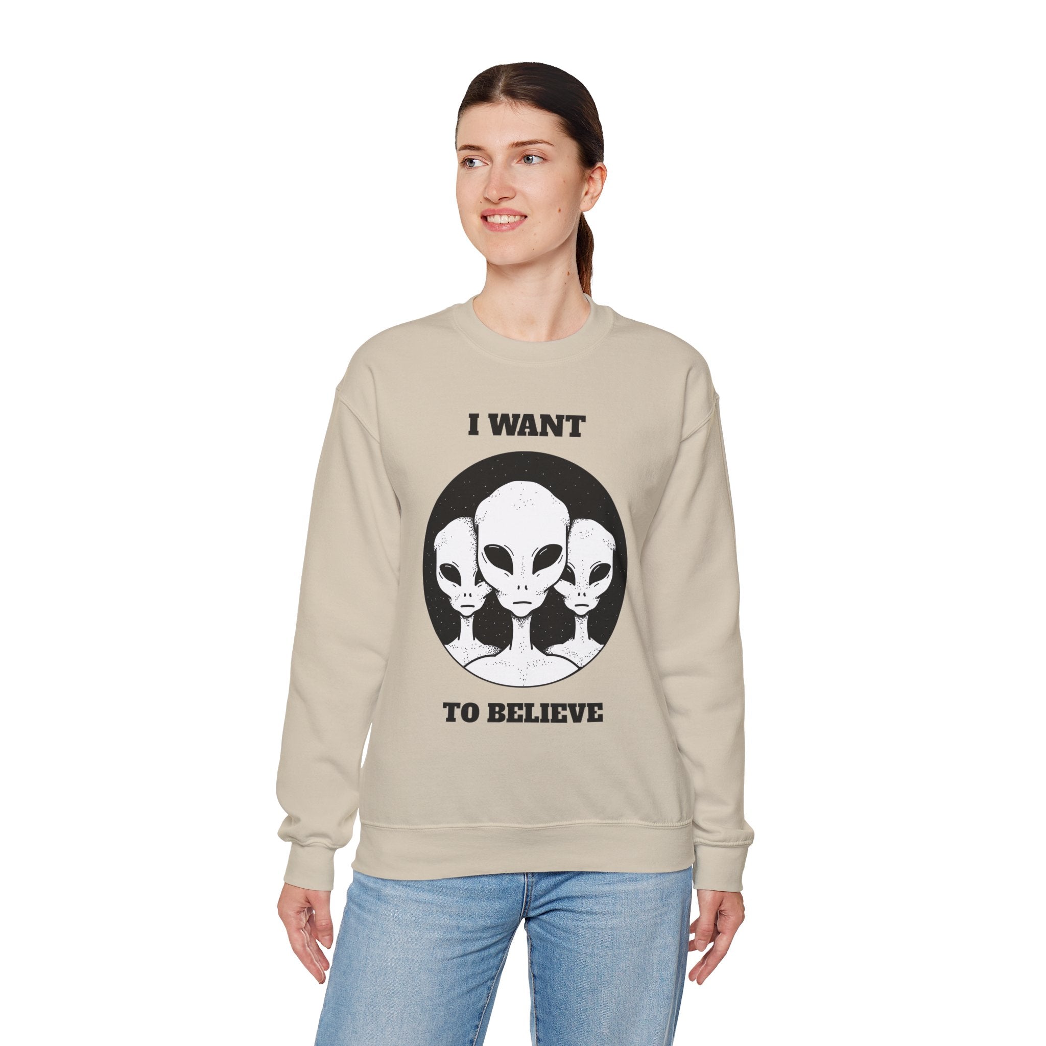 Wrap yourself in cosmic mystery with the Unisex “I Want To Believe” Alien Crewneck Sweatshirt. Designed with bold extraterrestrial graphics and the iconic believer’s phrase, this sweatshirt is the perfect blend of comfort, style, and curiosity.
