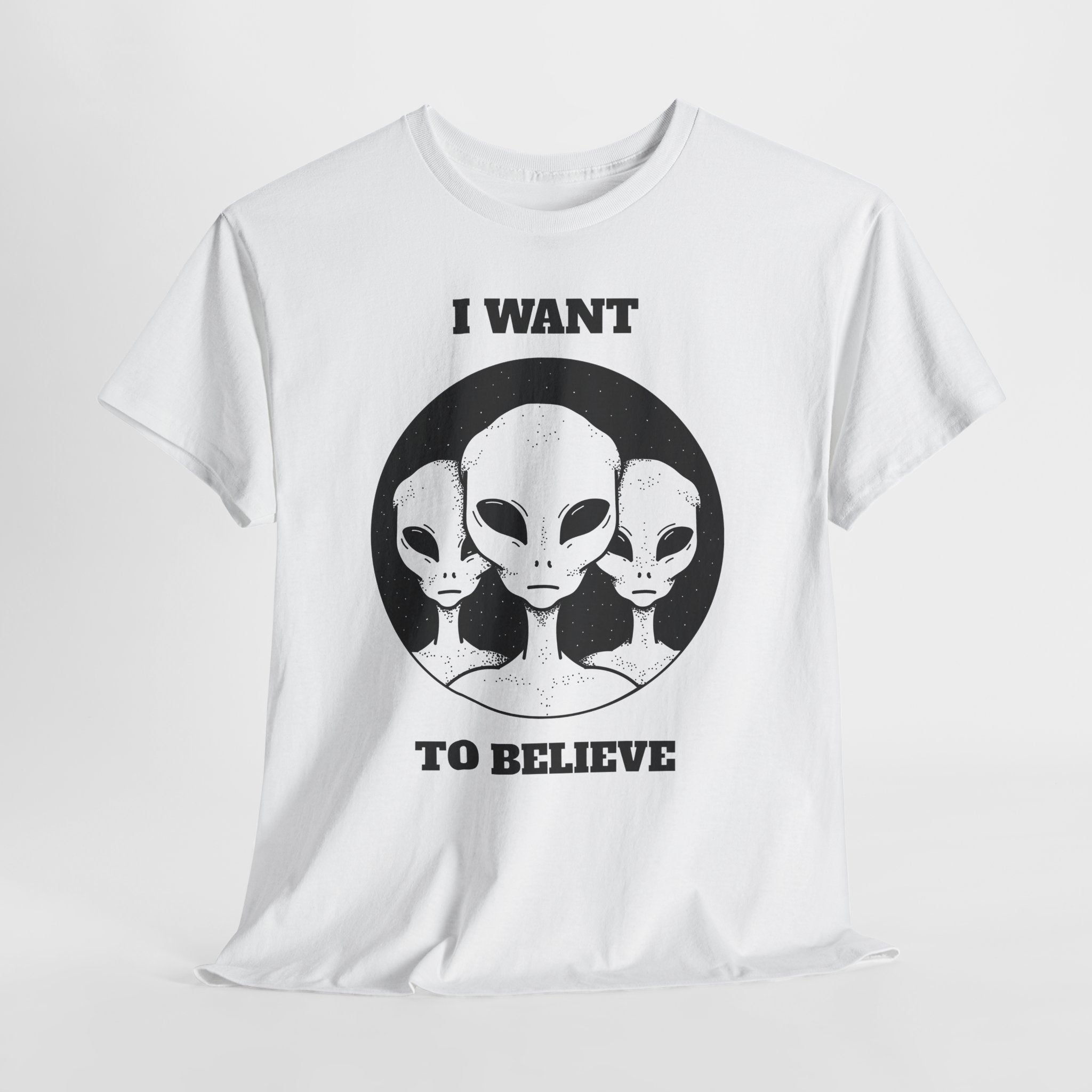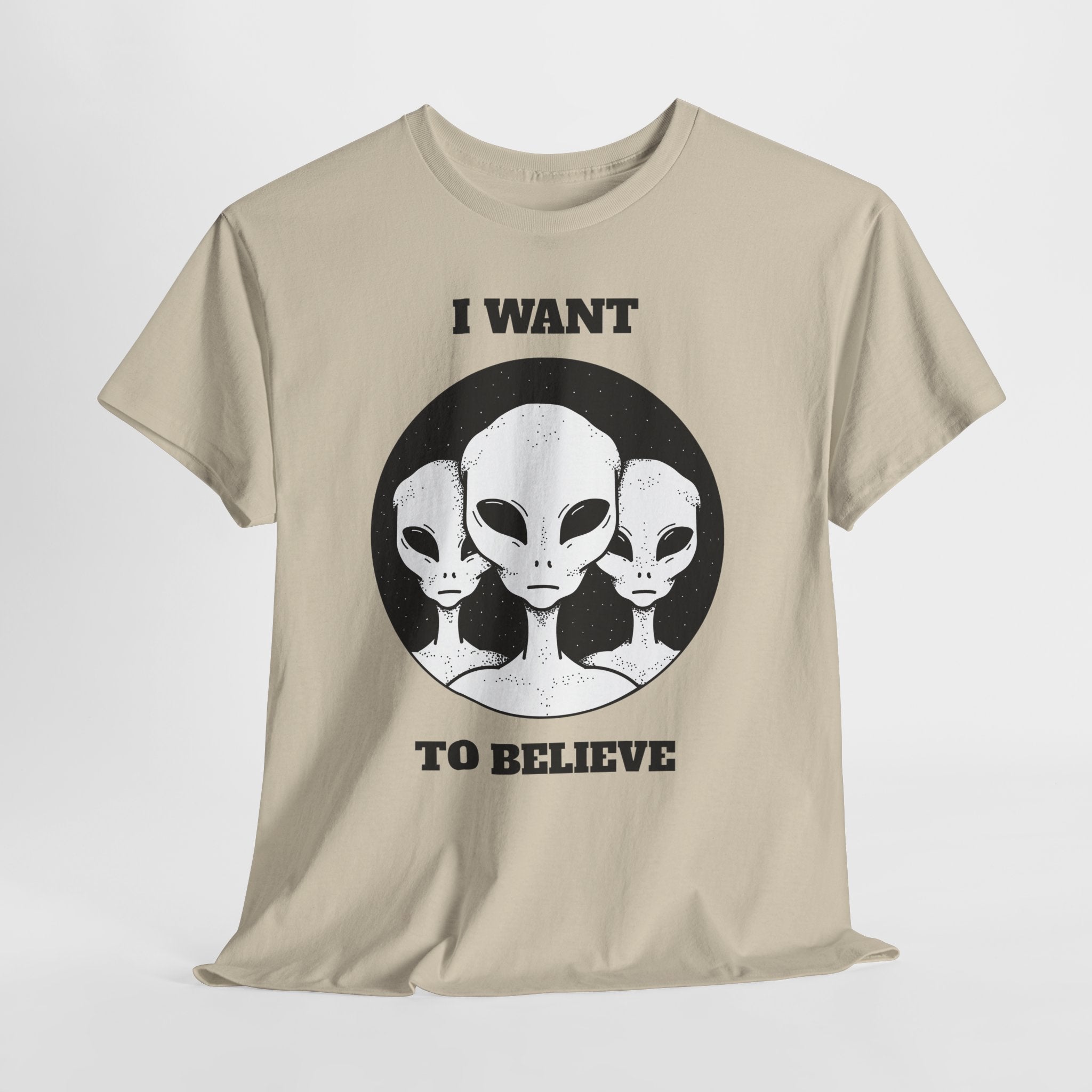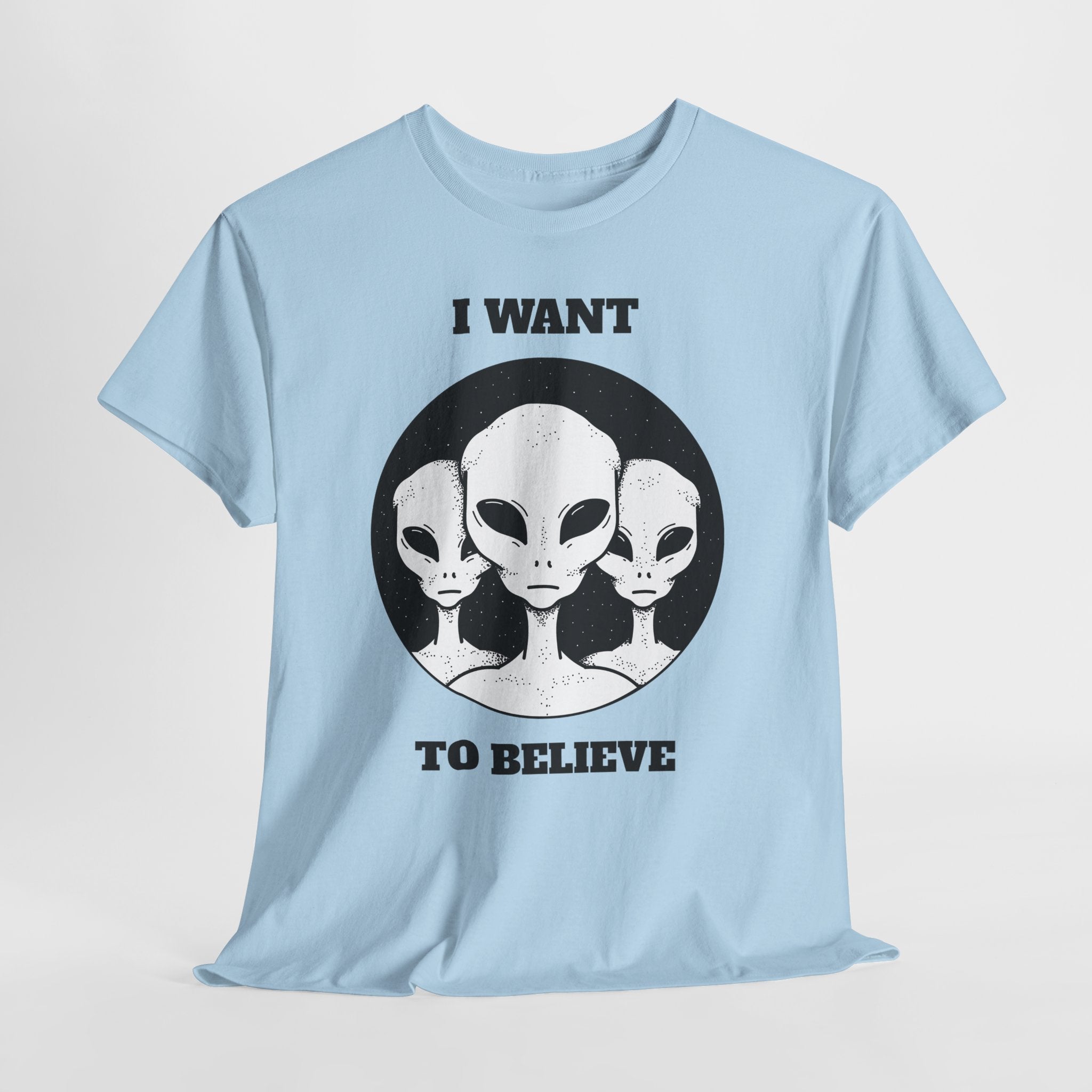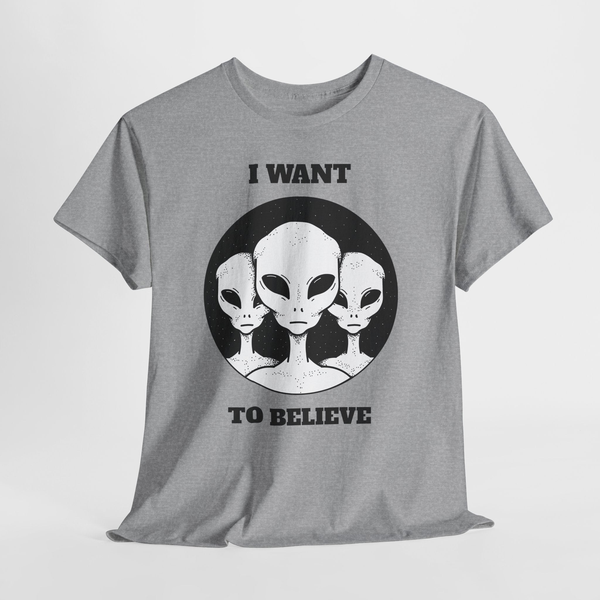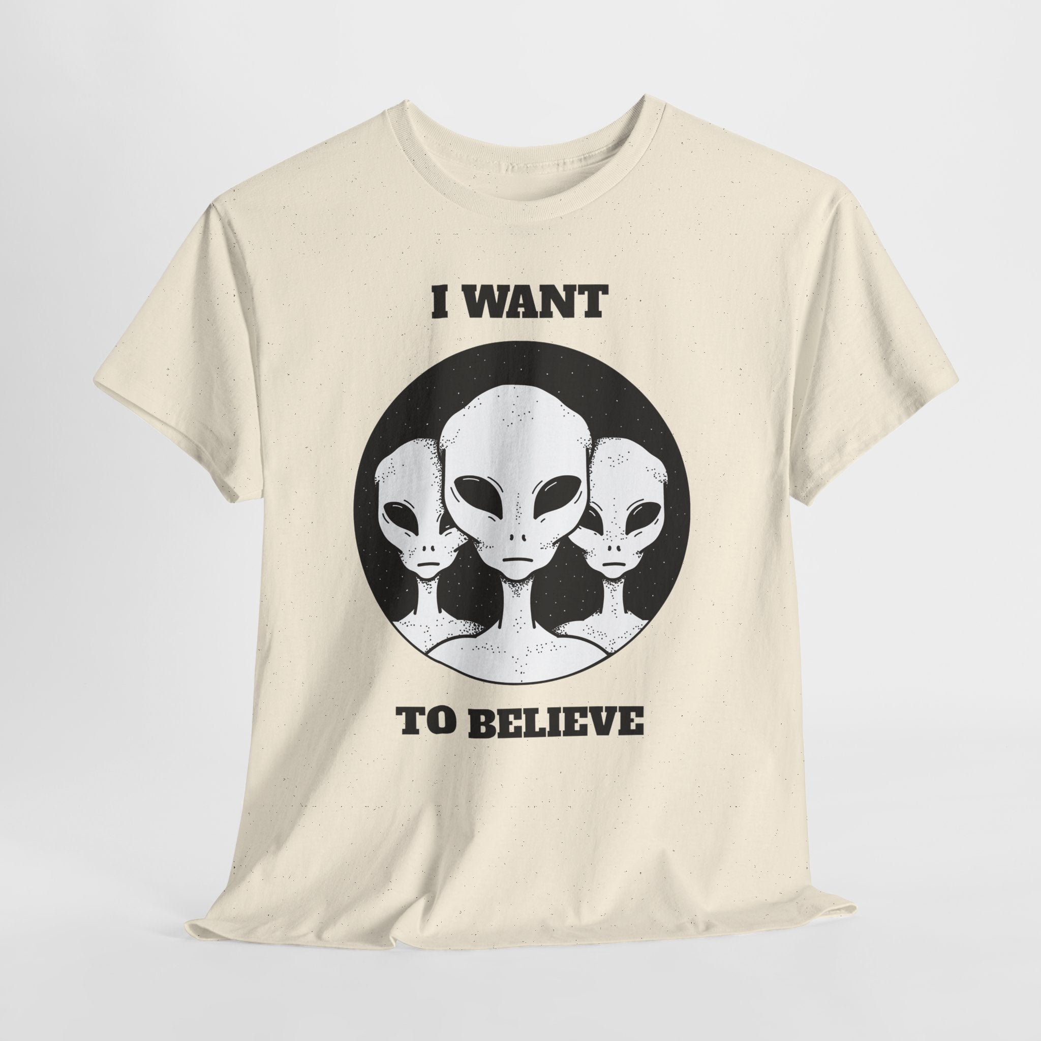 Step into the mystery of the cosmos with the Unisex “I Want To Believe” Alien T-Shirt. Featuring three striking extraterrestrial figures set against a cosmic backdrop, this tee channels the spirit of curiosity, wonder, and the thrill of the unexplained. Whether you’re a sci-fi fanatic, UFO enthusiast, or simply love making bold statements, this shirt is designed for you.
