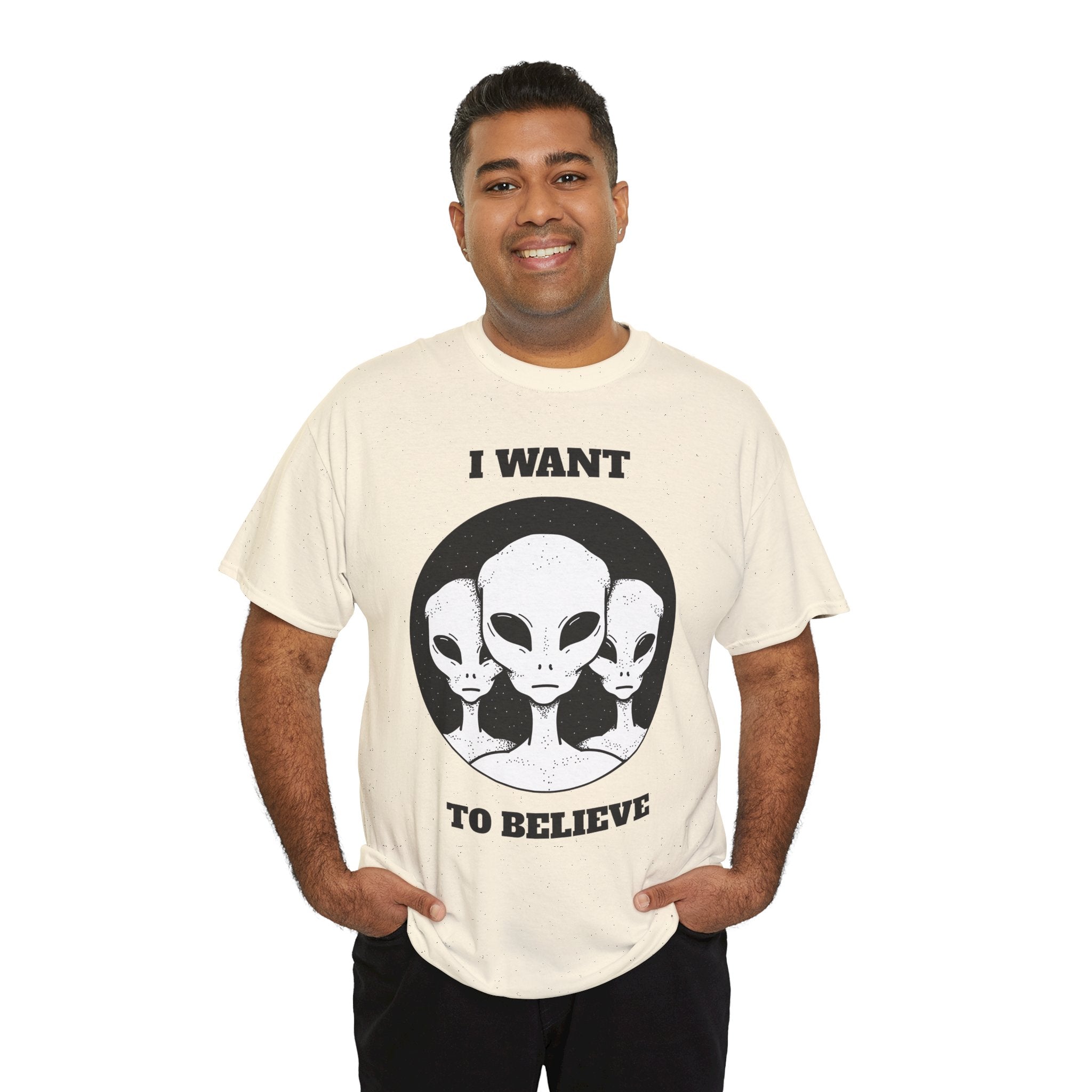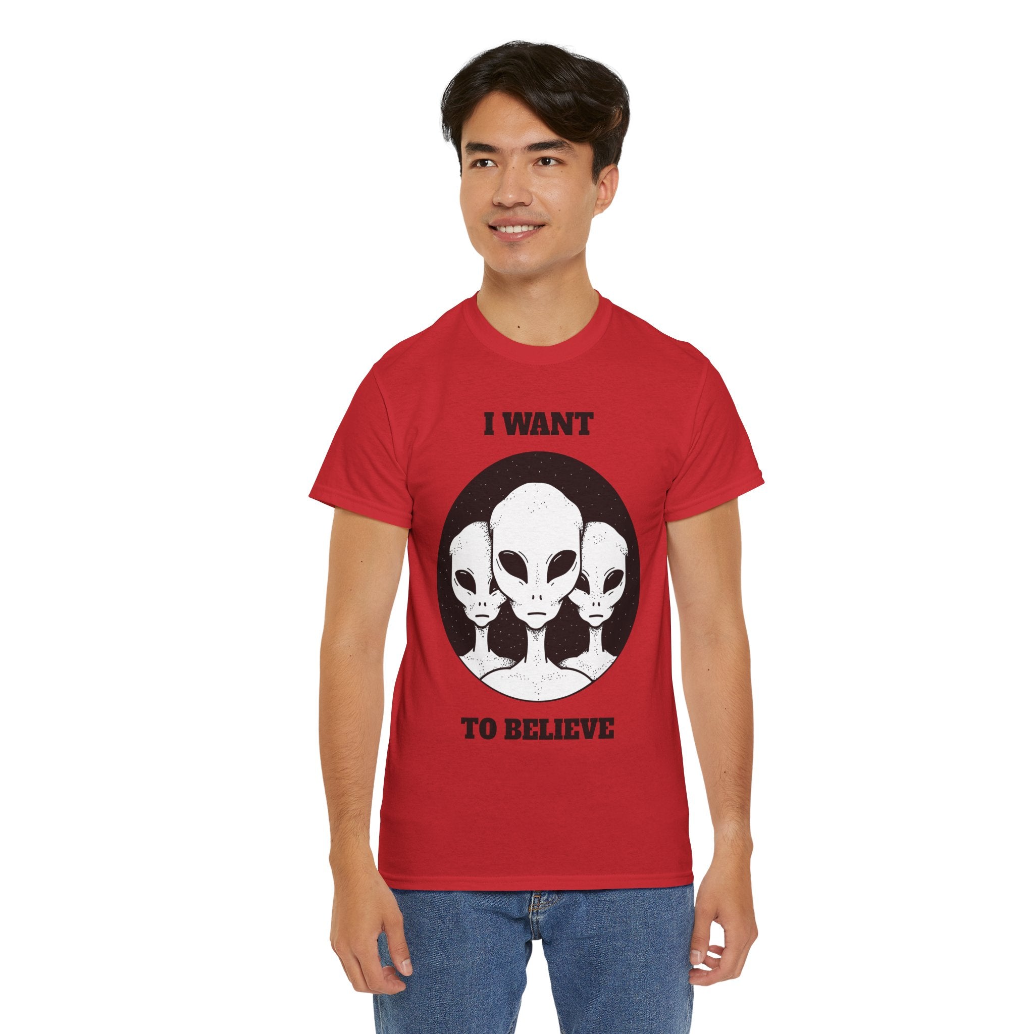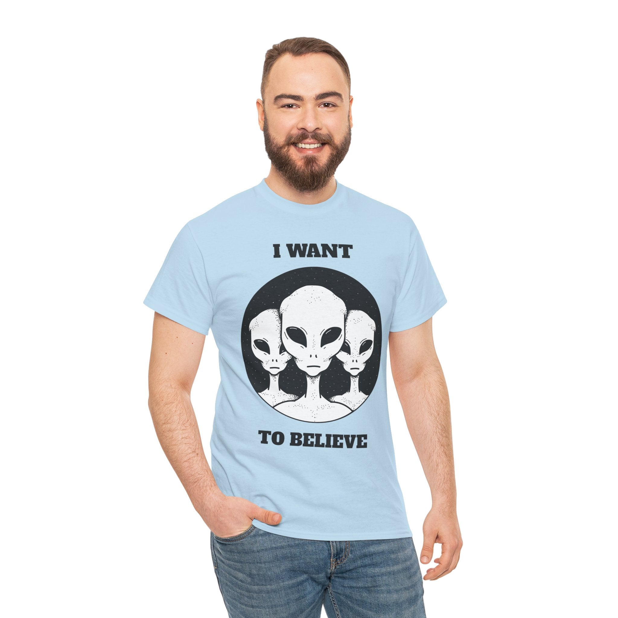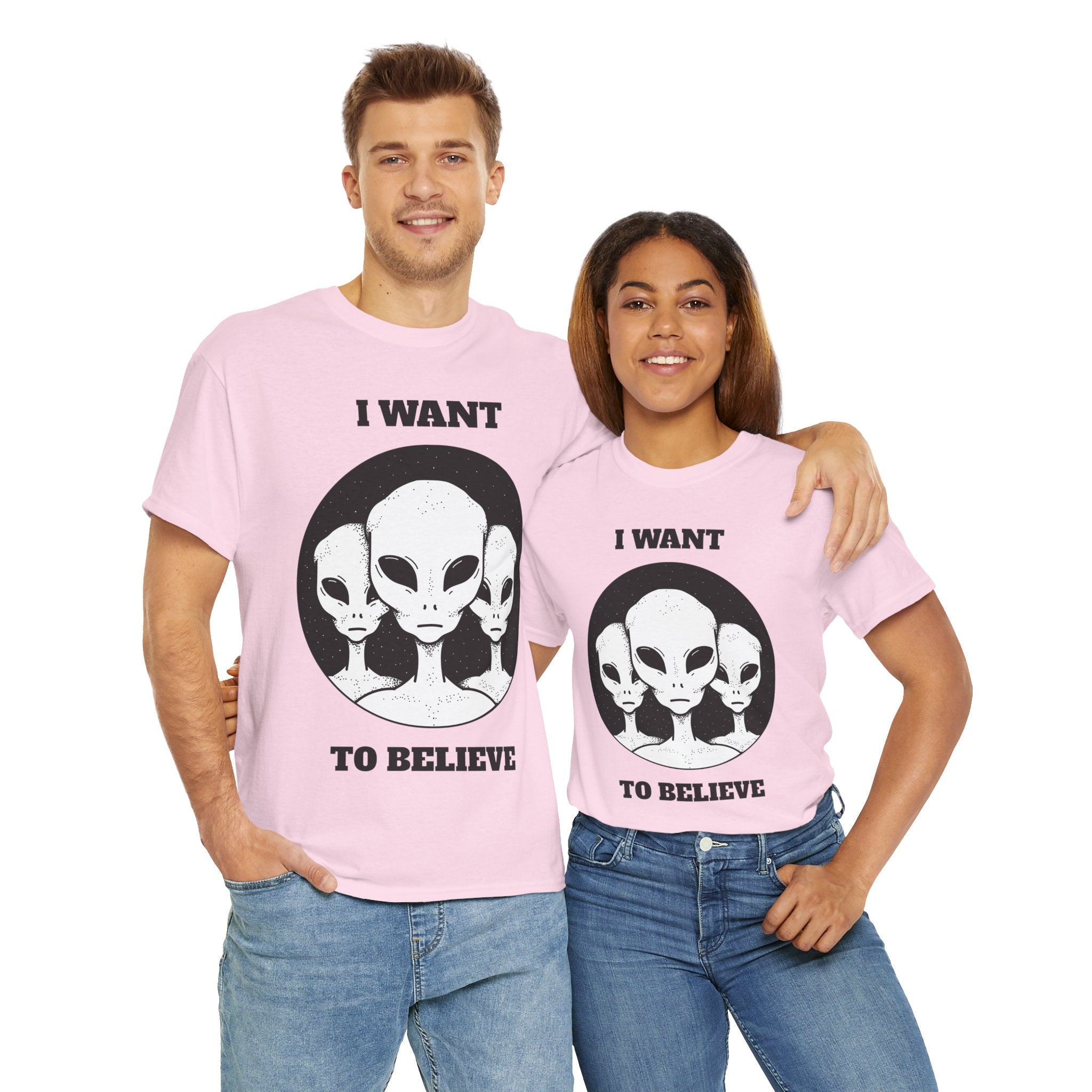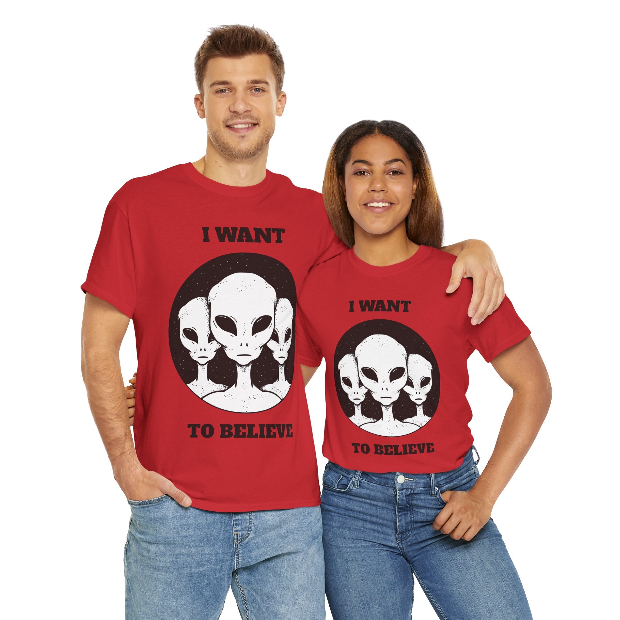 Step into the mystery of the cosmos with the Unisex “I Want To Believe” Alien T-Shirt. Featuring three striking extraterrestrial figures set against a cosmic backdrop, this tee channels the spirit of curiosity, wonder, and the thrill of the unexplained. Whether you’re a sci-fi fanatic, UFO enthusiast, or simply love making bold statements, this shirt is designed for you.