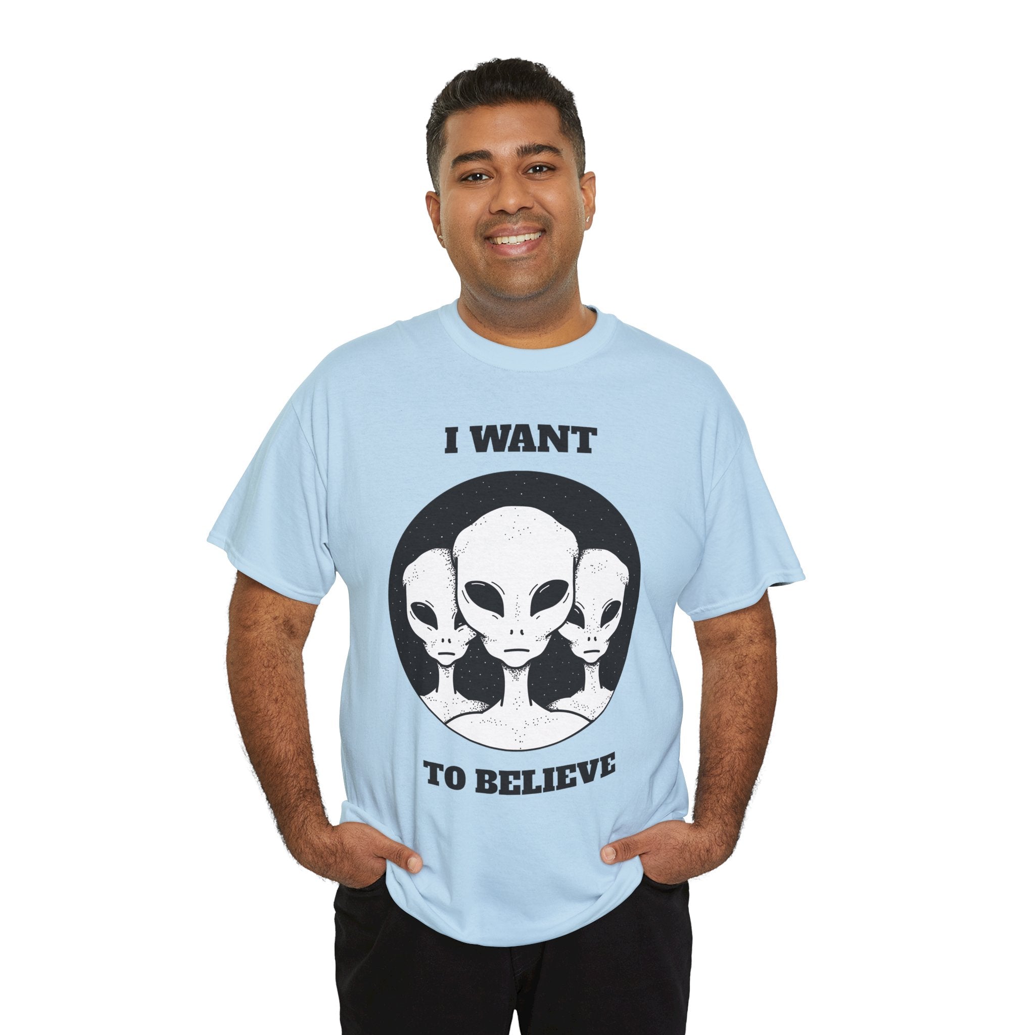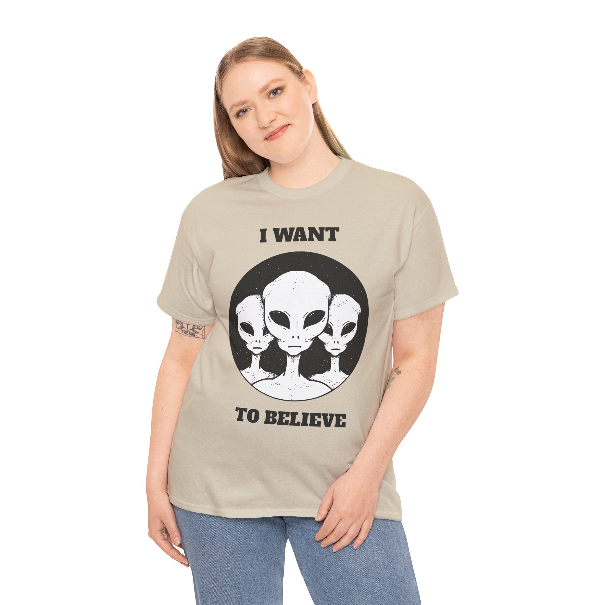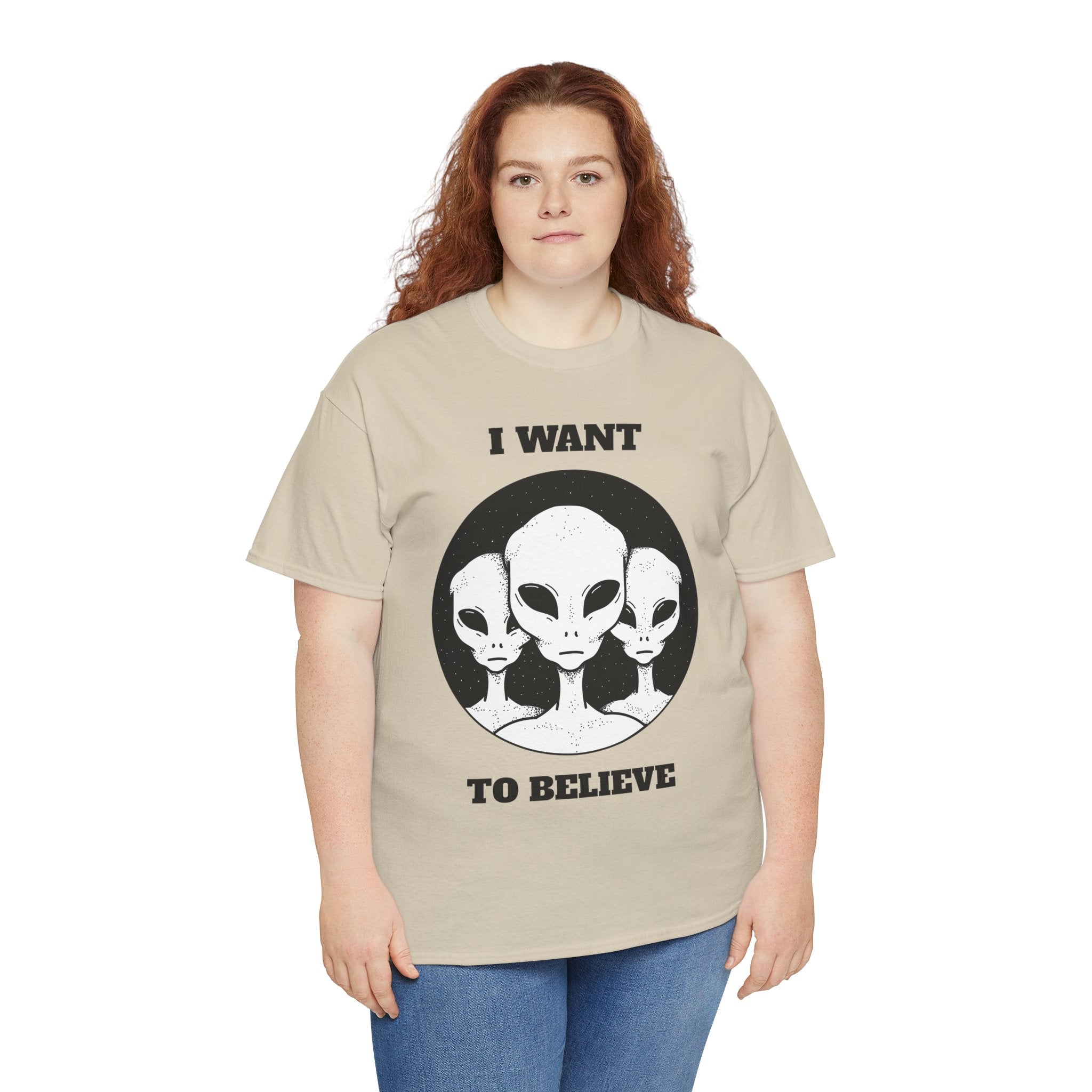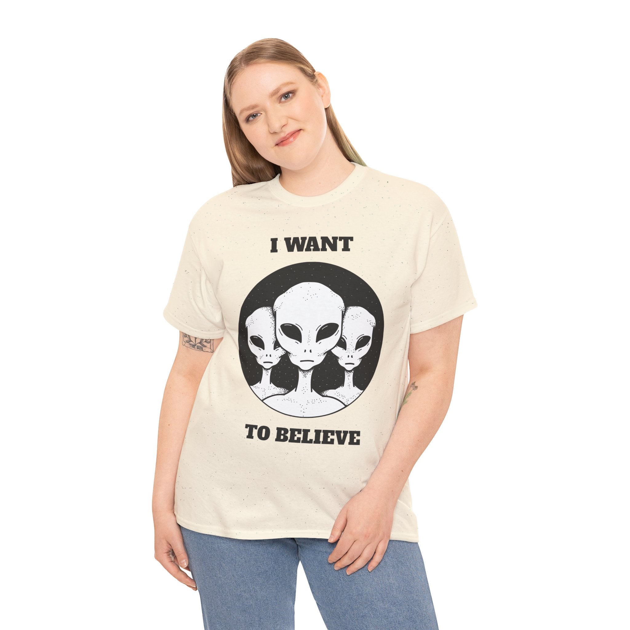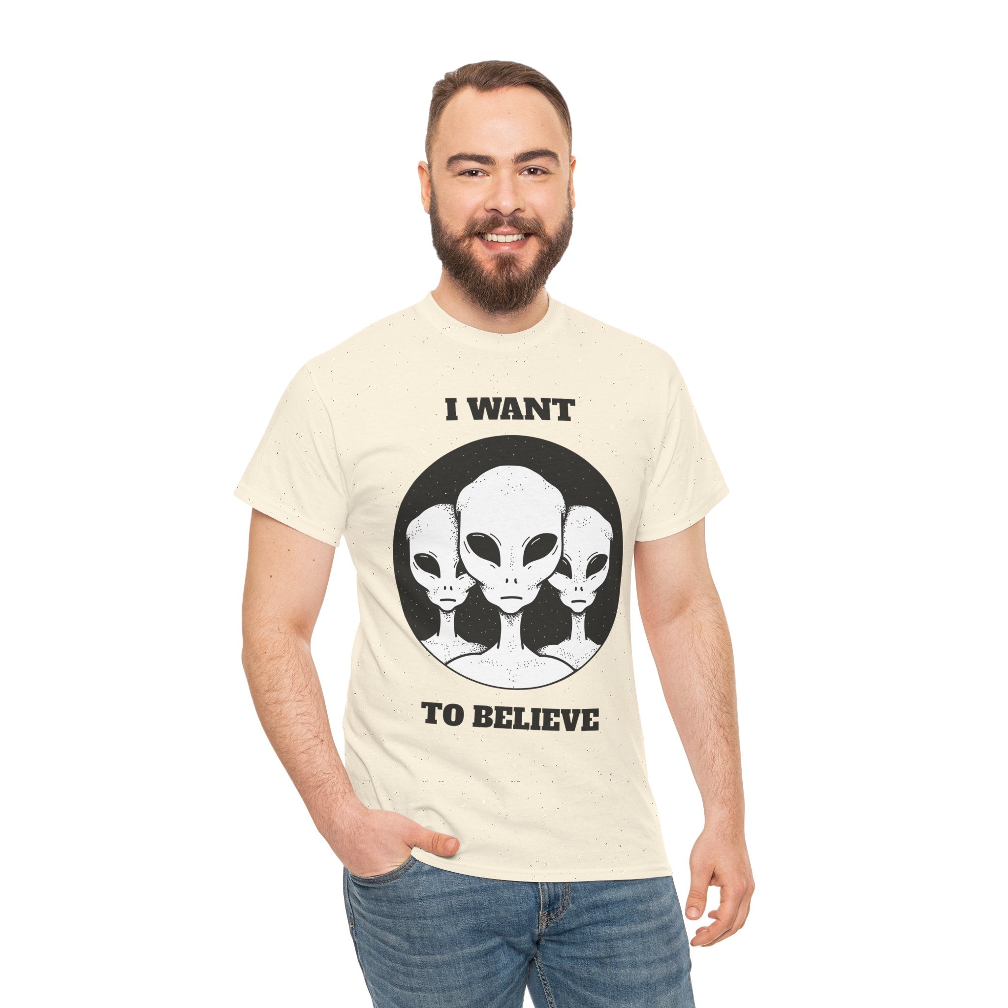 Step into the mystery of the cosmos with the Unisex “I Want To Believe” Alien T-Shirt. Featuring three striking extraterrestrial figures set against a cosmic backdrop, this tee channels the spirit of curiosity, wonder, and the thrill of the unexplained. Whether you’re a sci-fi fanatic, UFO enthusiast, or simply love making bold statements, this shirt is designed for you.
