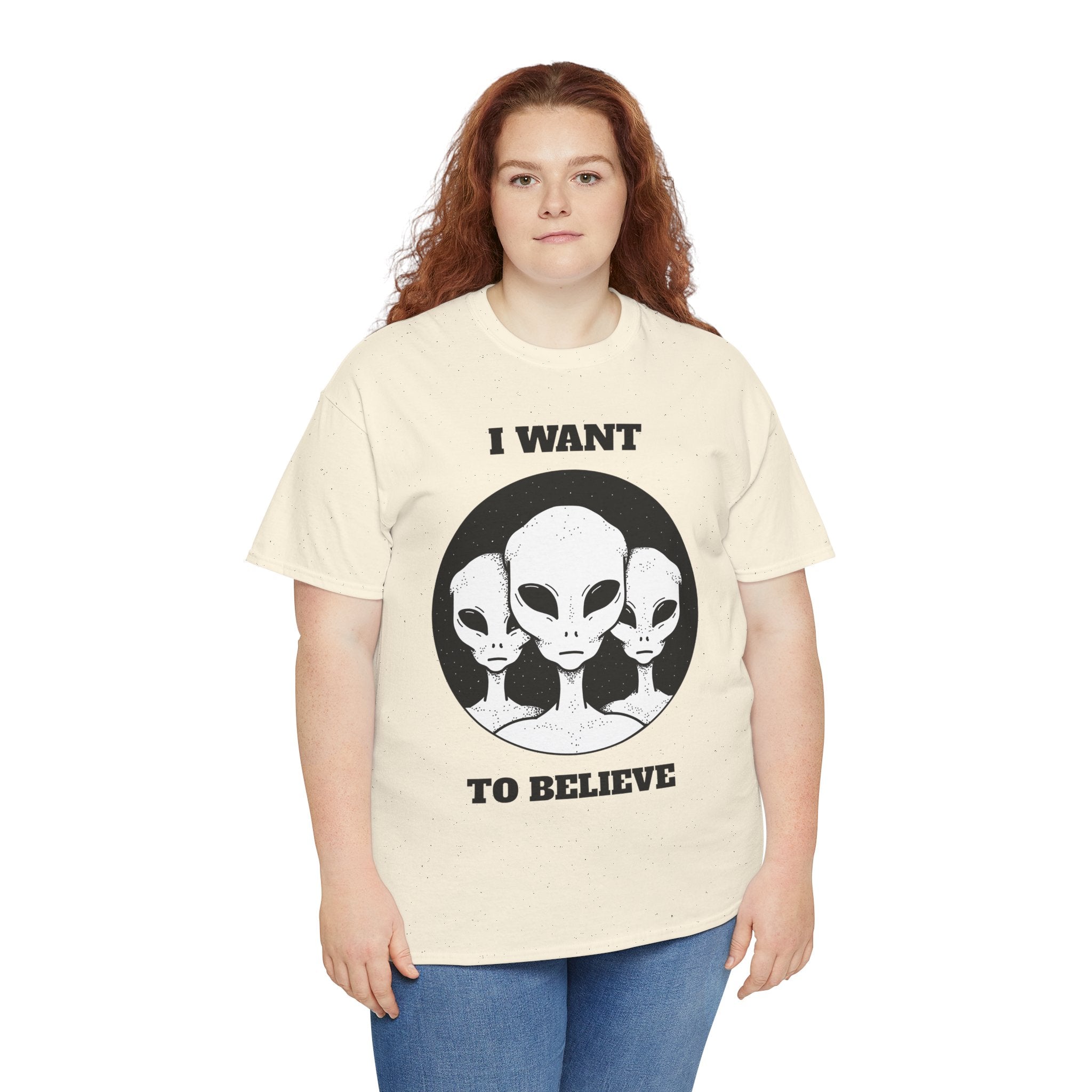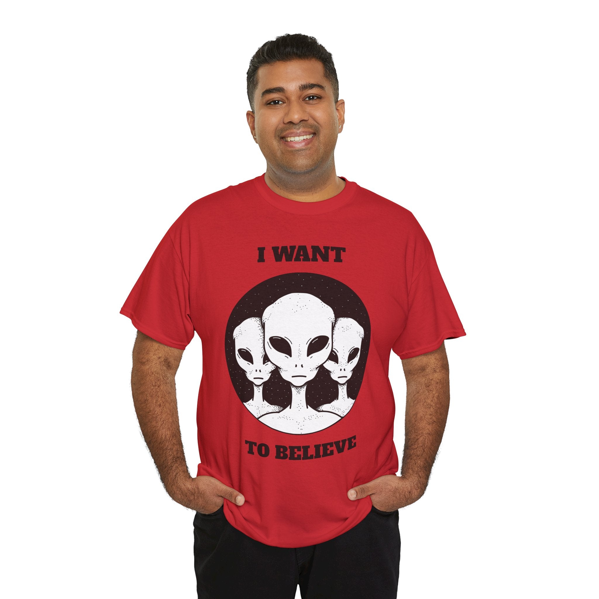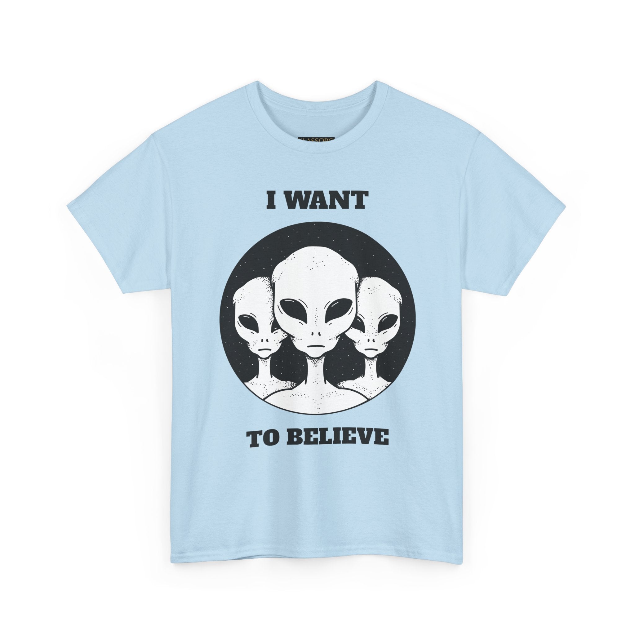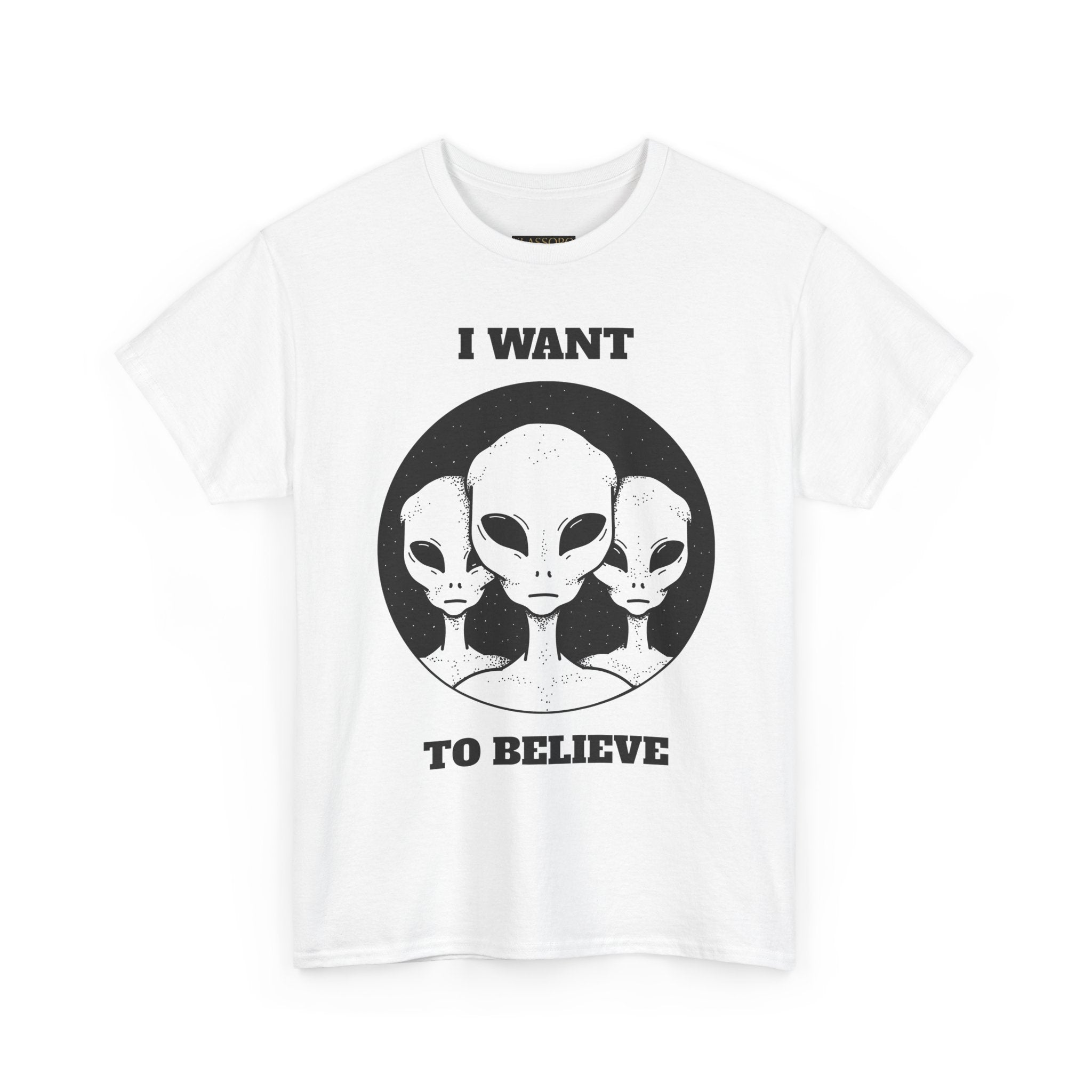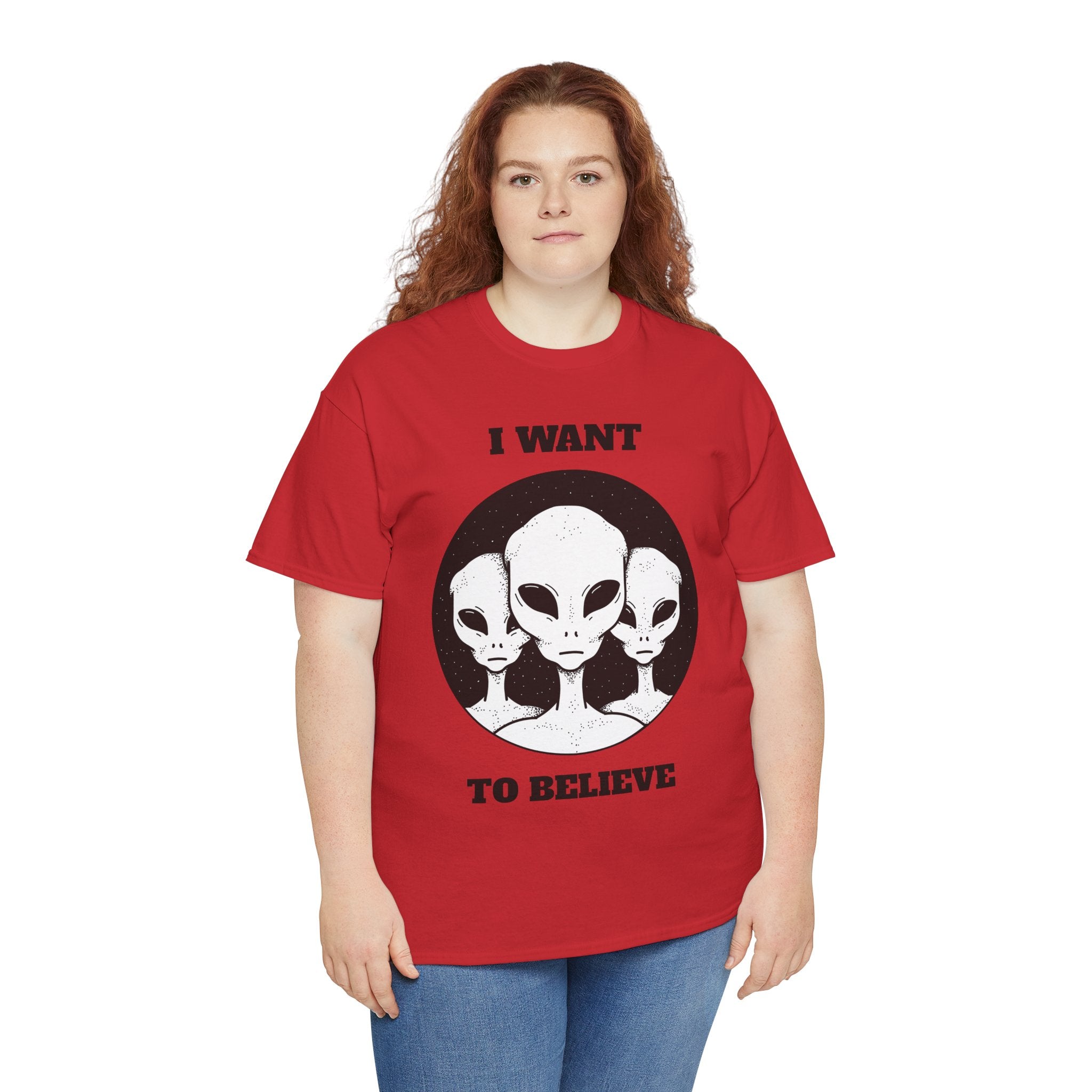Step into the mystery of the cosmos with the Unisex “I Want To Believe” Alien T-Shirt. Featuring three striking extraterrestrial figures set against a cosmic backdrop, this tee channels the spirit of curiosity, wonder, and the thrill of the unexplained. Whether you’re a sci-fi fanatic, UFO enthusiast, or simply love making bold statements, this shirt is designed for you.