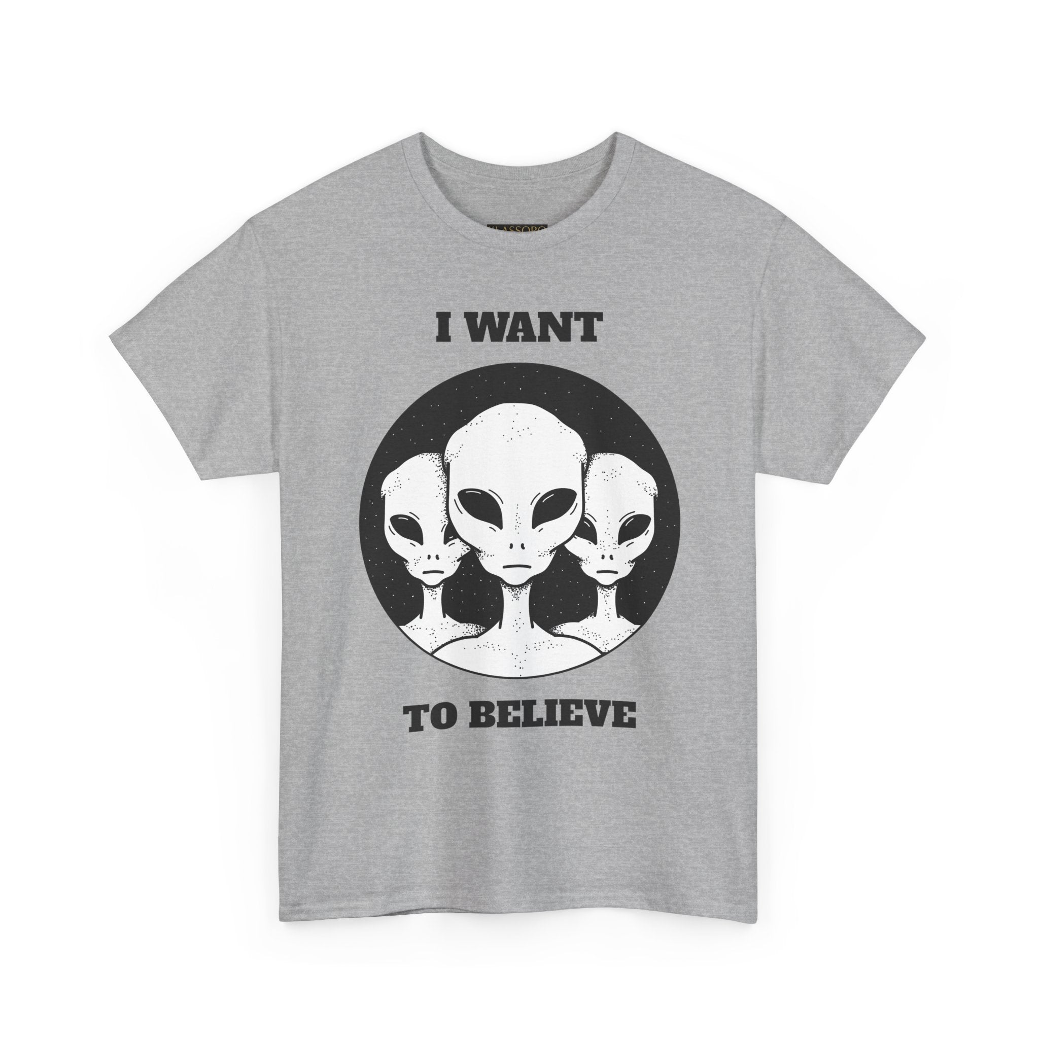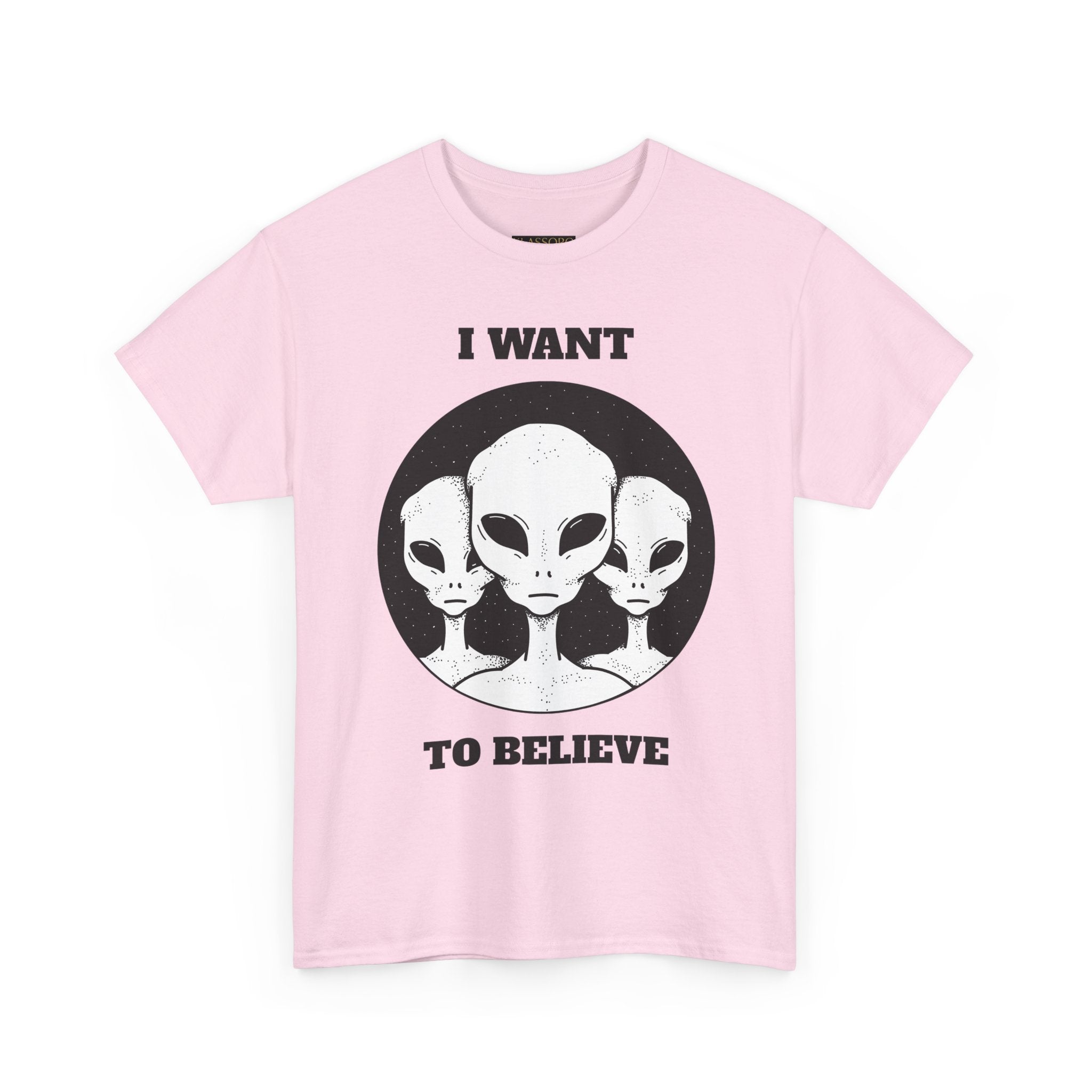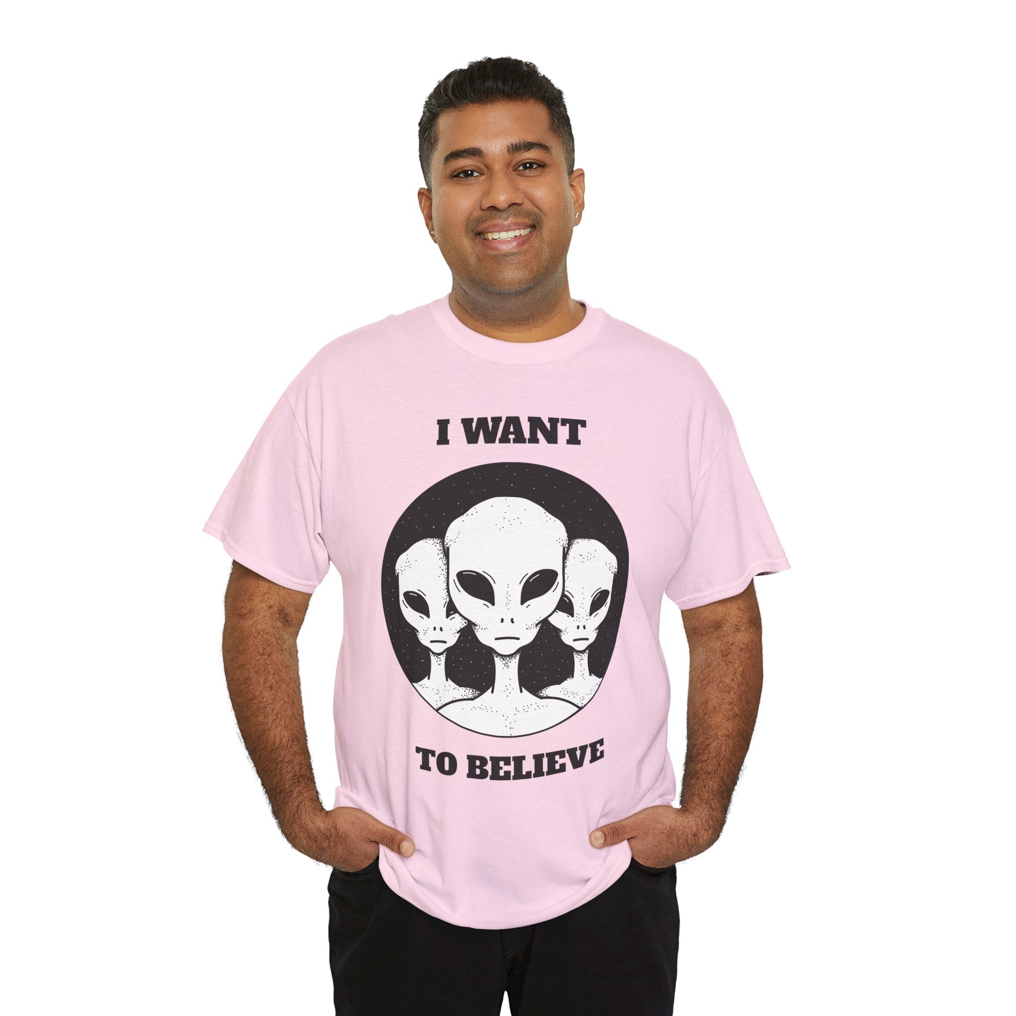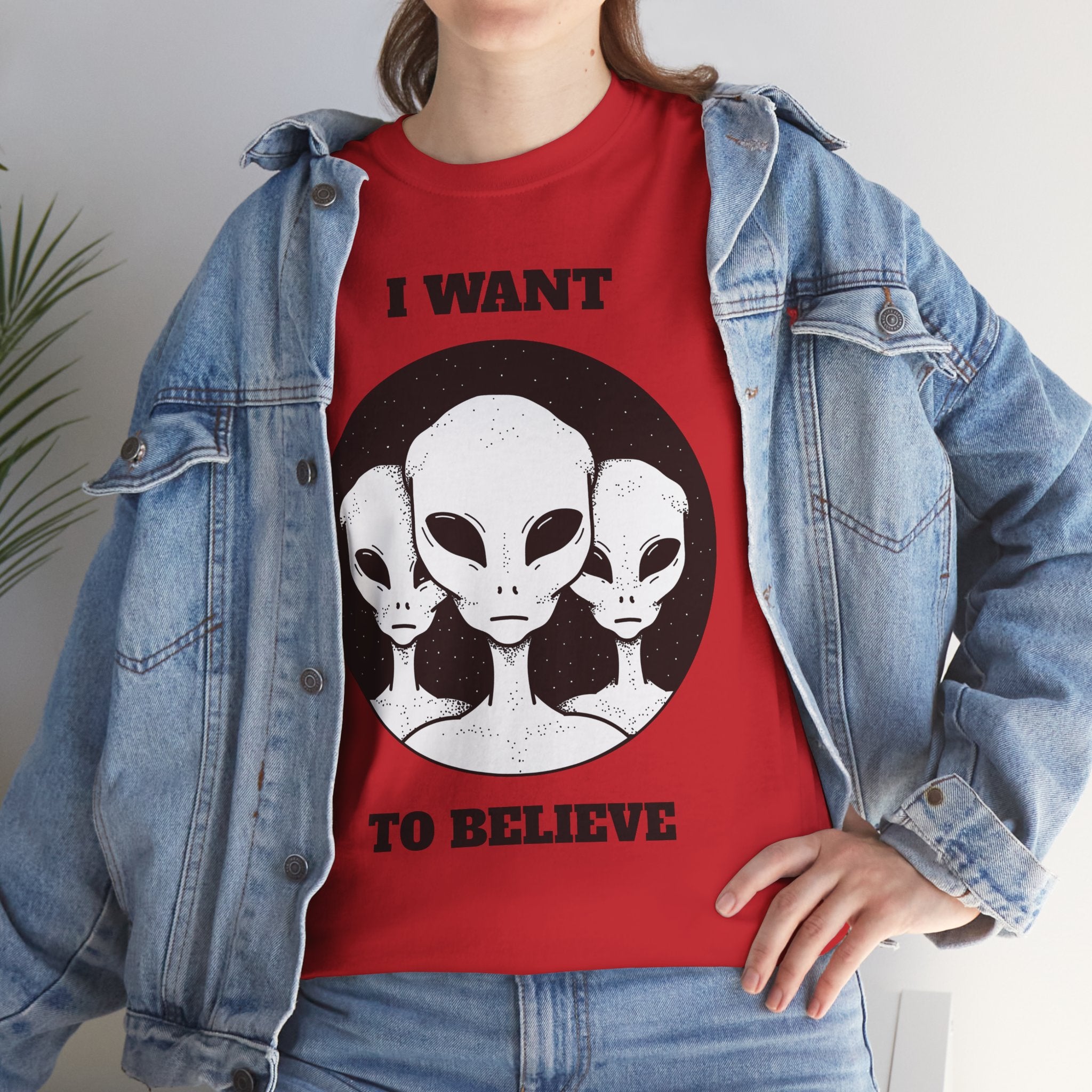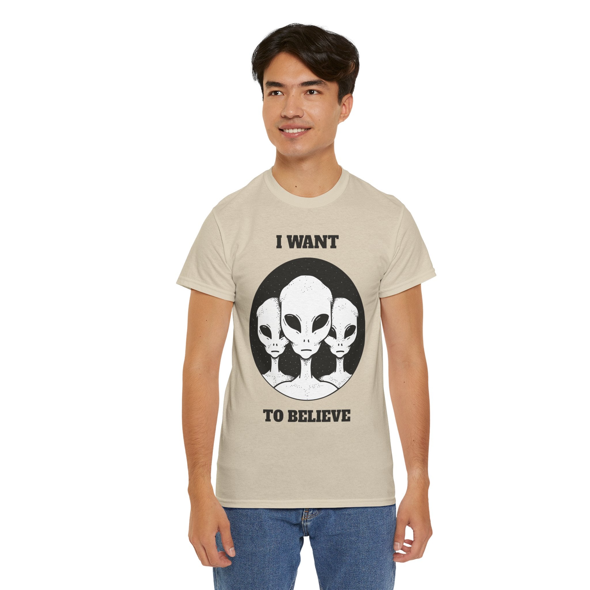 Step into the mystery of the cosmos with the Unisex “I Want To Believe” Alien T-Shirt. Featuring three striking extraterrestrial figures set against a cosmic backdrop, this tee channels the spirit of curiosity, wonder, and the thrill of the unexplained. Whether you’re a sci-fi fanatic, UFO enthusiast, or simply love making bold statements, this shirt is designed for you.