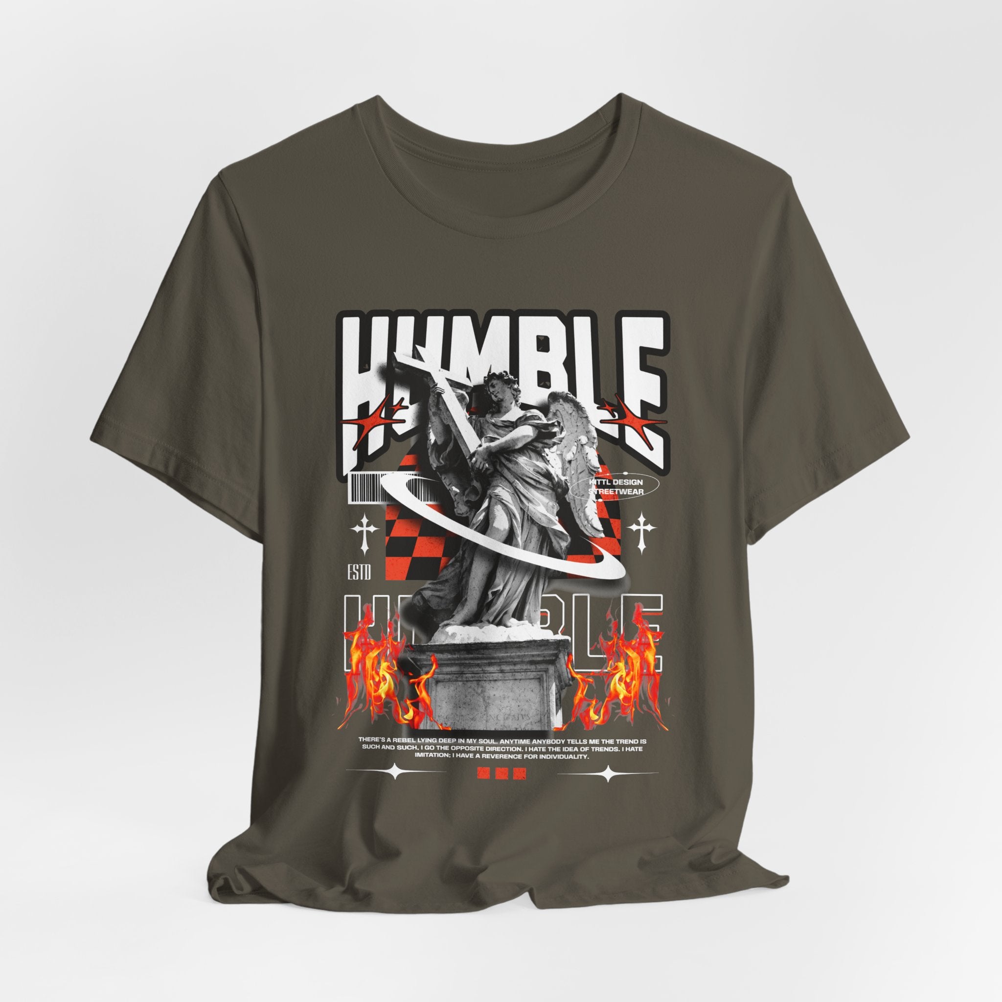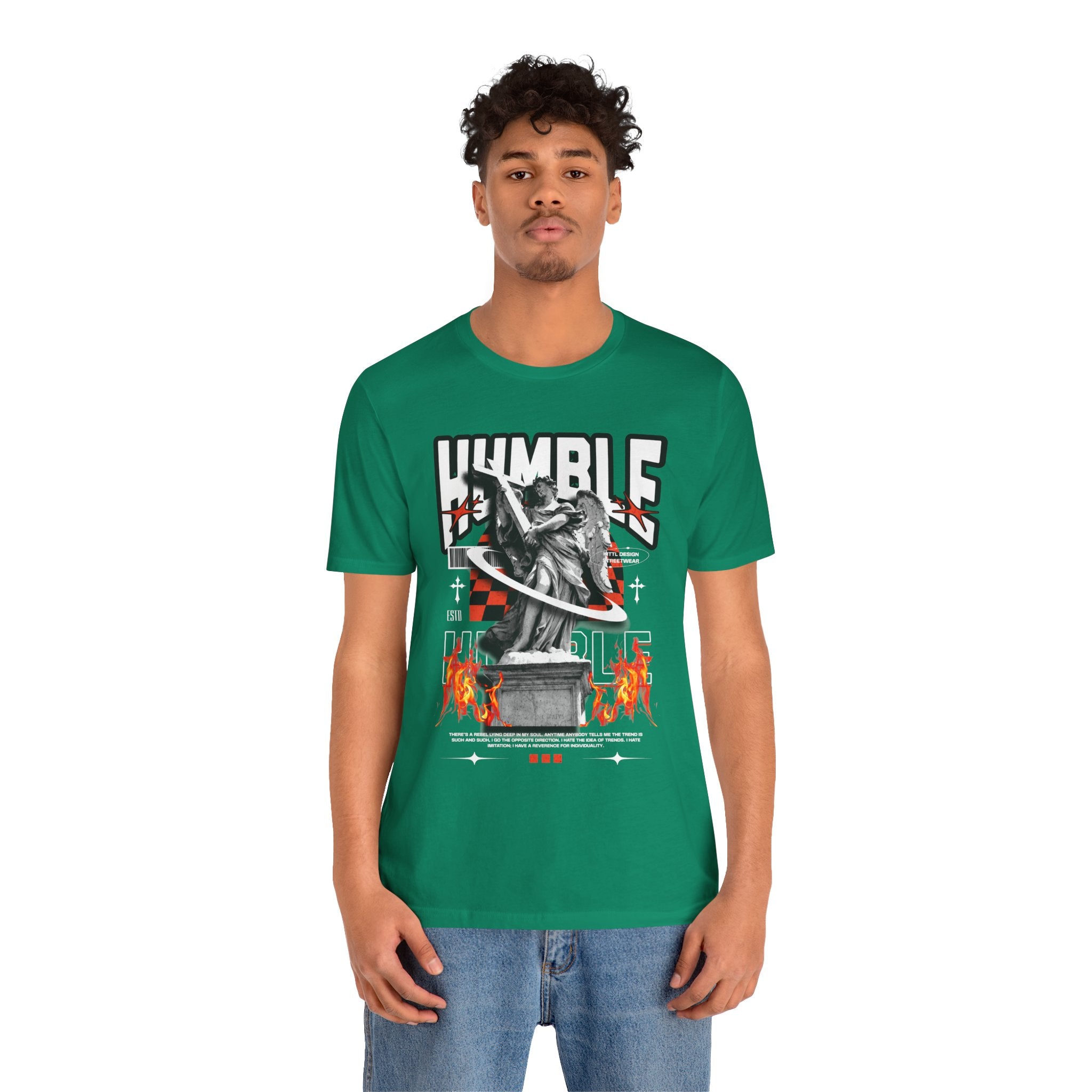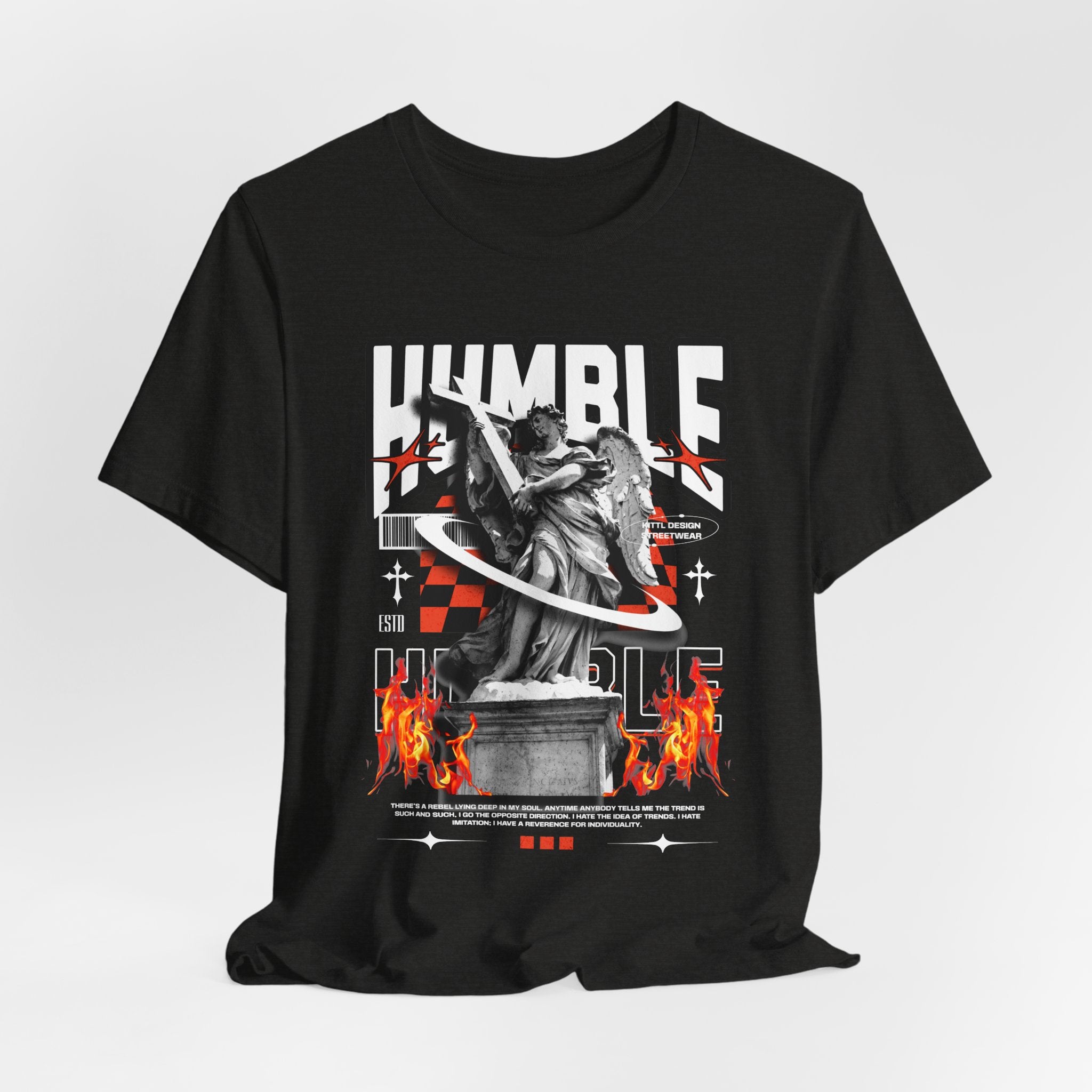 The powerful “HUMBLE” graphic with fire and angel imagery tells a story: that staying grounded while chasing success makes you unstoppable. This tee isn’t just clothing — it’s a statement, a mindset, and an identity.