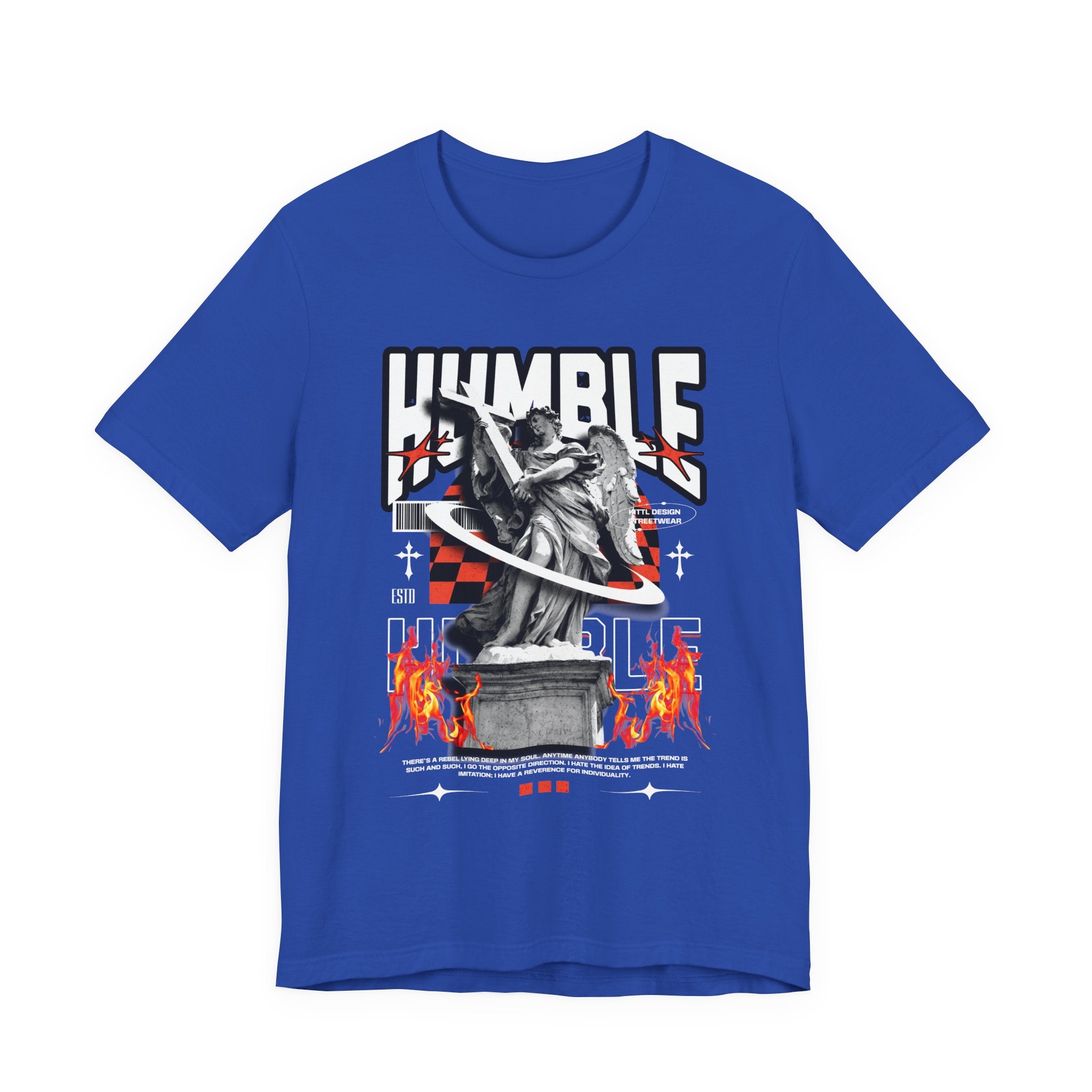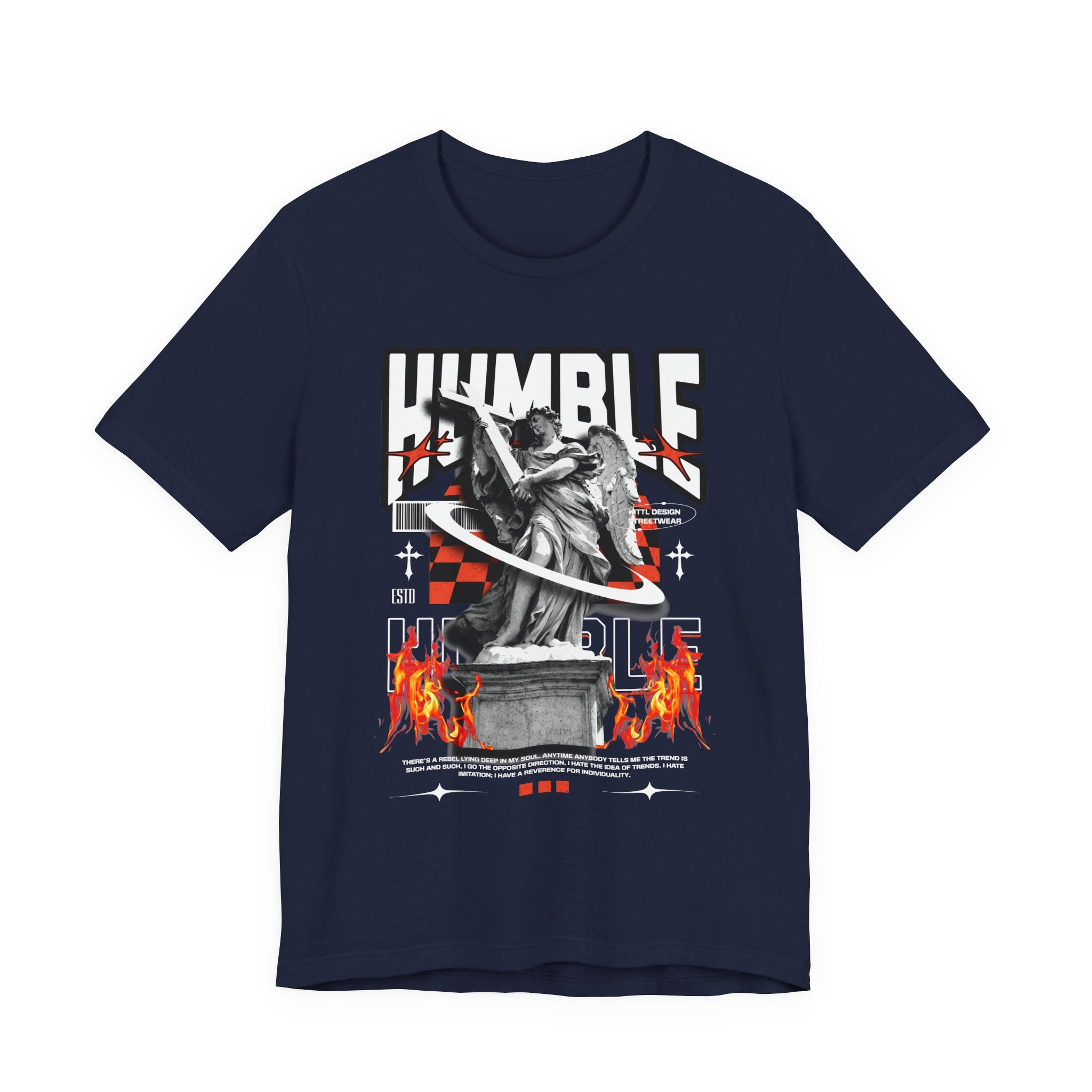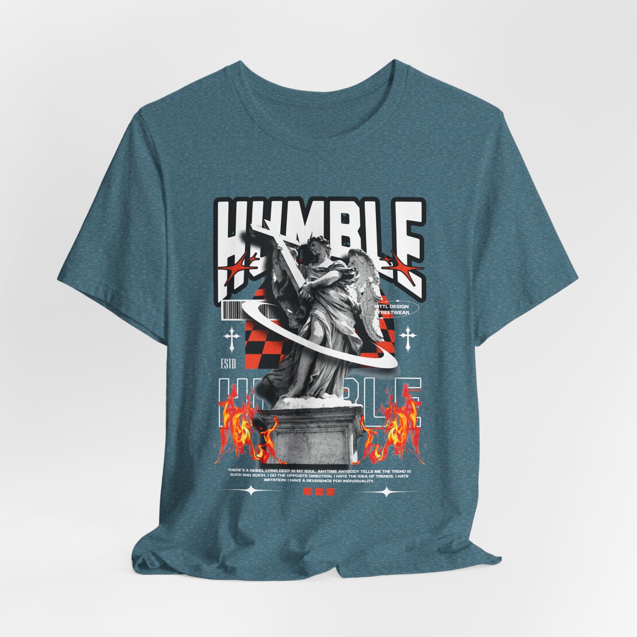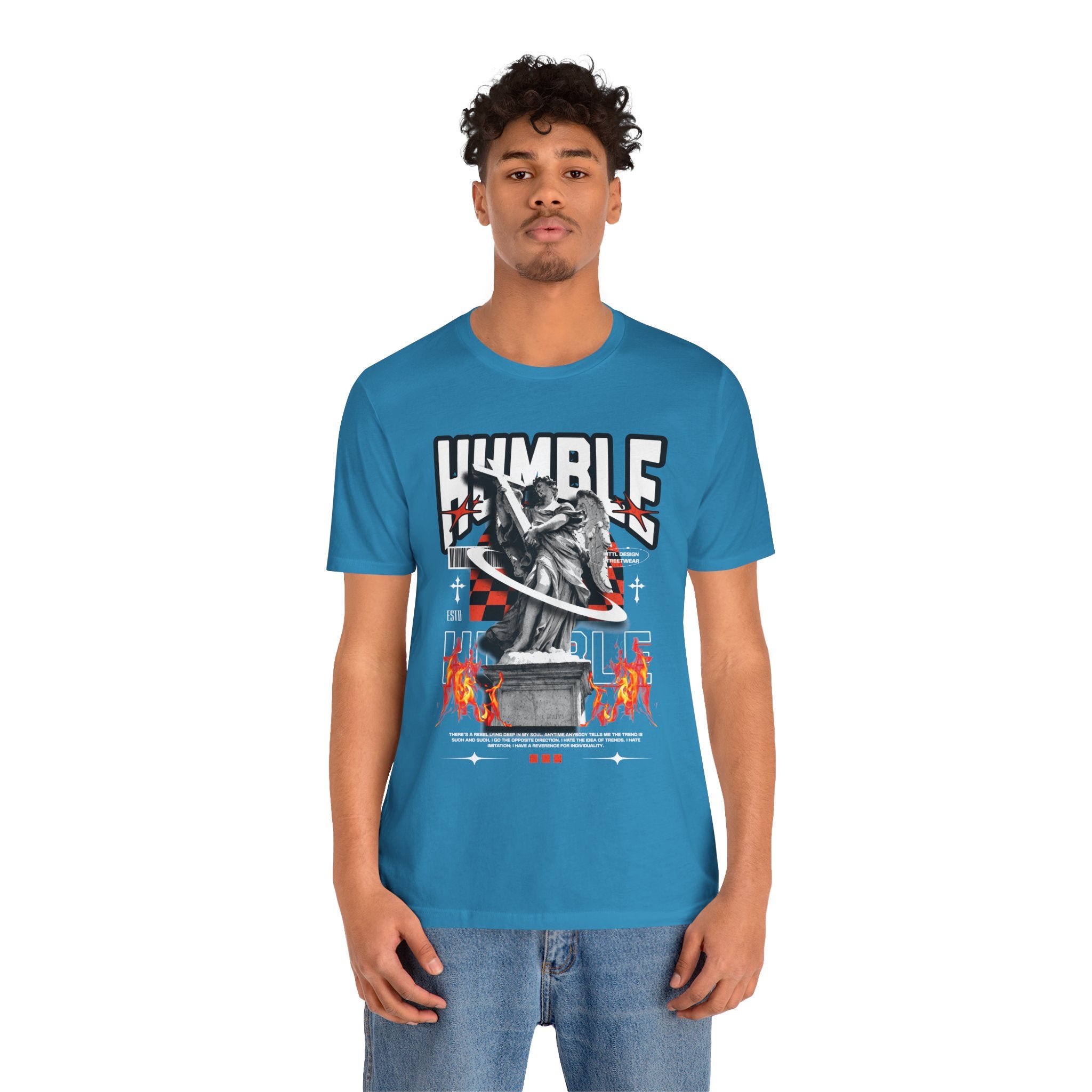 The powerful “HUMBLE” graphic with fire and angel imagery tells a story: that staying grounded while chasing success makes you unstoppable. This tee isn’t just clothing — it’s a statement, a mindset, and an identity.