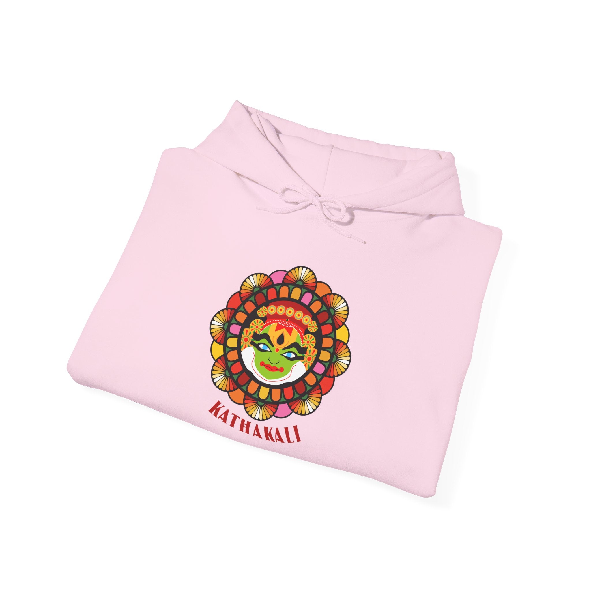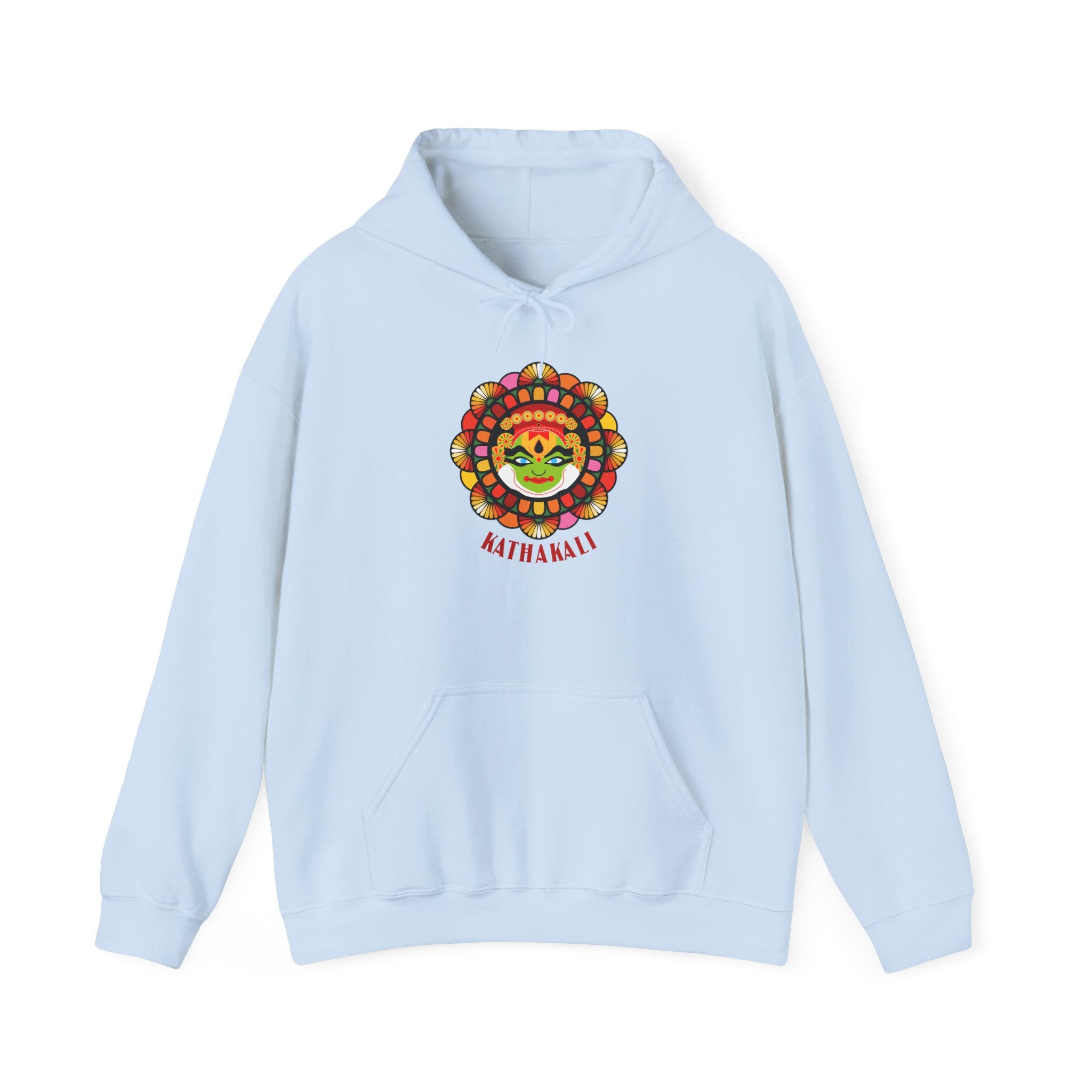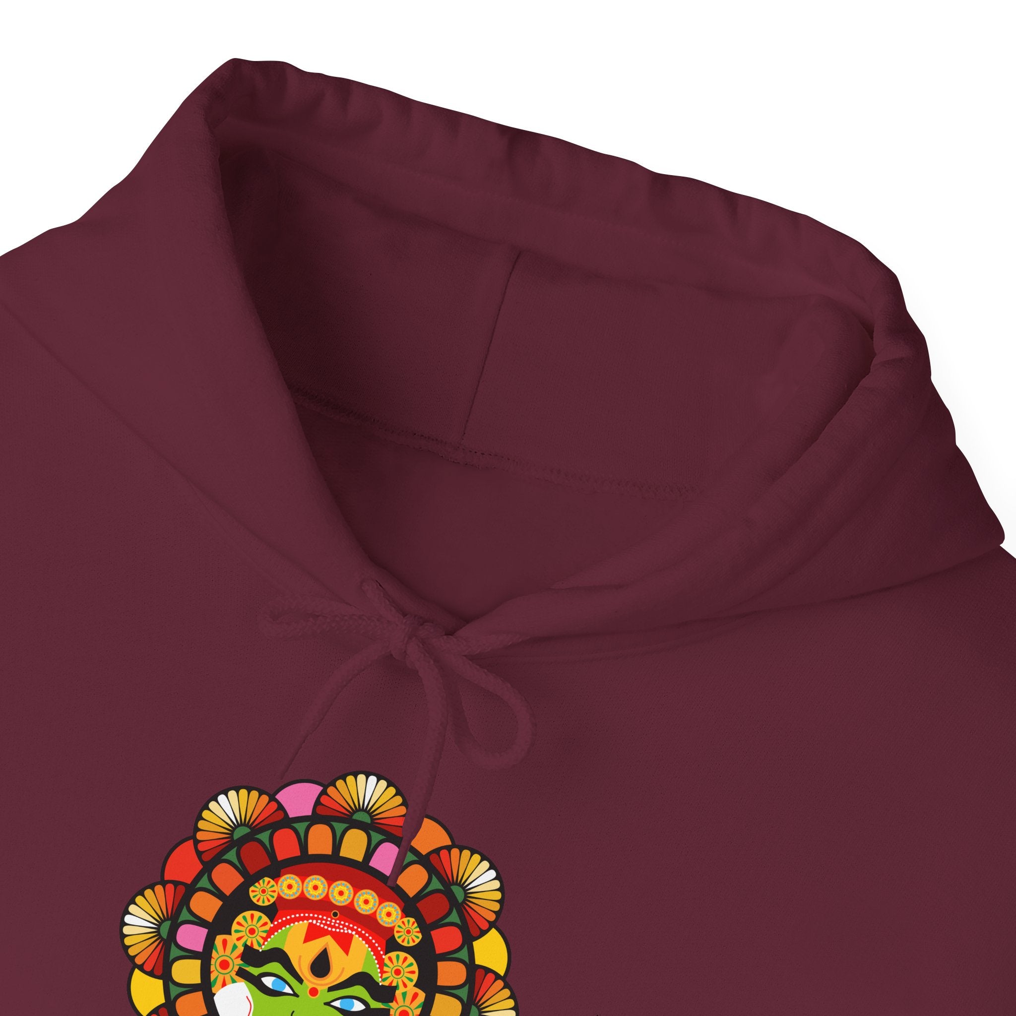 Unisex heavy blend pullover hoodie with Kathakali face artwork