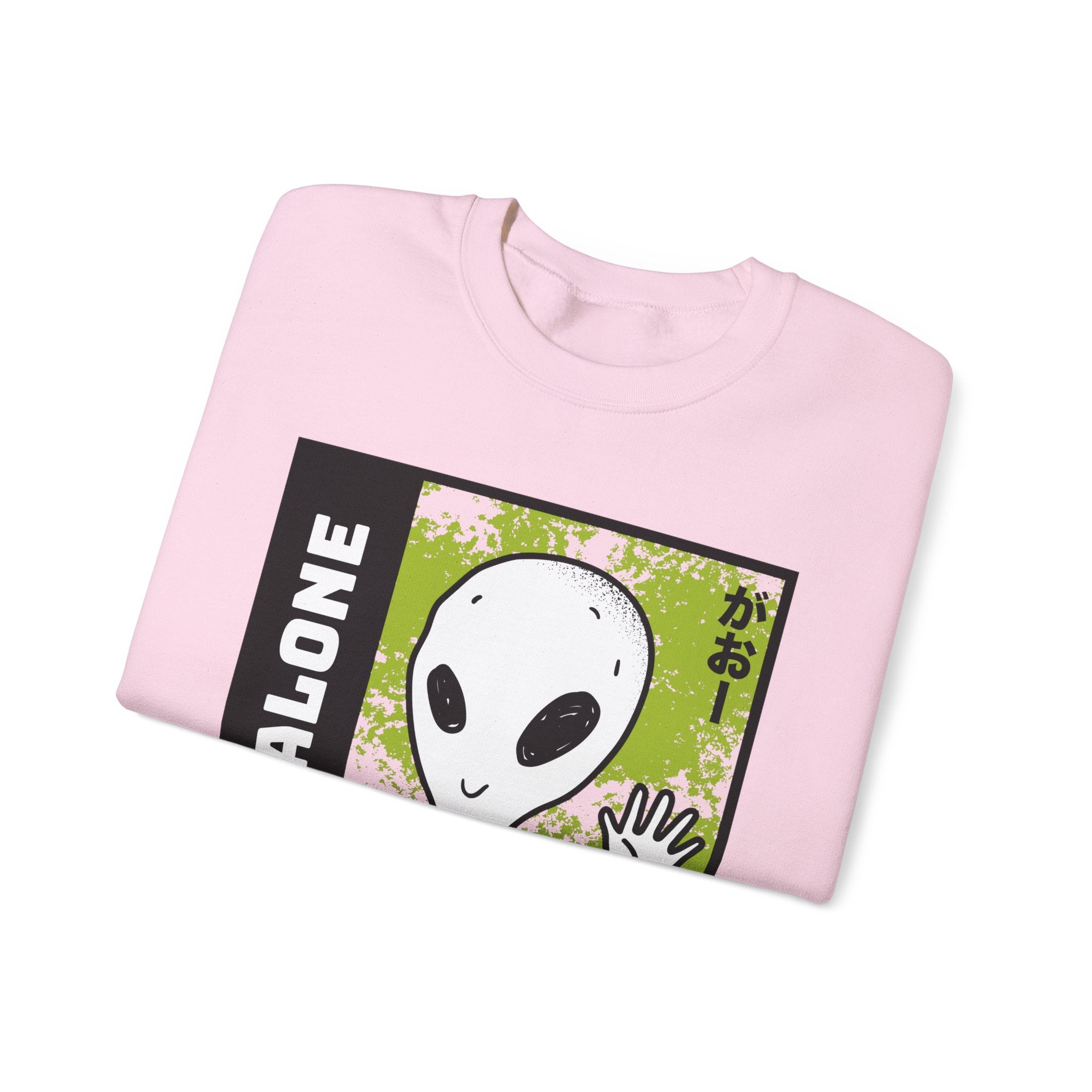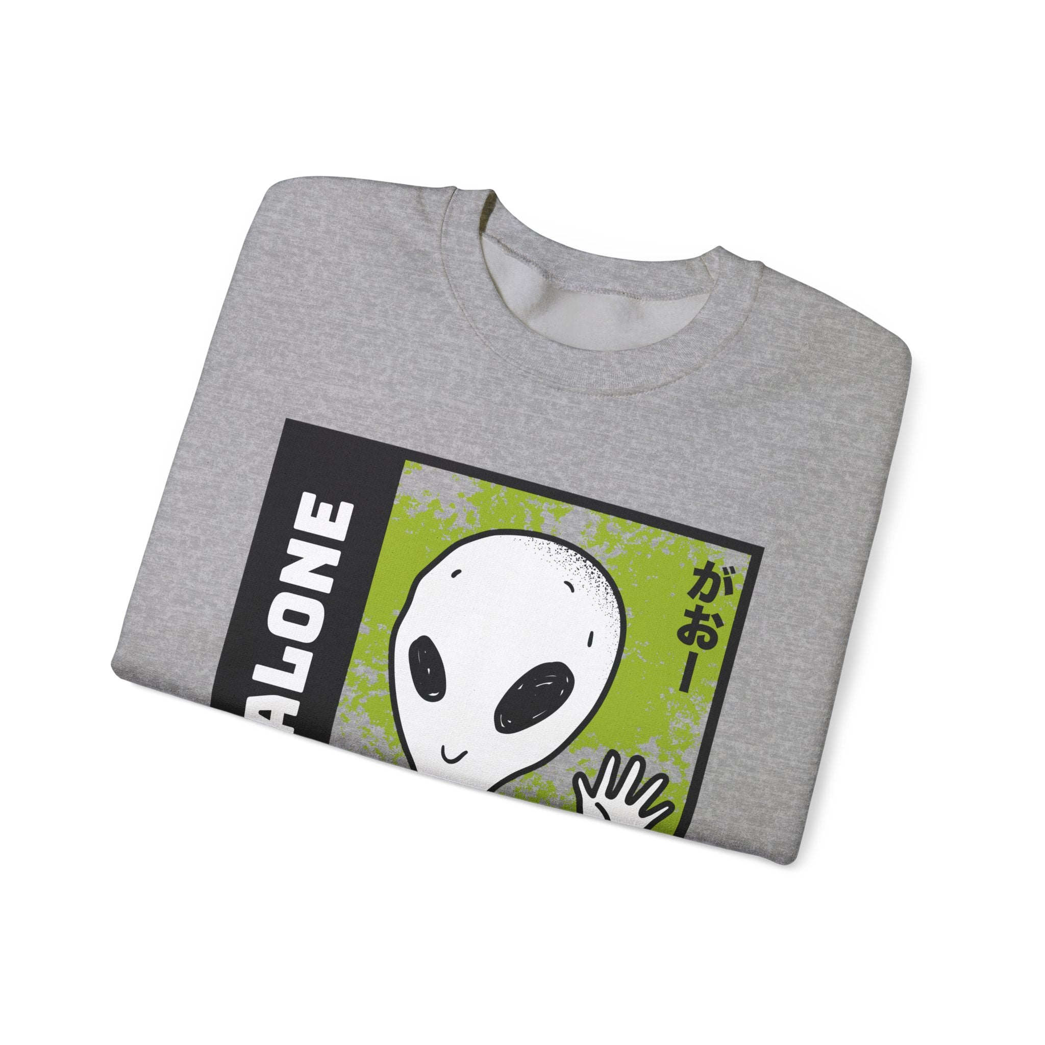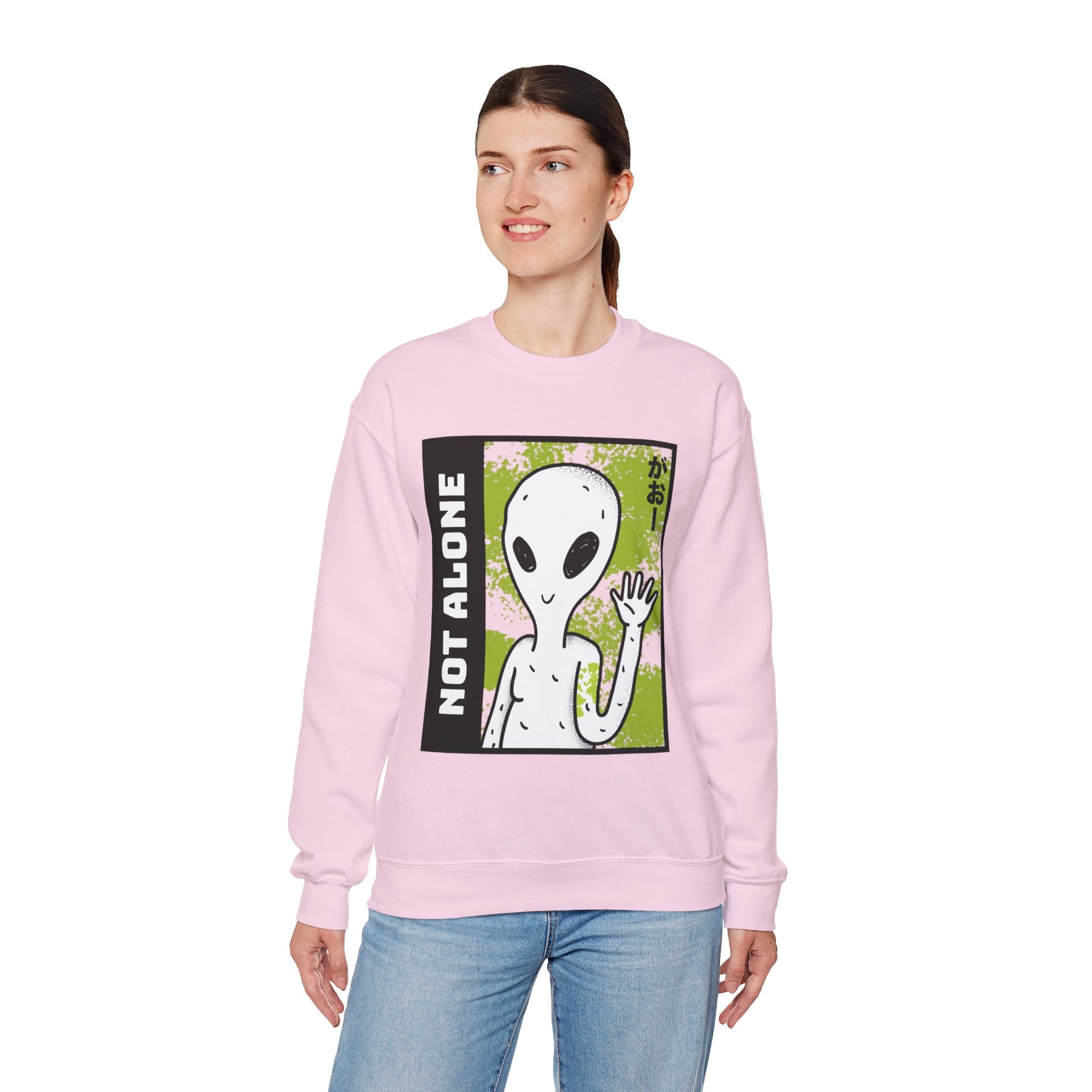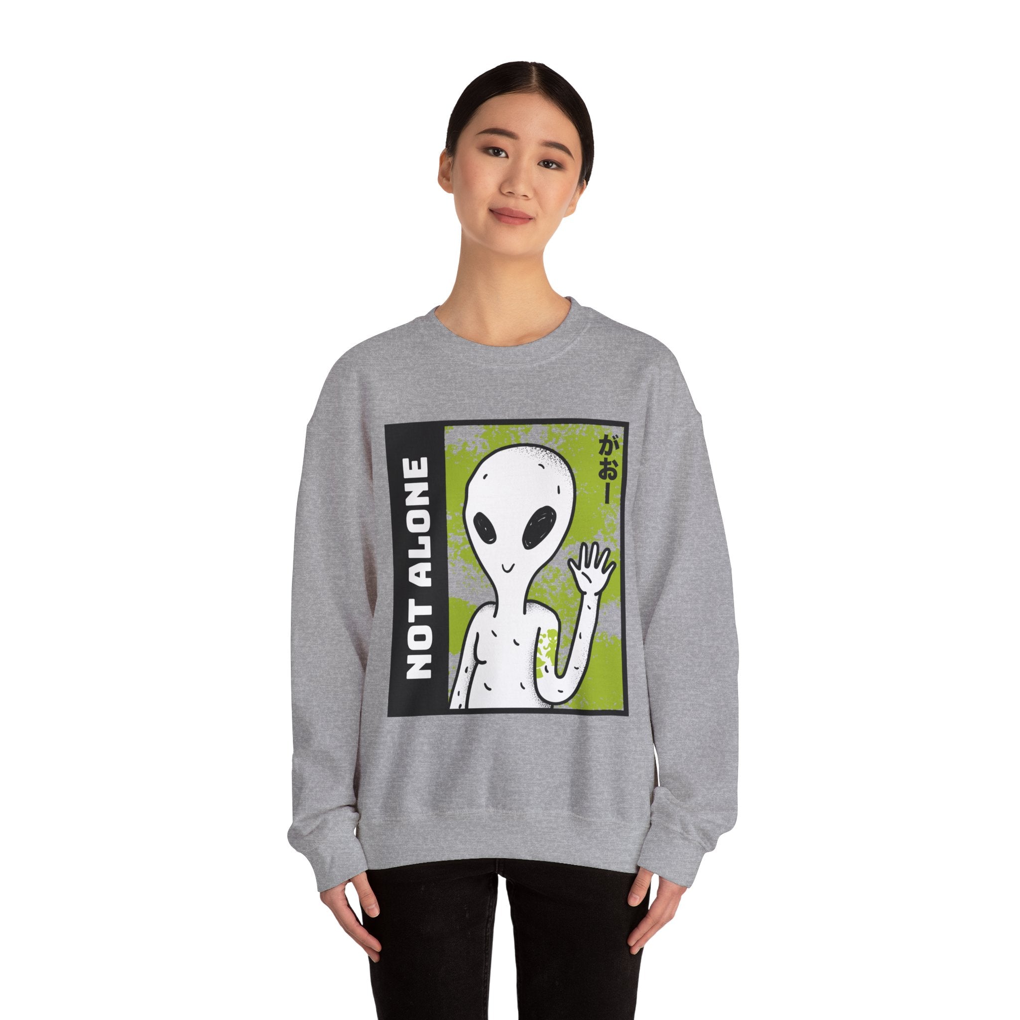 The Unisex “Not Alone” Alien Crewneck Sweatshirt blends playful extraterrestrial vibes with streetwear comfort. Featuring a friendly waving alien graphic with bold lettering, this sweatshirt makes a fun statement while keeping you warm and stylish.