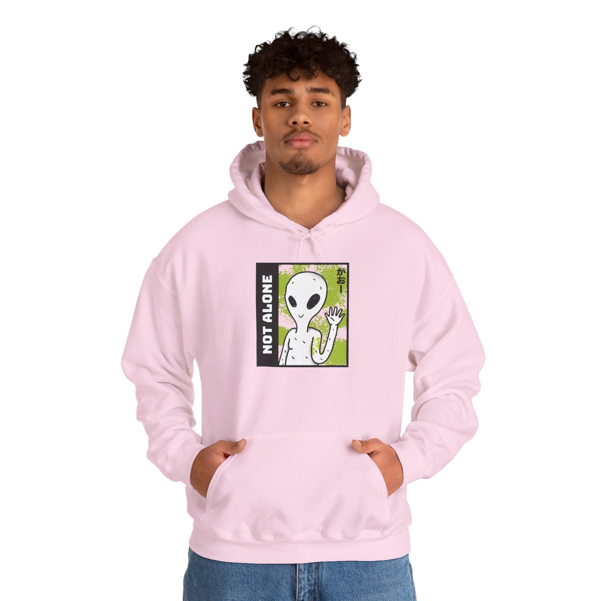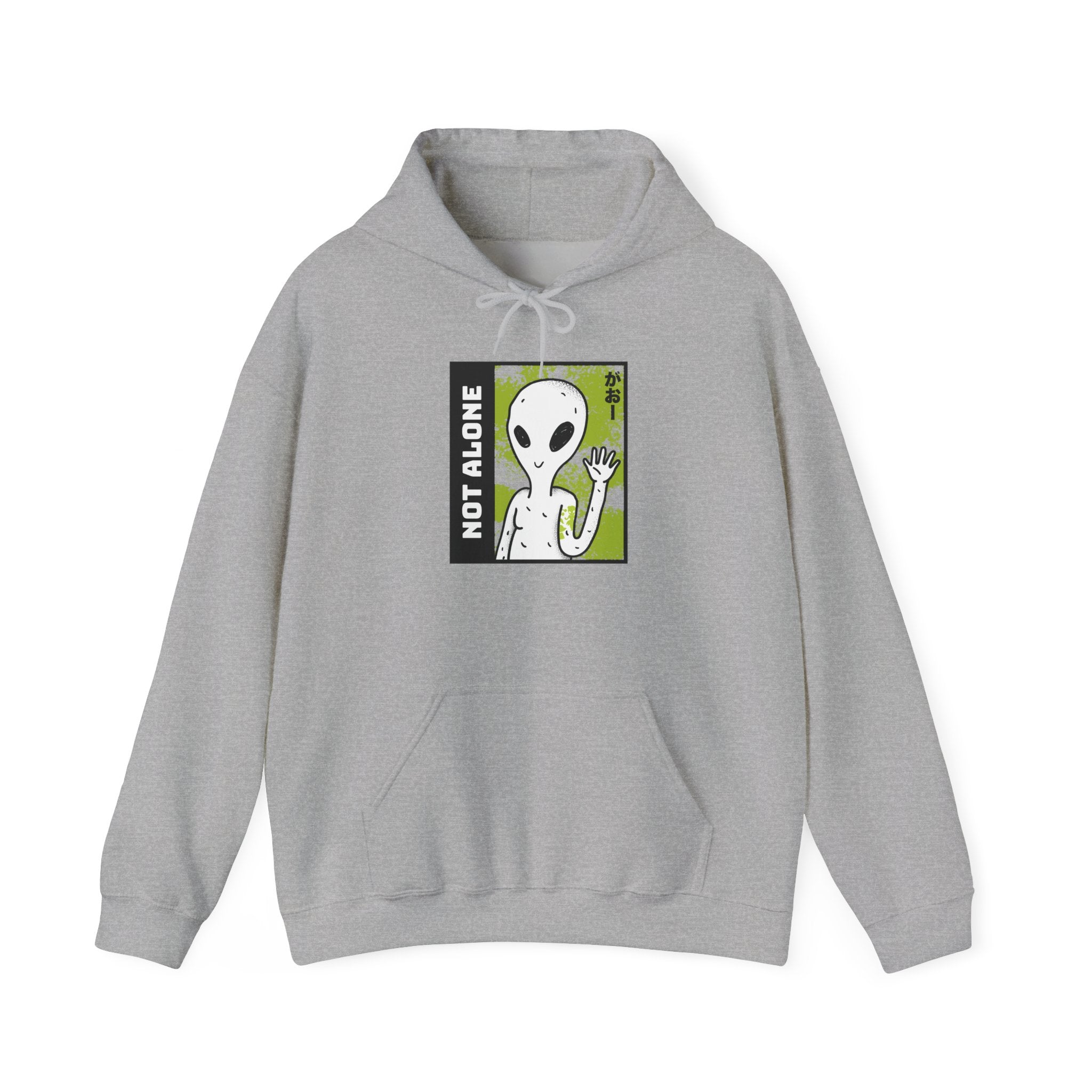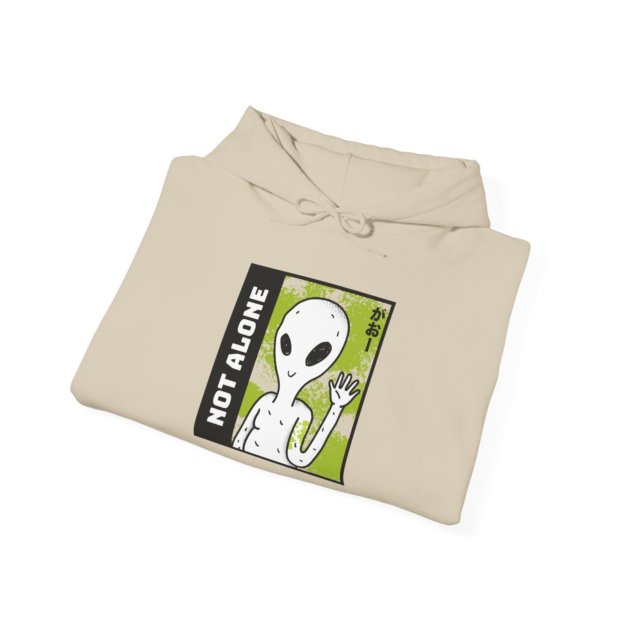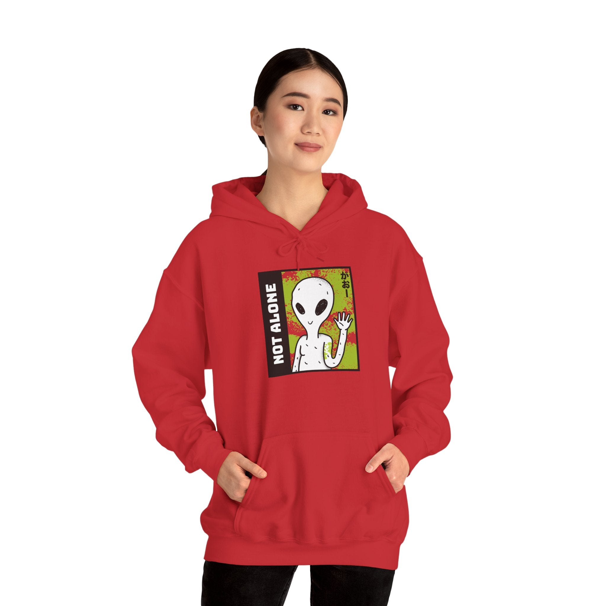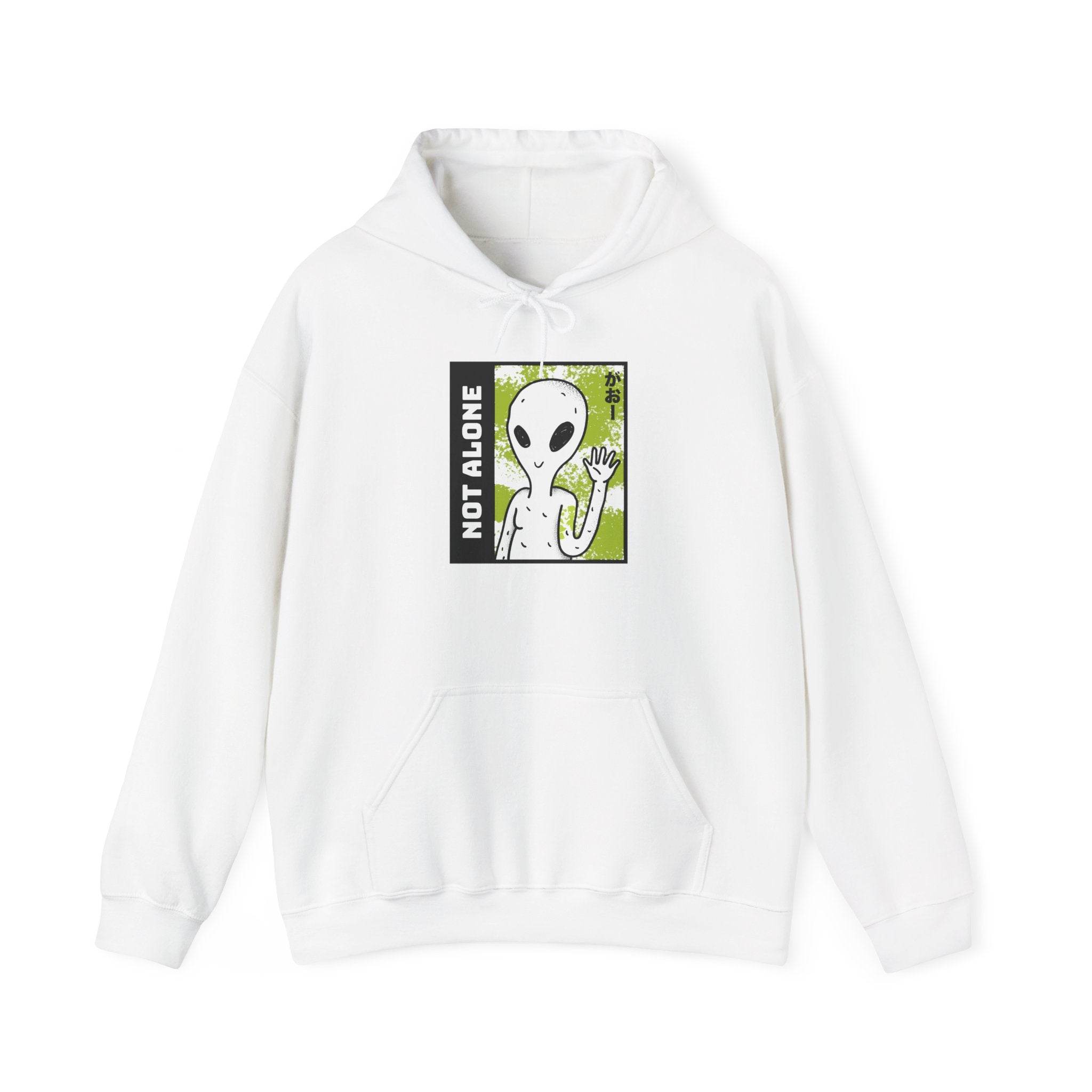 The Unisex “Not Alone” Alien Hoodie blends playful extraterrestrial art with everyday comfort. Featuring a waving alien graphic with bold lettering, this hoodie is for the believers, dreamers, and anyone who dares to think beyond Earth.