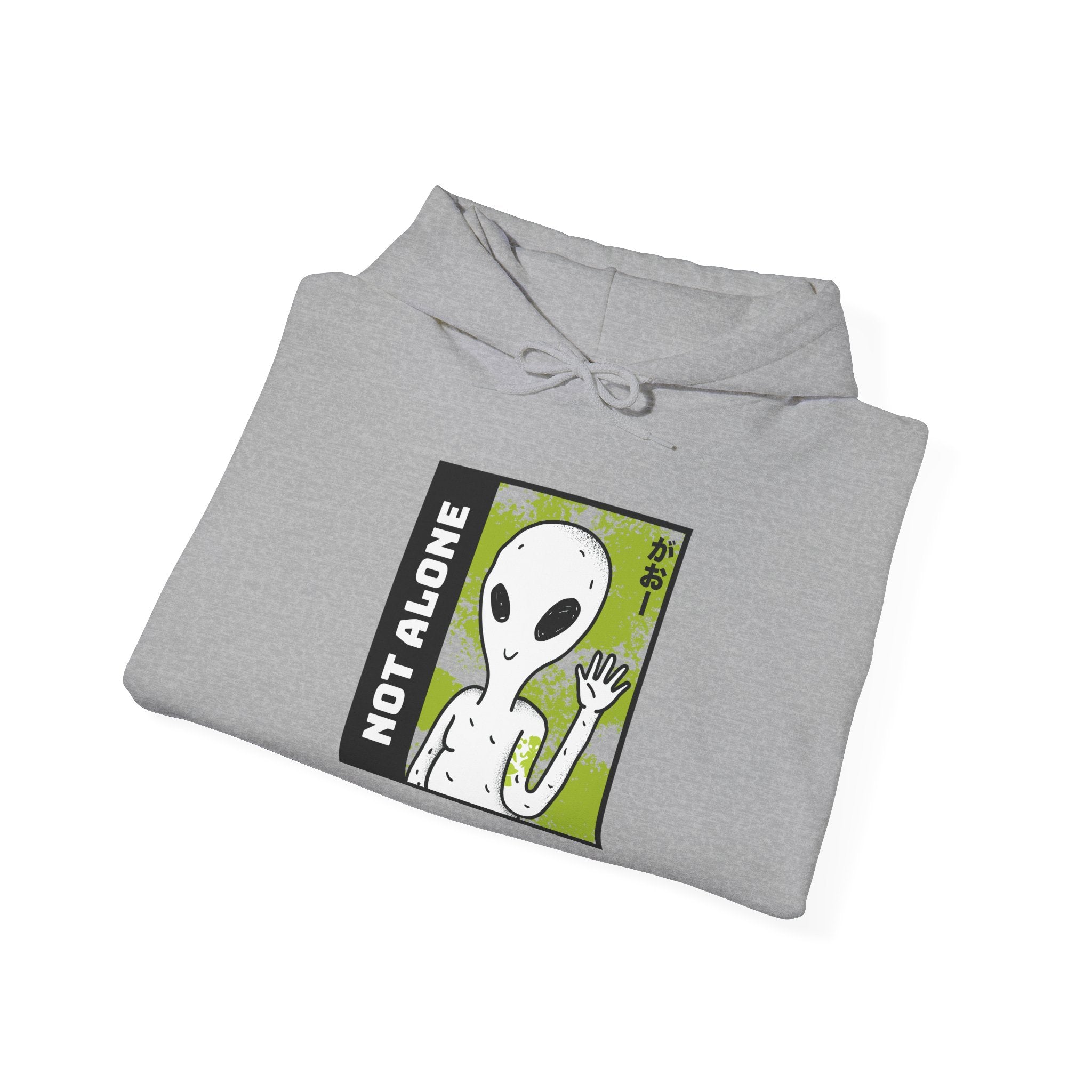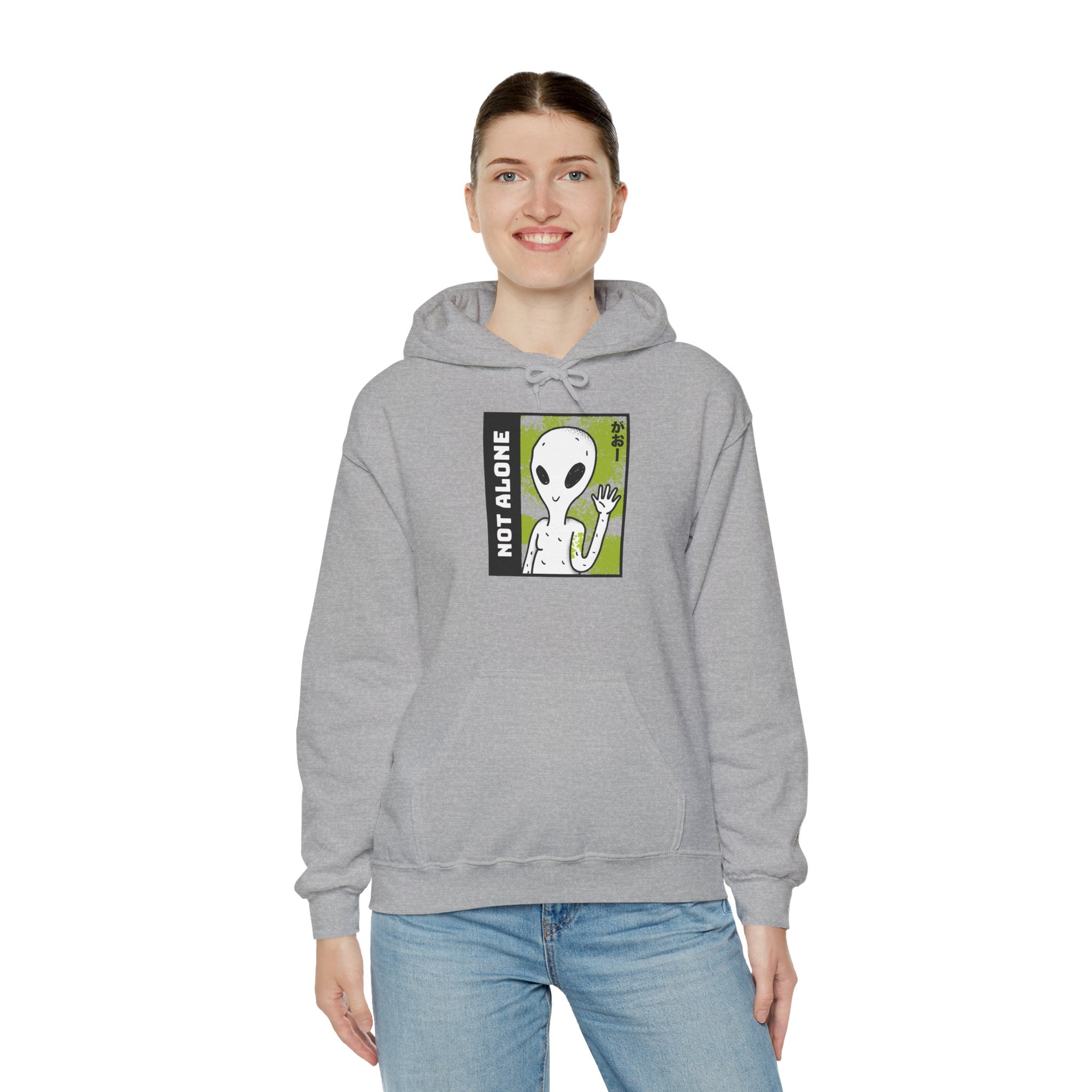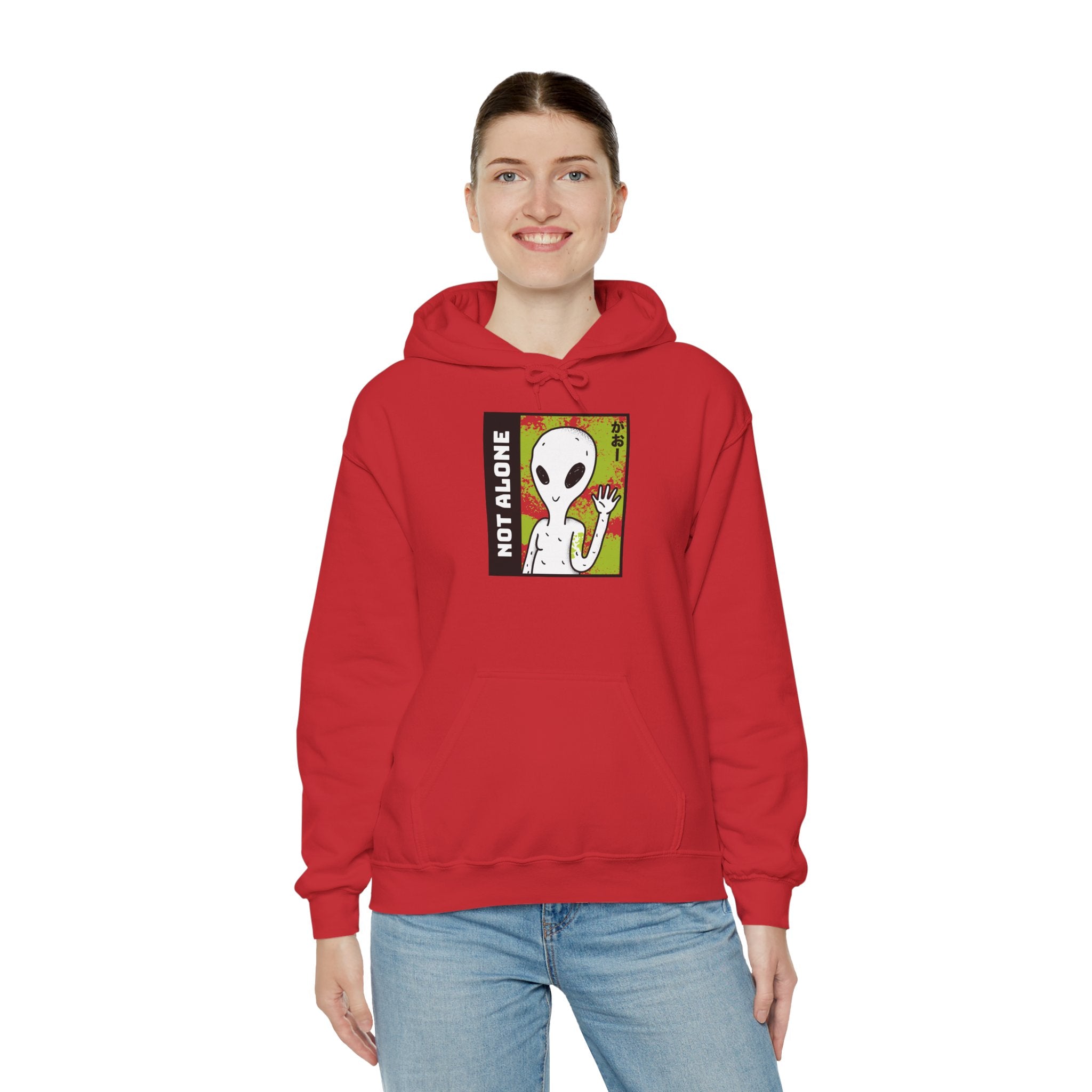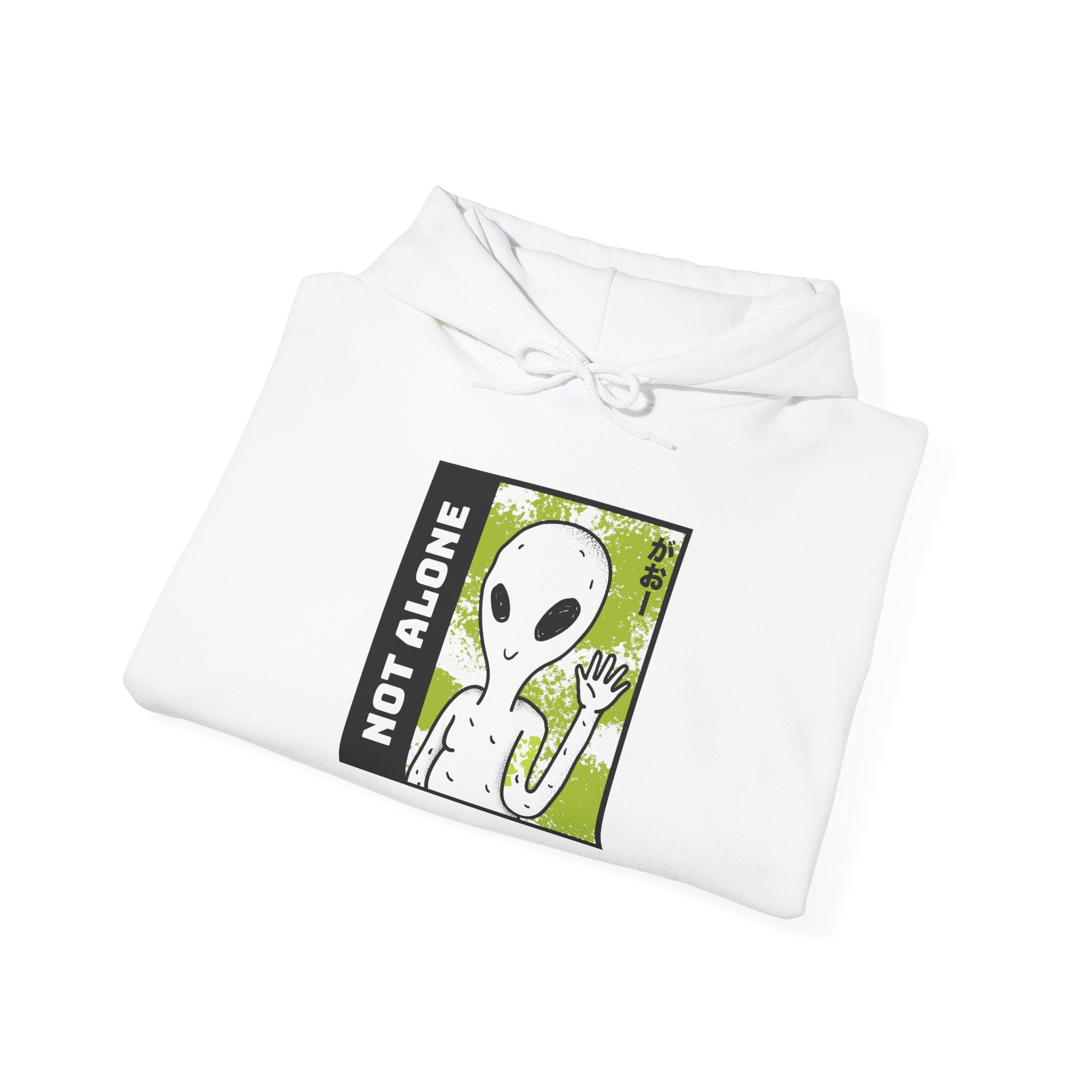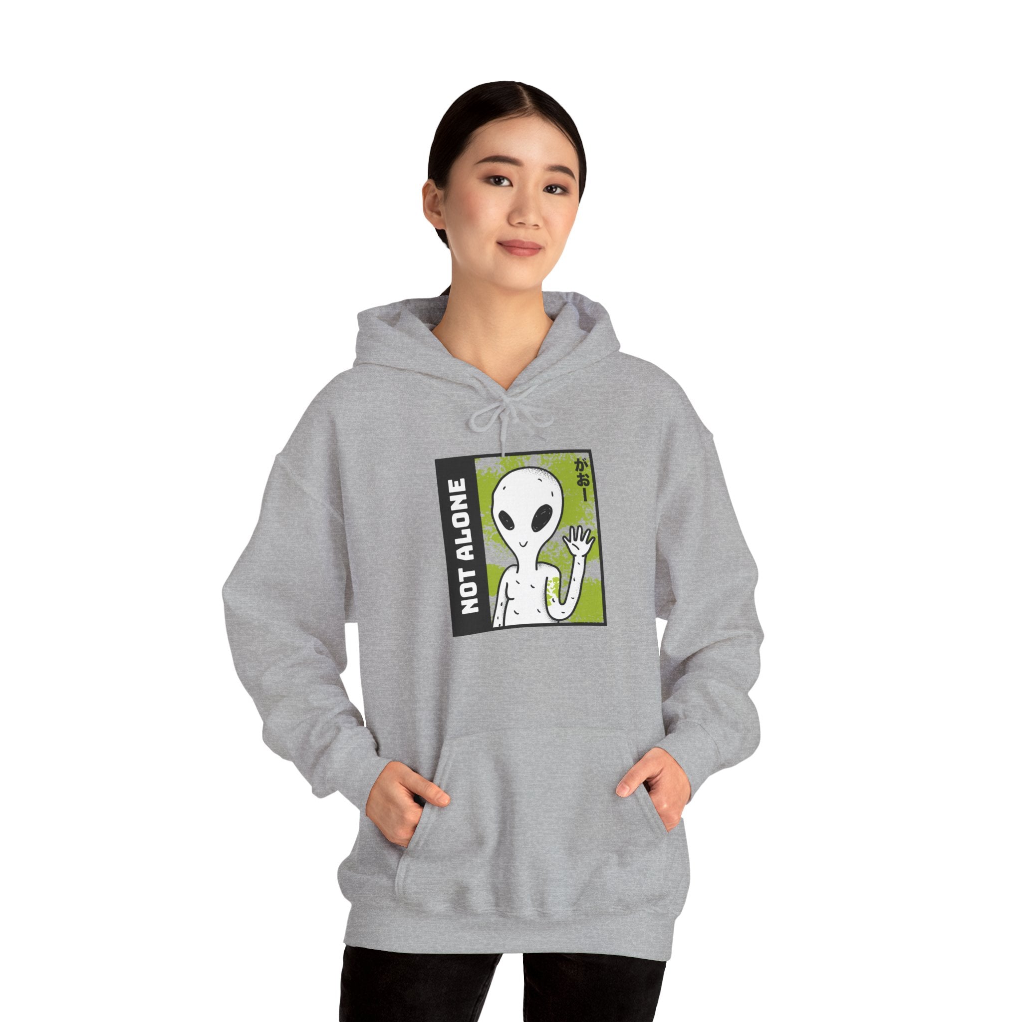 The Unisex “Not Alone” Alien Hoodie blends playful extraterrestrial art with everyday comfort. Featuring a waving alien graphic with bold lettering, this hoodie is for the believers, dreamers, and anyone who dares to think beyond Earth.