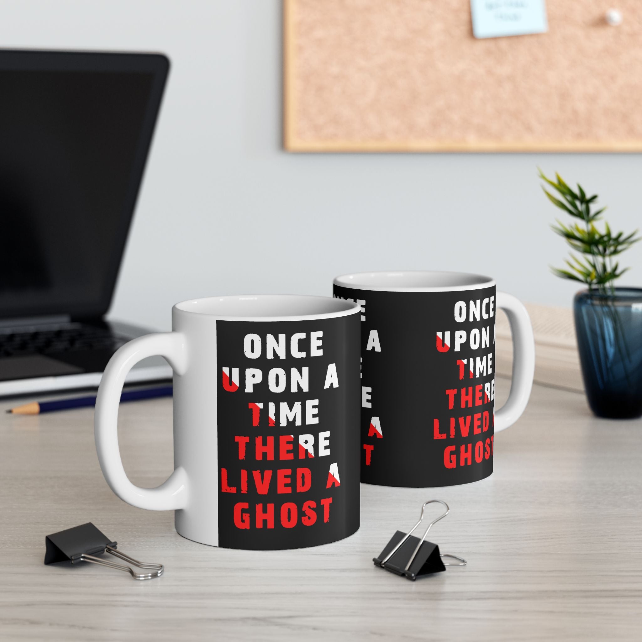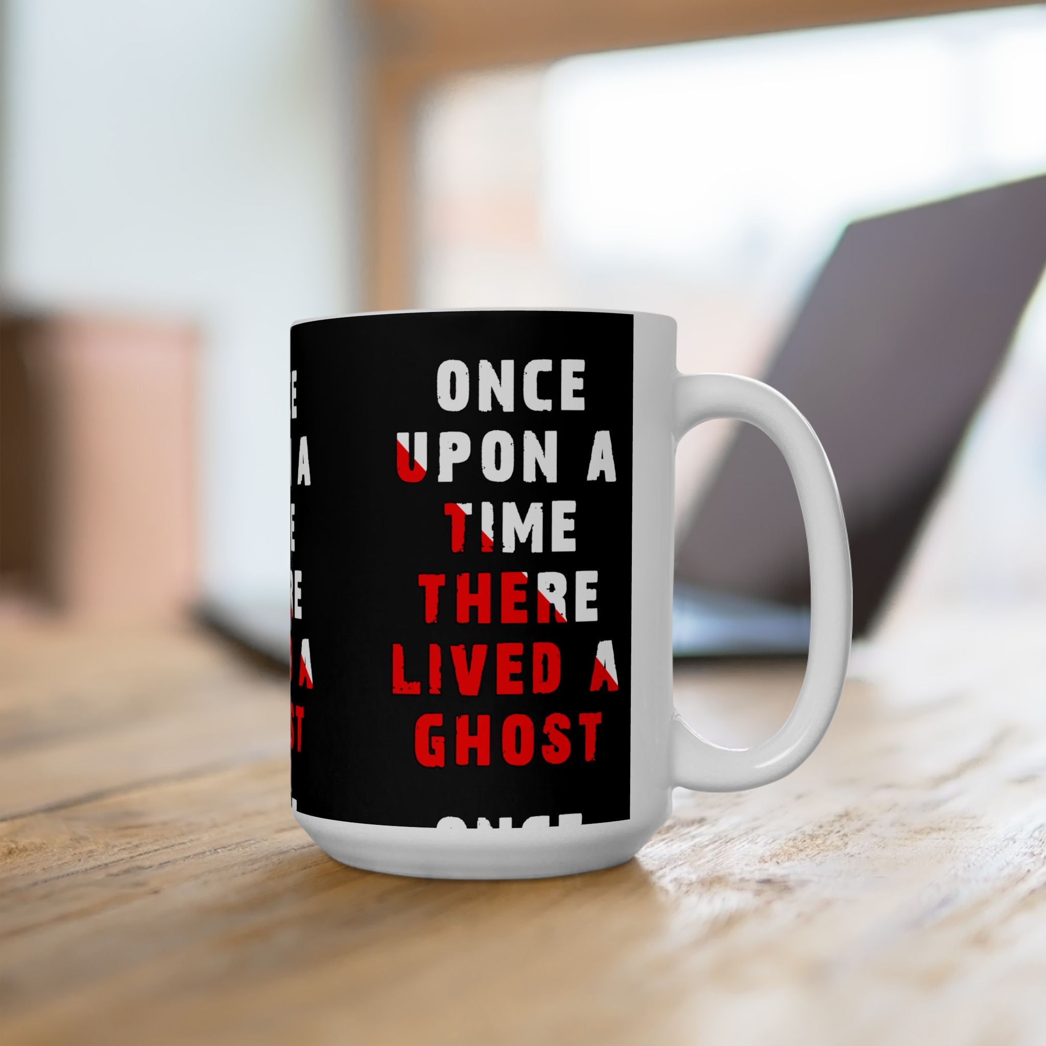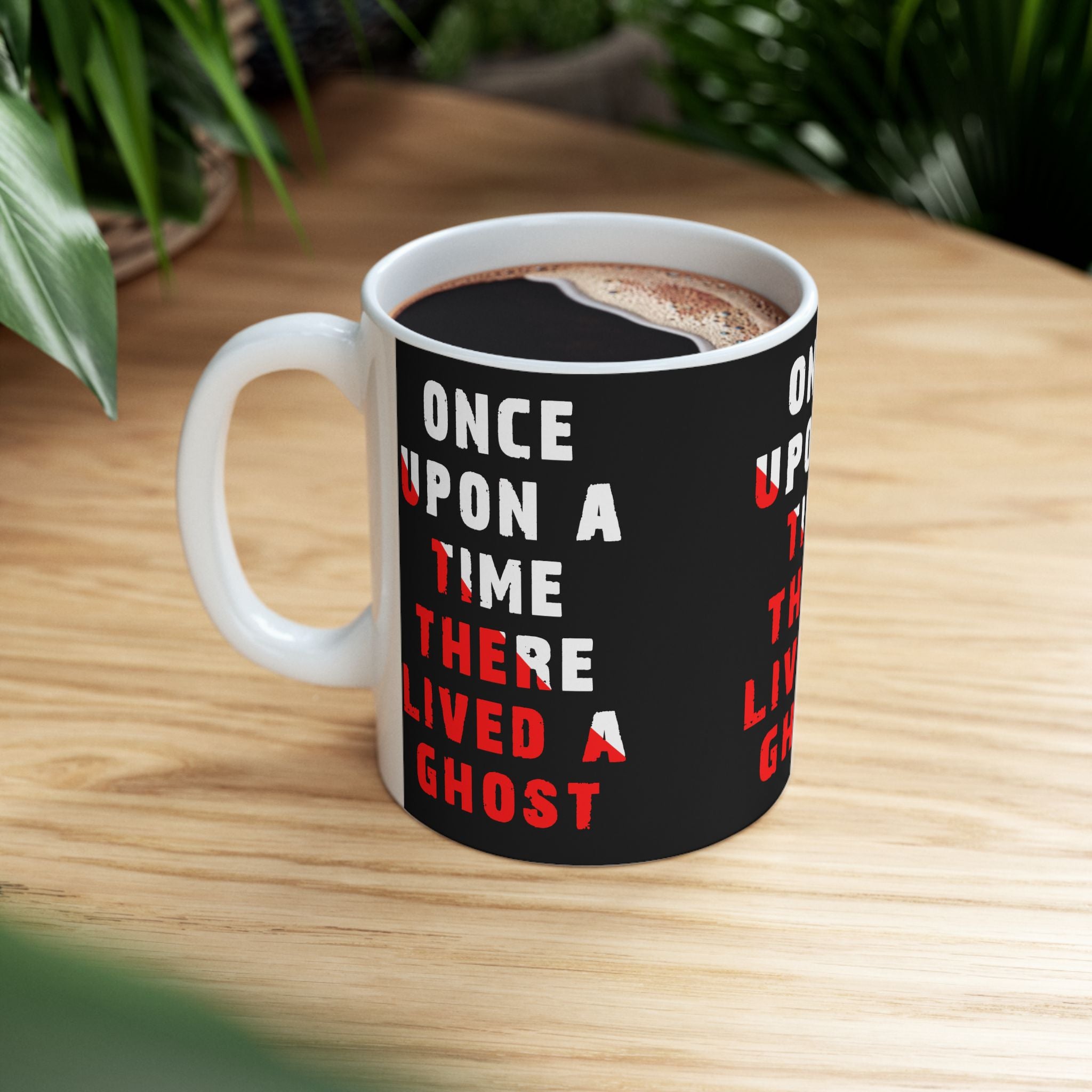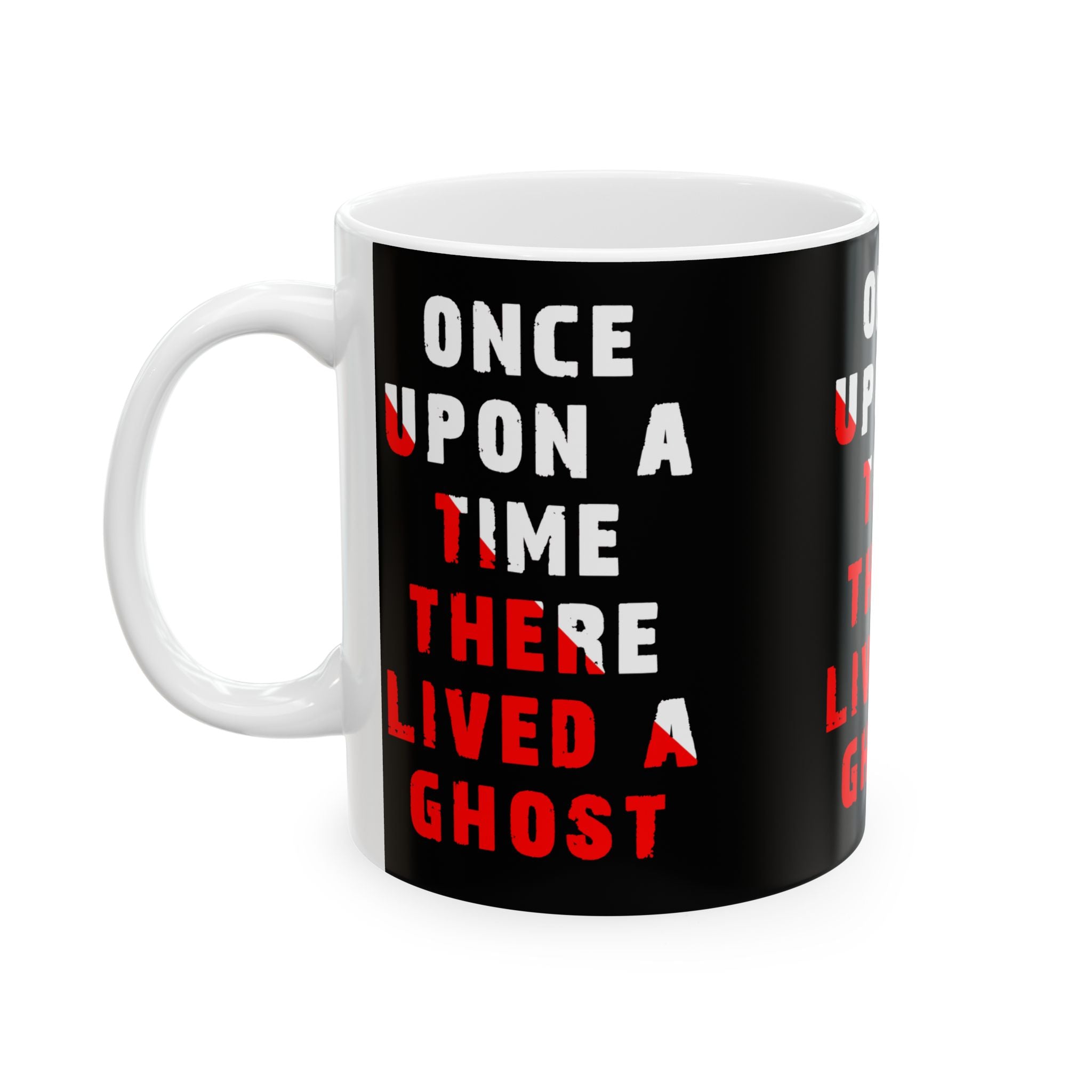 Bring a chilling tale to your morning coffee with the “Once Upon A Time There Lived A Ghost” Ceramic Mug. Featuring bold distressed typography in haunting red and white, this mug captures gothic mystery and paranormal storytelling in every sip.