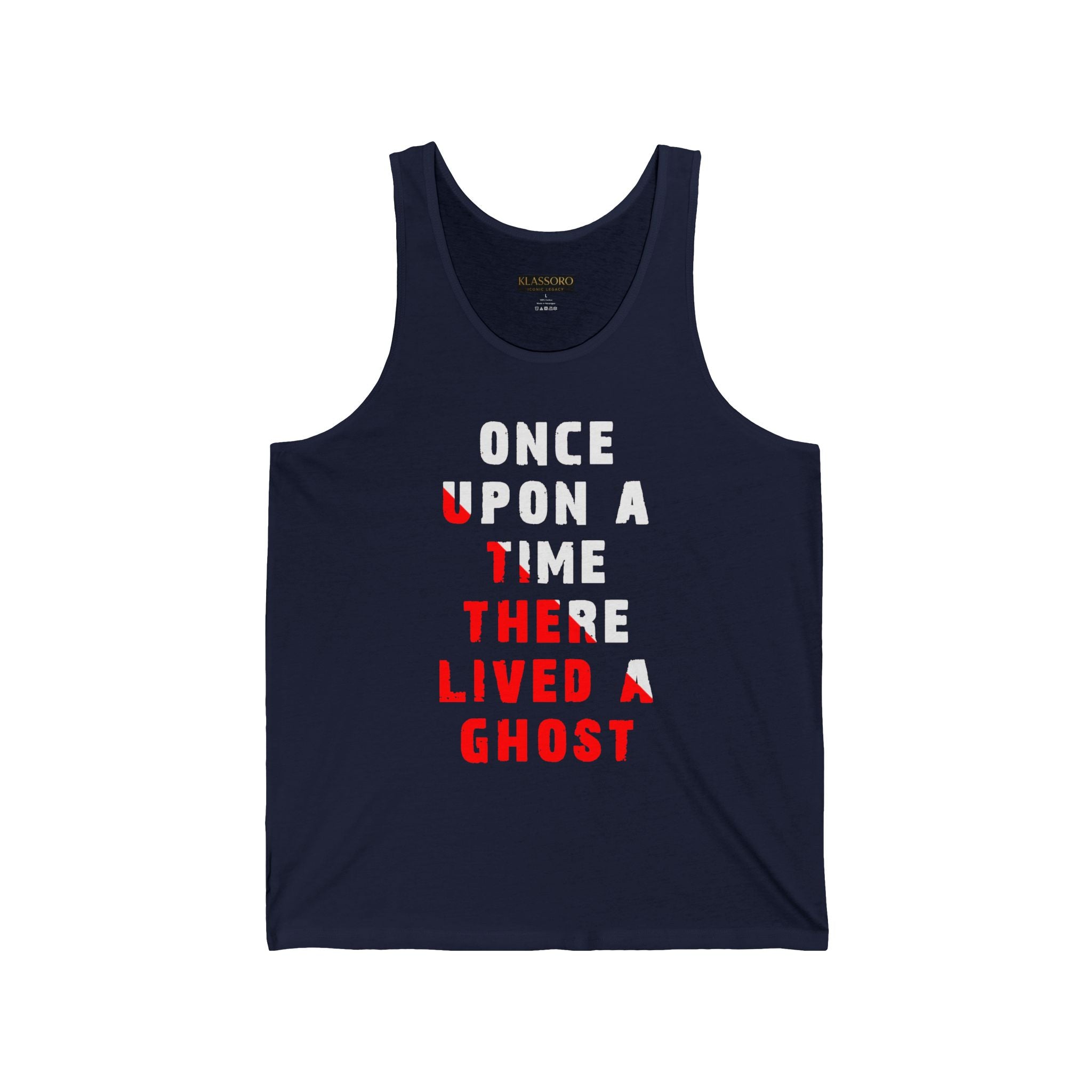 Stay cool while keeping the chills alive with the Unisex “Once Upon A Time There Lived A Ghost” Jersey Tank. Featuring distressed typography in eerie red and white, this tank combines spooky storytelling with breathable comfort.