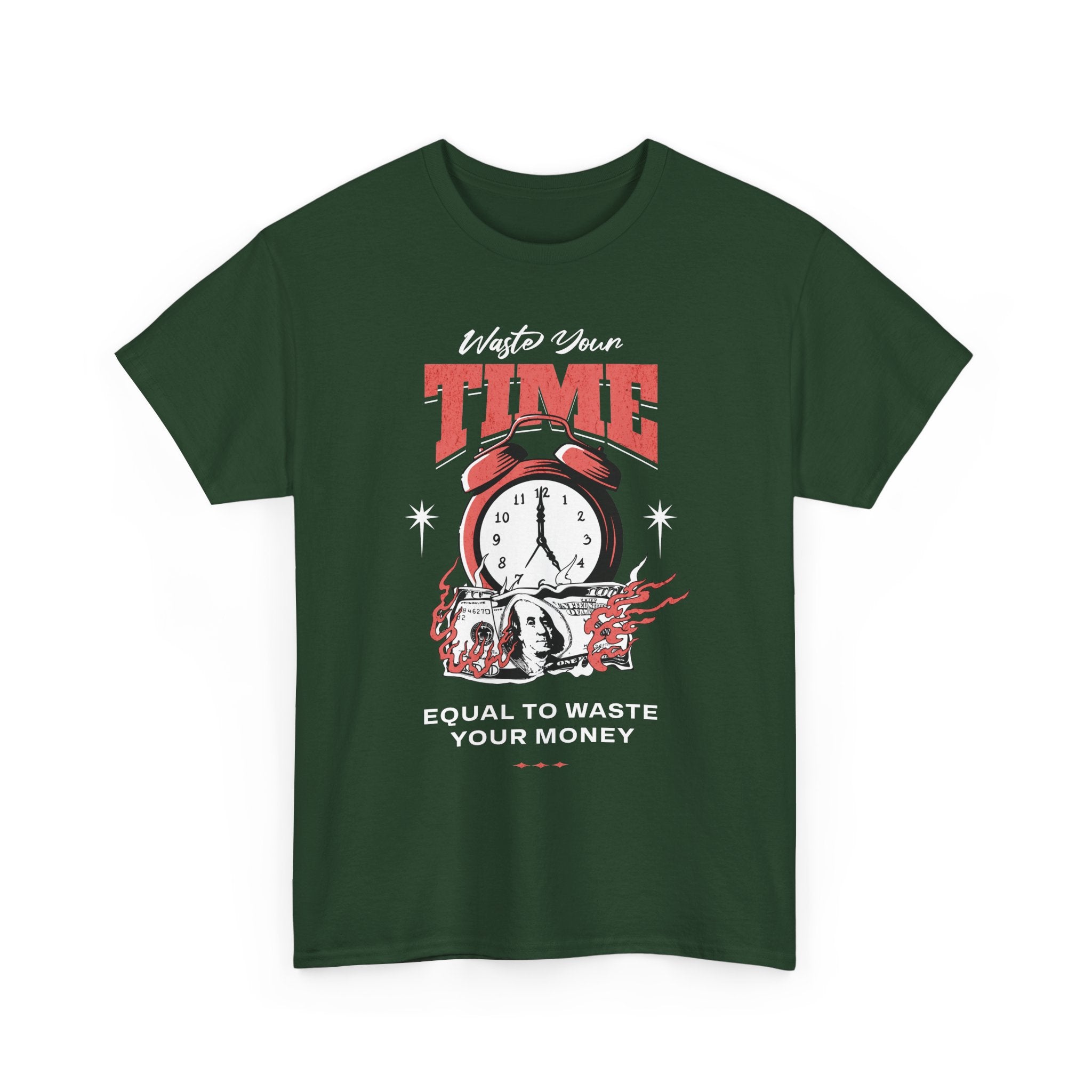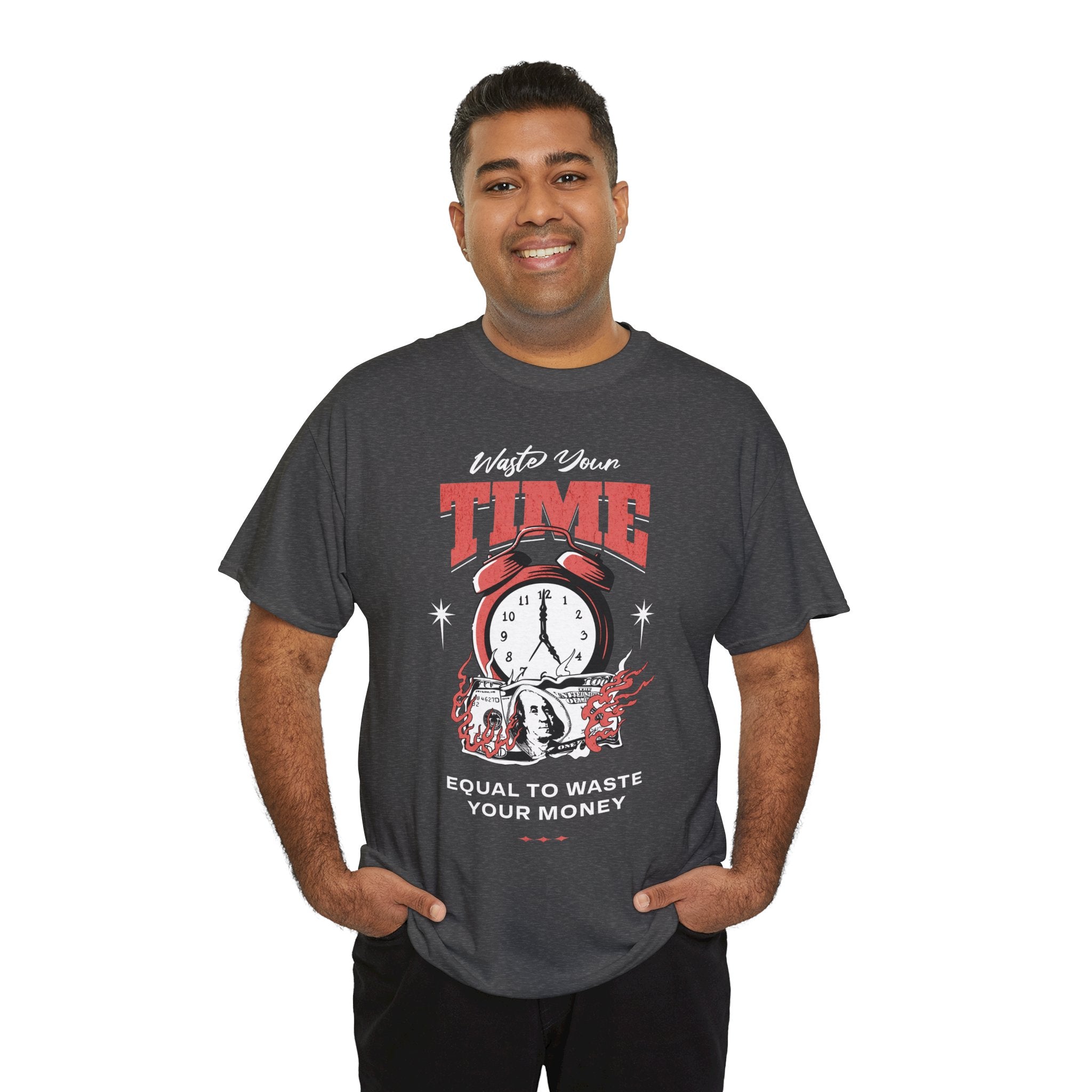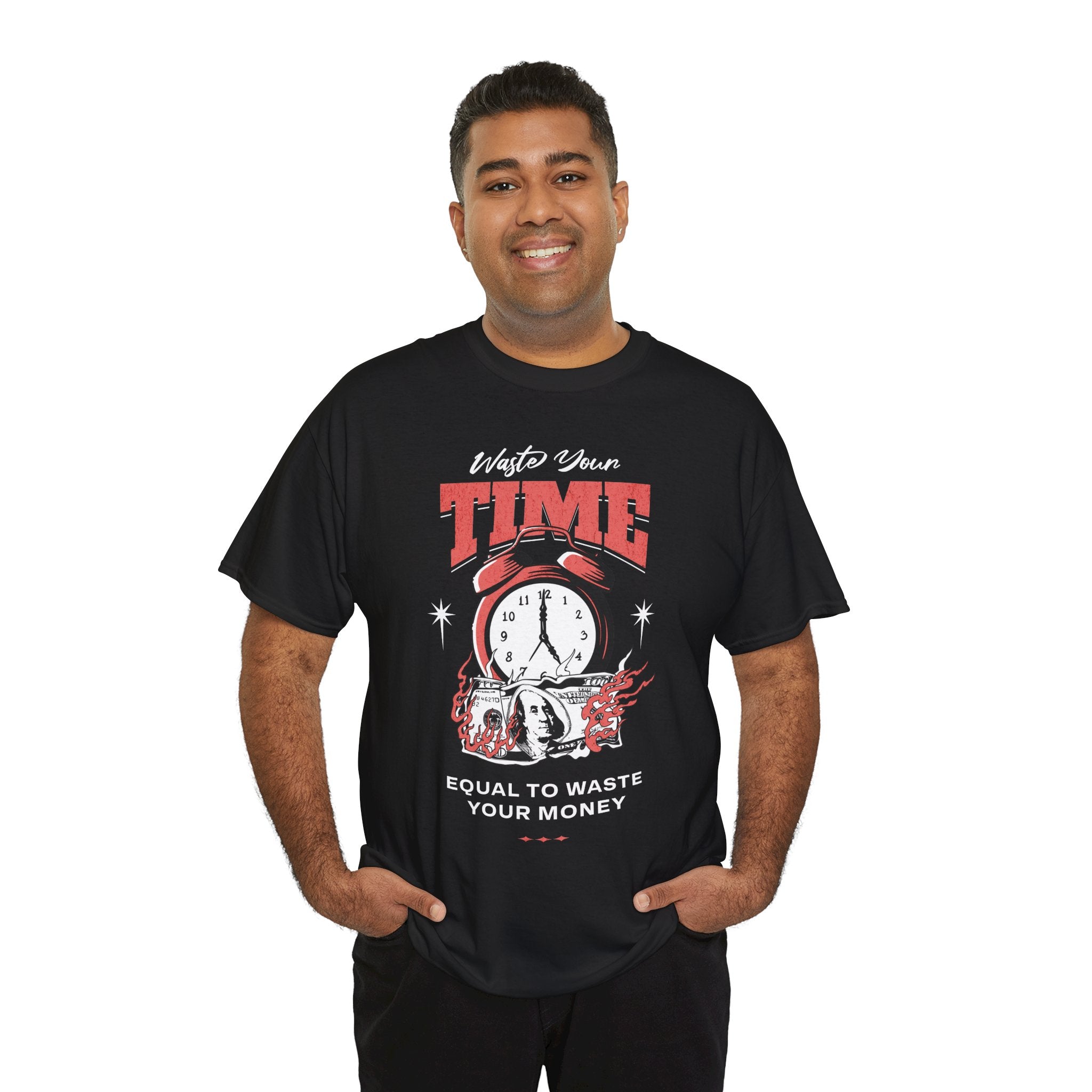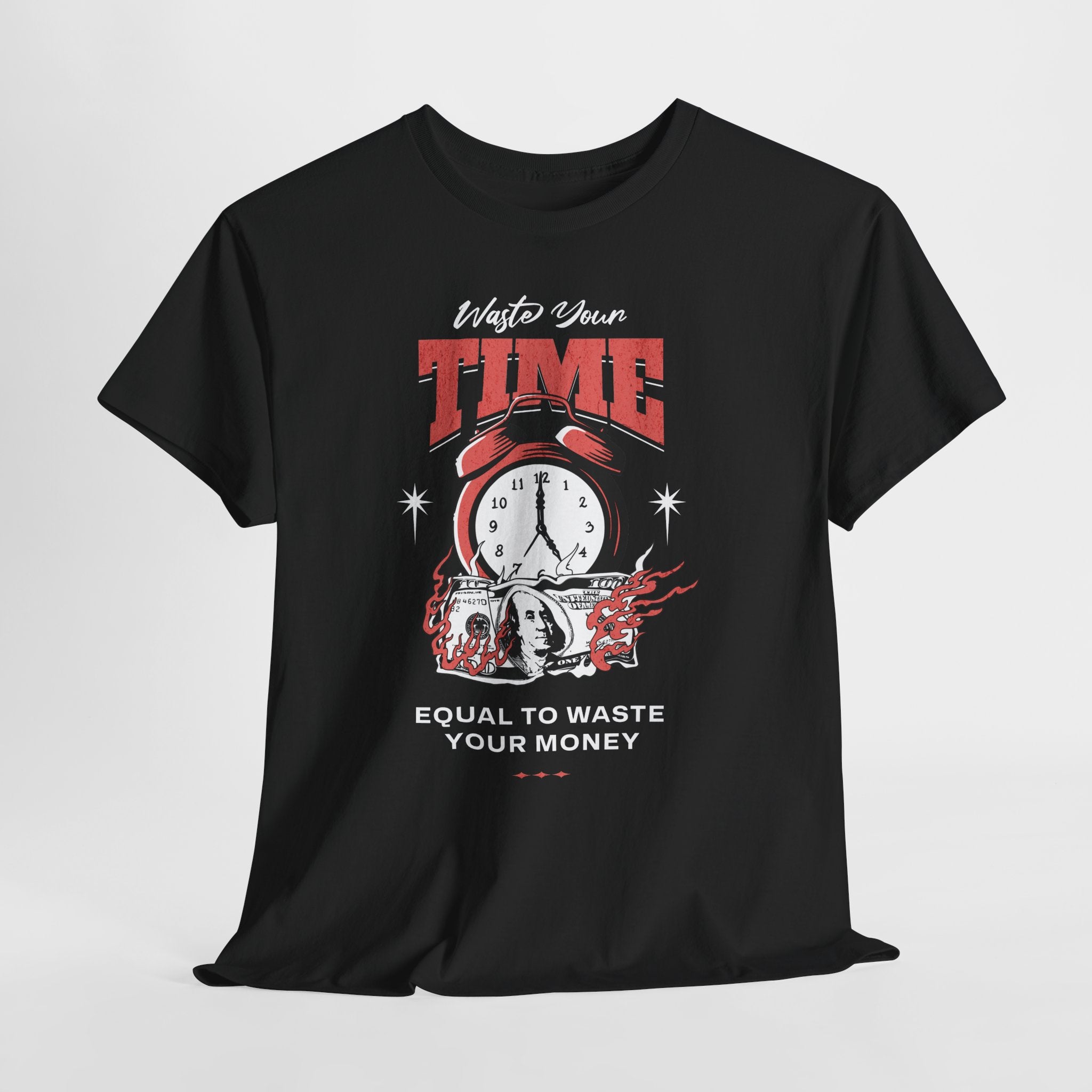 The Waste Your Time Unisex Heavy Cotton Tee is more than a shirt β itβs a daily reminder to value your time and invest in your hustle. Featuring a bold red-and-white retro alarm clock with burning dollar bills graphic and motivational typography, this tee delivers a message of discipline, productivity, and financial awareness.