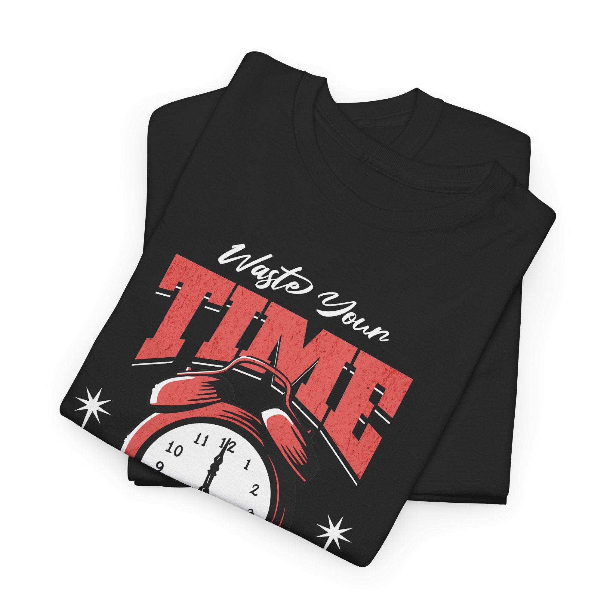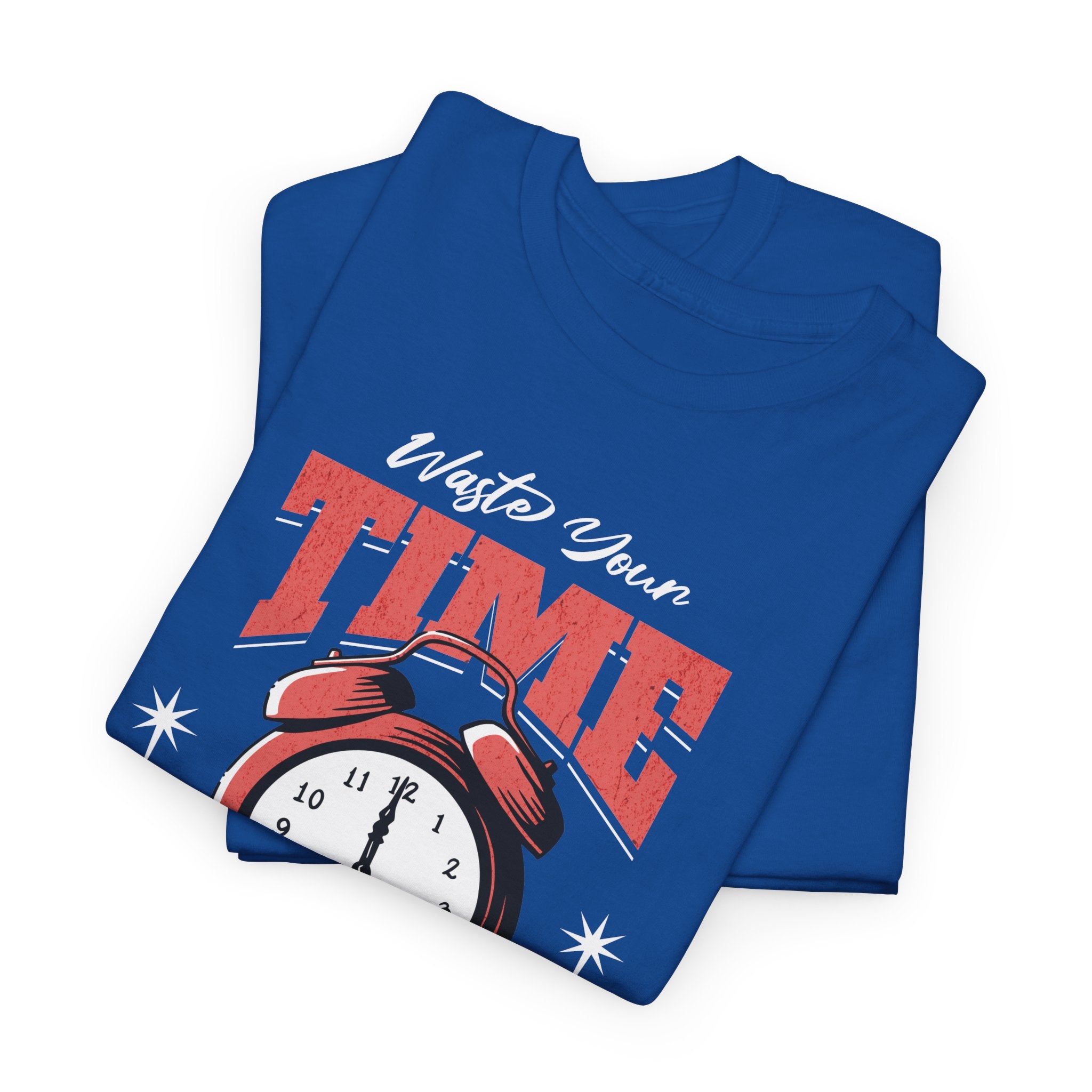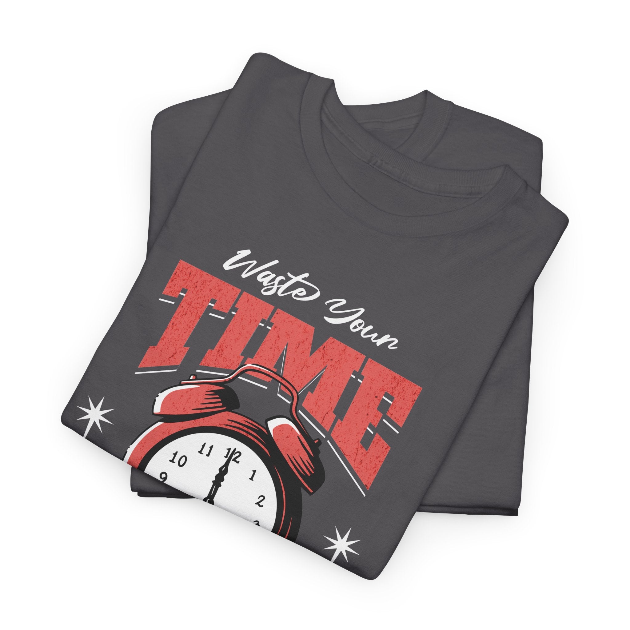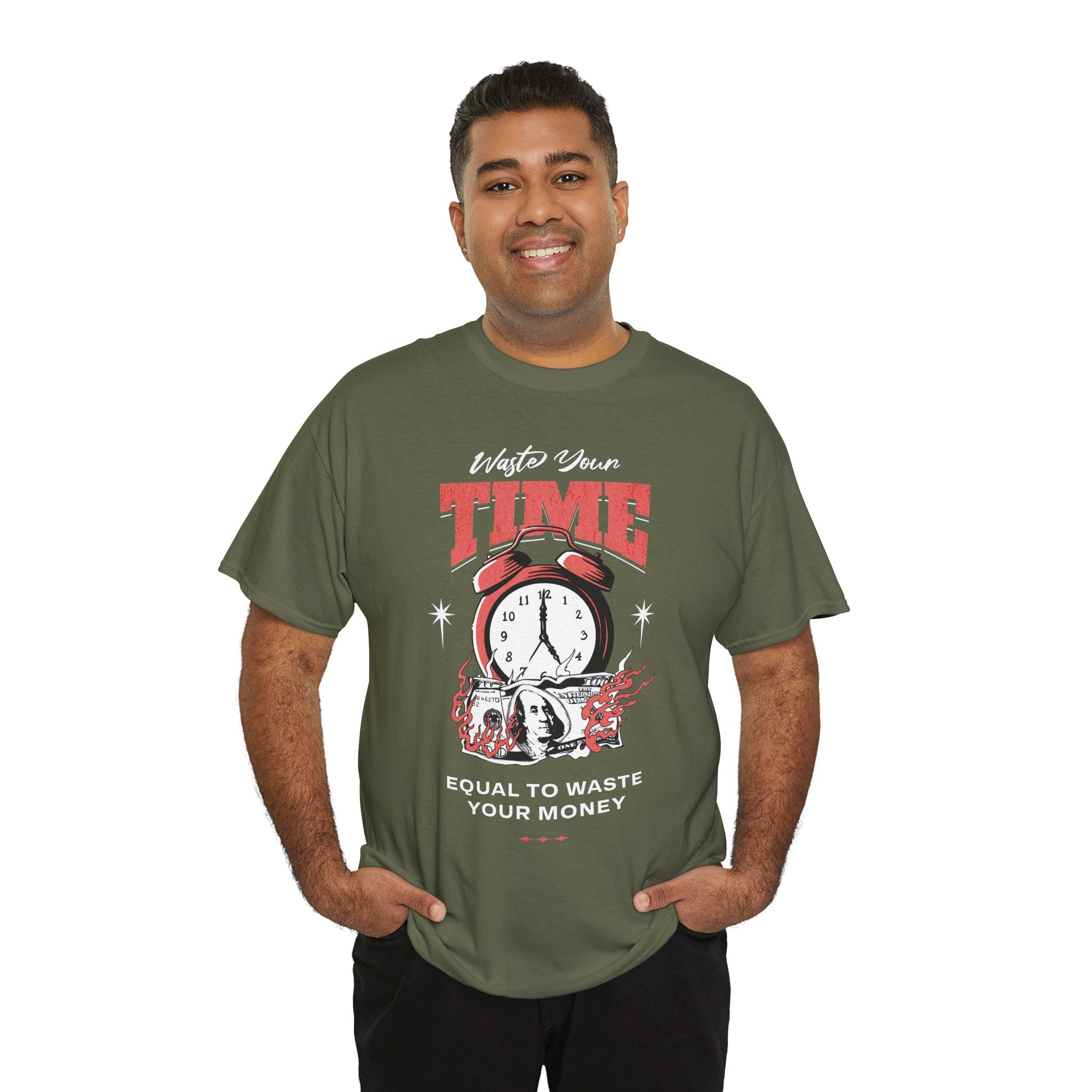 The Waste Your Time Unisex Heavy Cotton Tee is more than a shirt β itβs a daily reminder to value your time and invest in your hustle. Featuring a bold red-and-white retro alarm clock with burning dollar bills graphic and motivational typography, this tee delivers a message of discipline, productivity, and financial awareness.