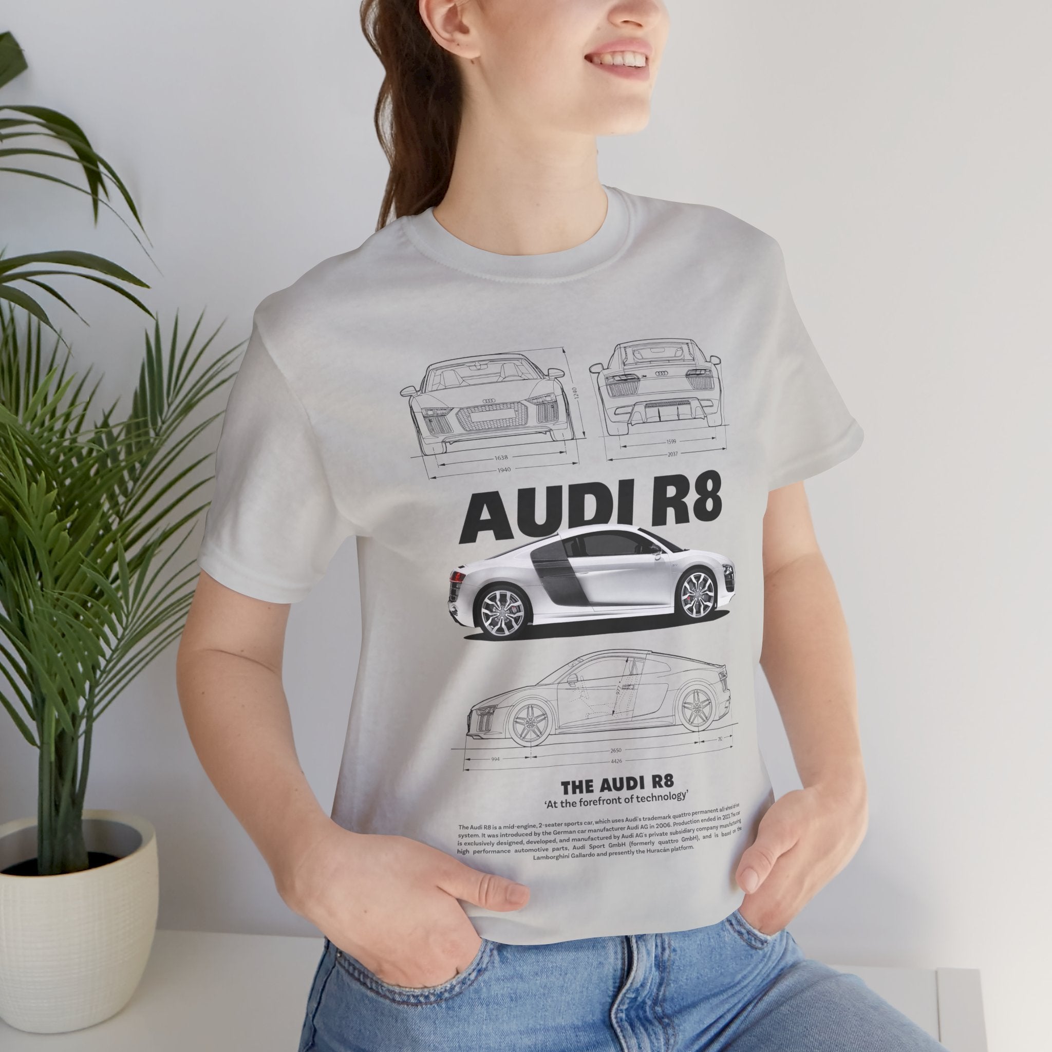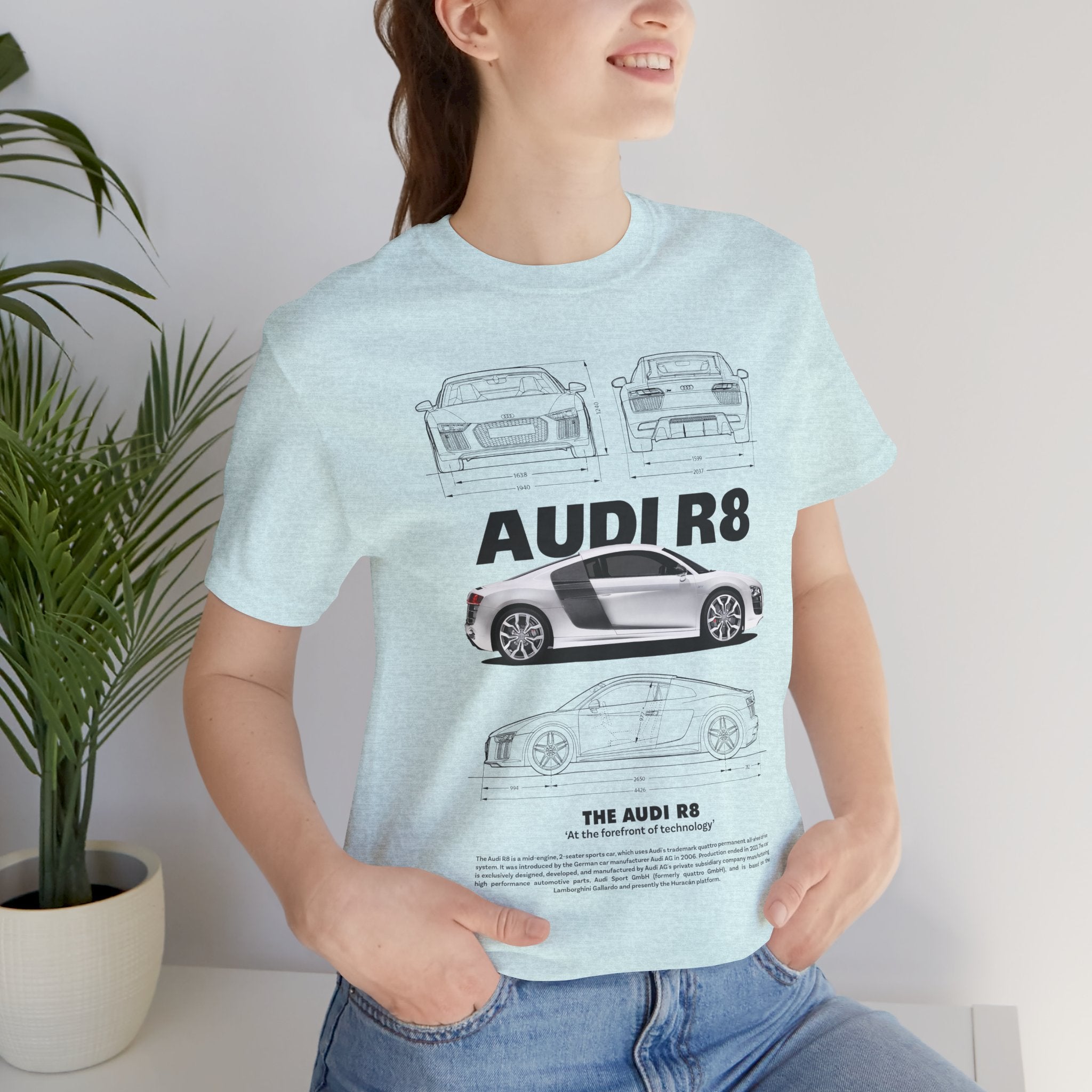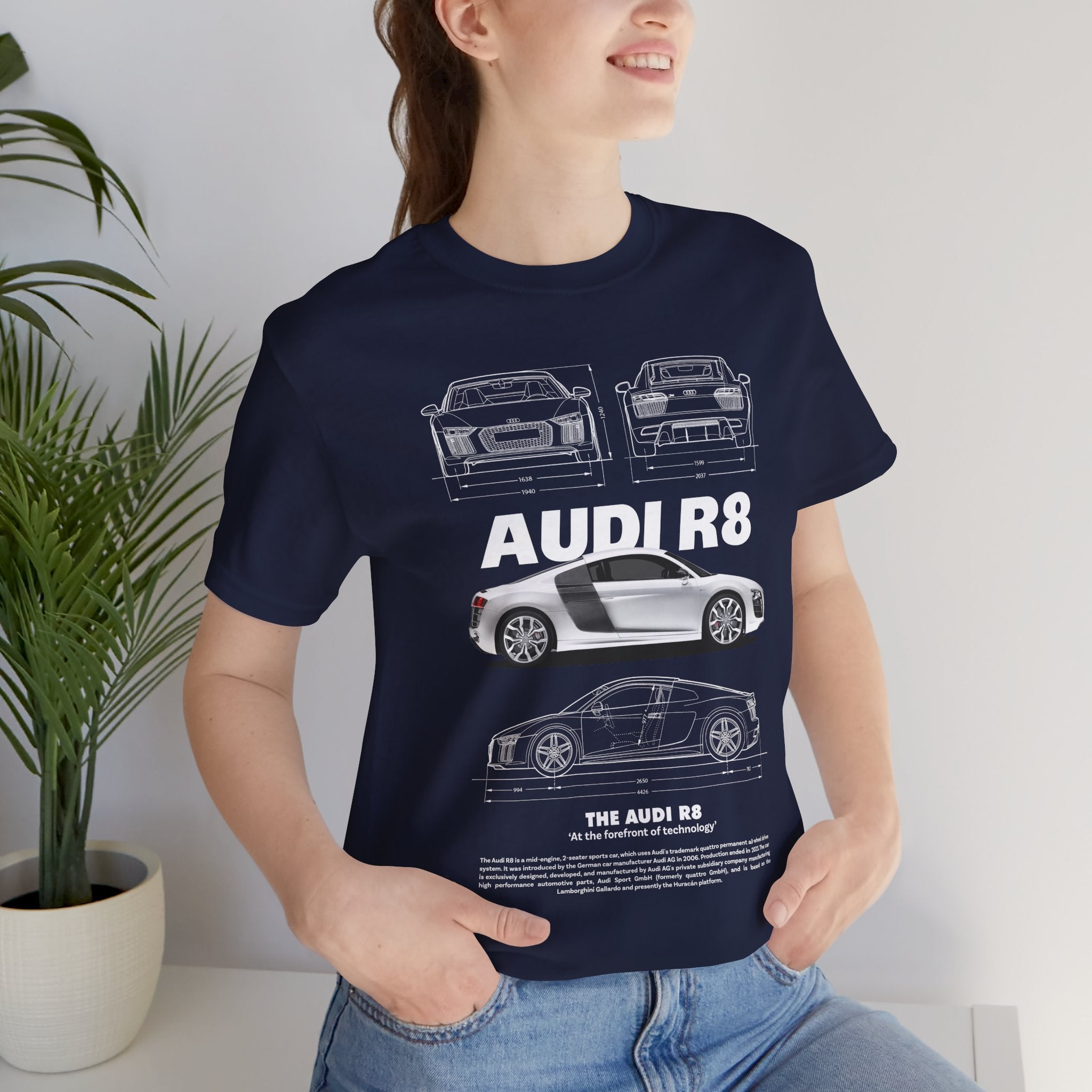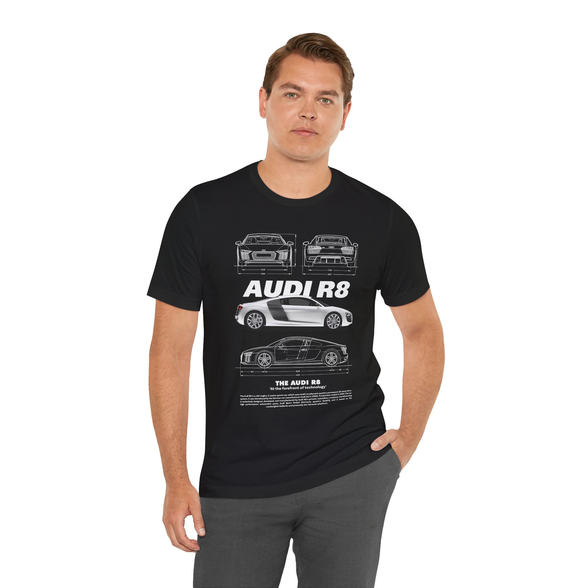 This Unisex Heavy Cotton Tee features a stunning blueprint and side-profile artwork of a modern mid-engine sports coupe — a machine known for balance, beauty, and razor-sharp performance. The clean white finish, iconic silhouette, and engineering lines give this tee a luxurious, high-performance aesthetic that stands out instantly.
