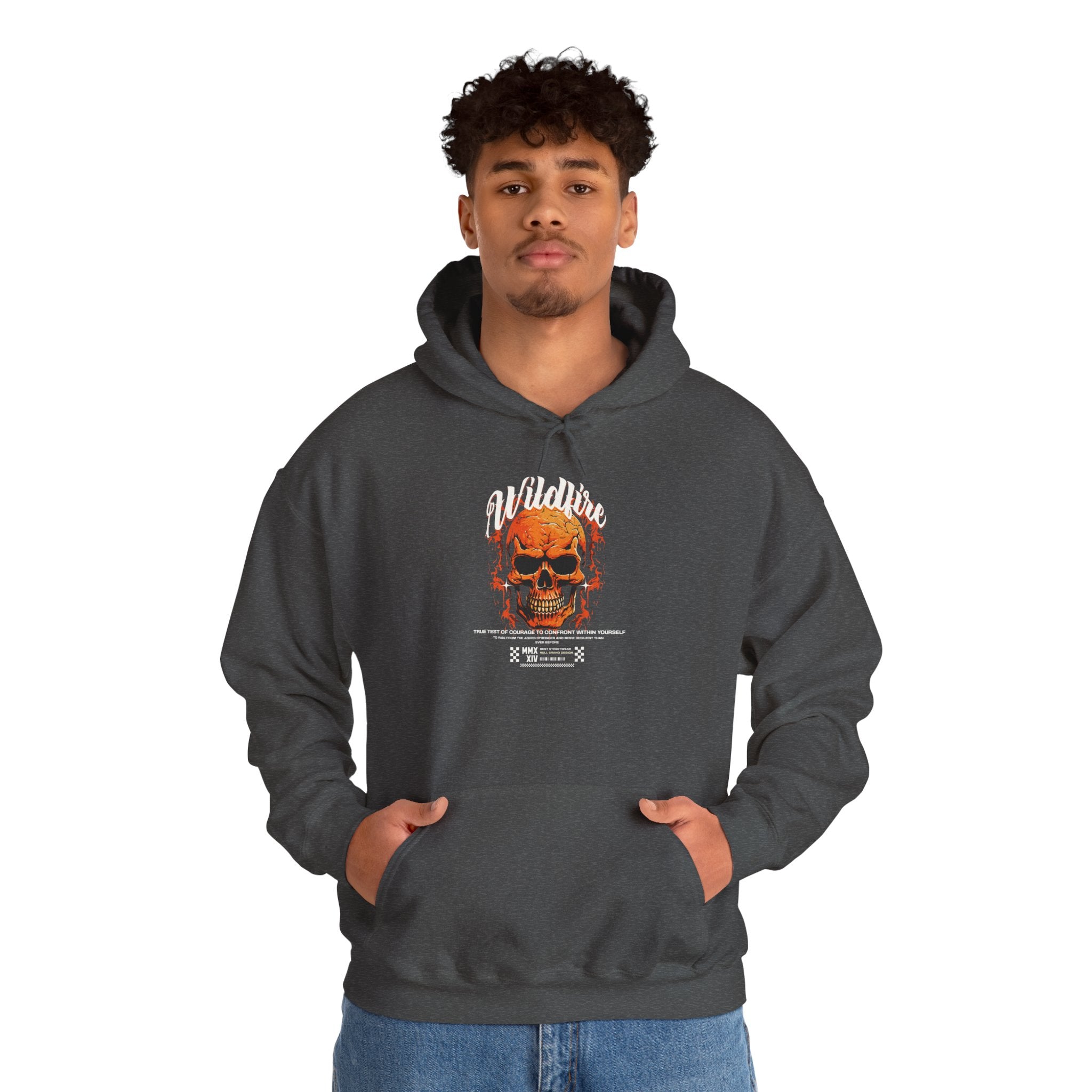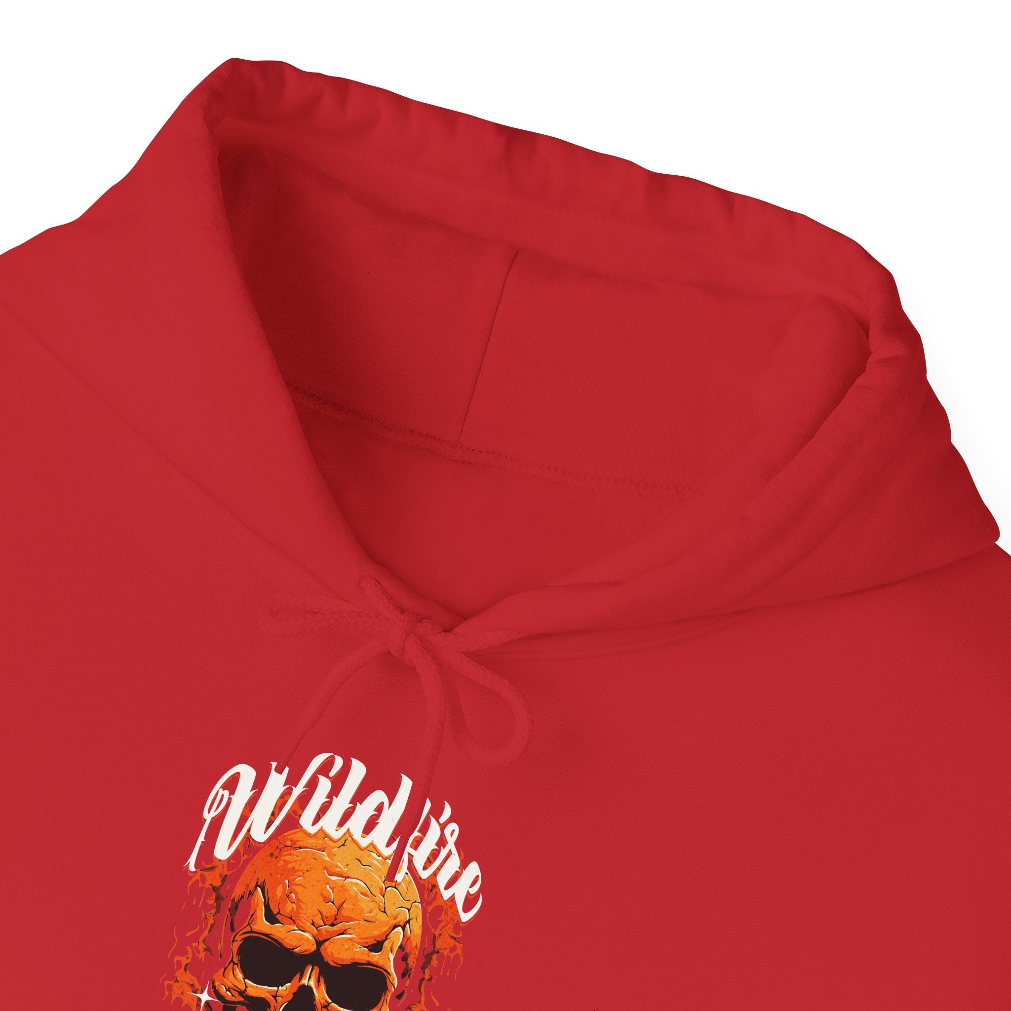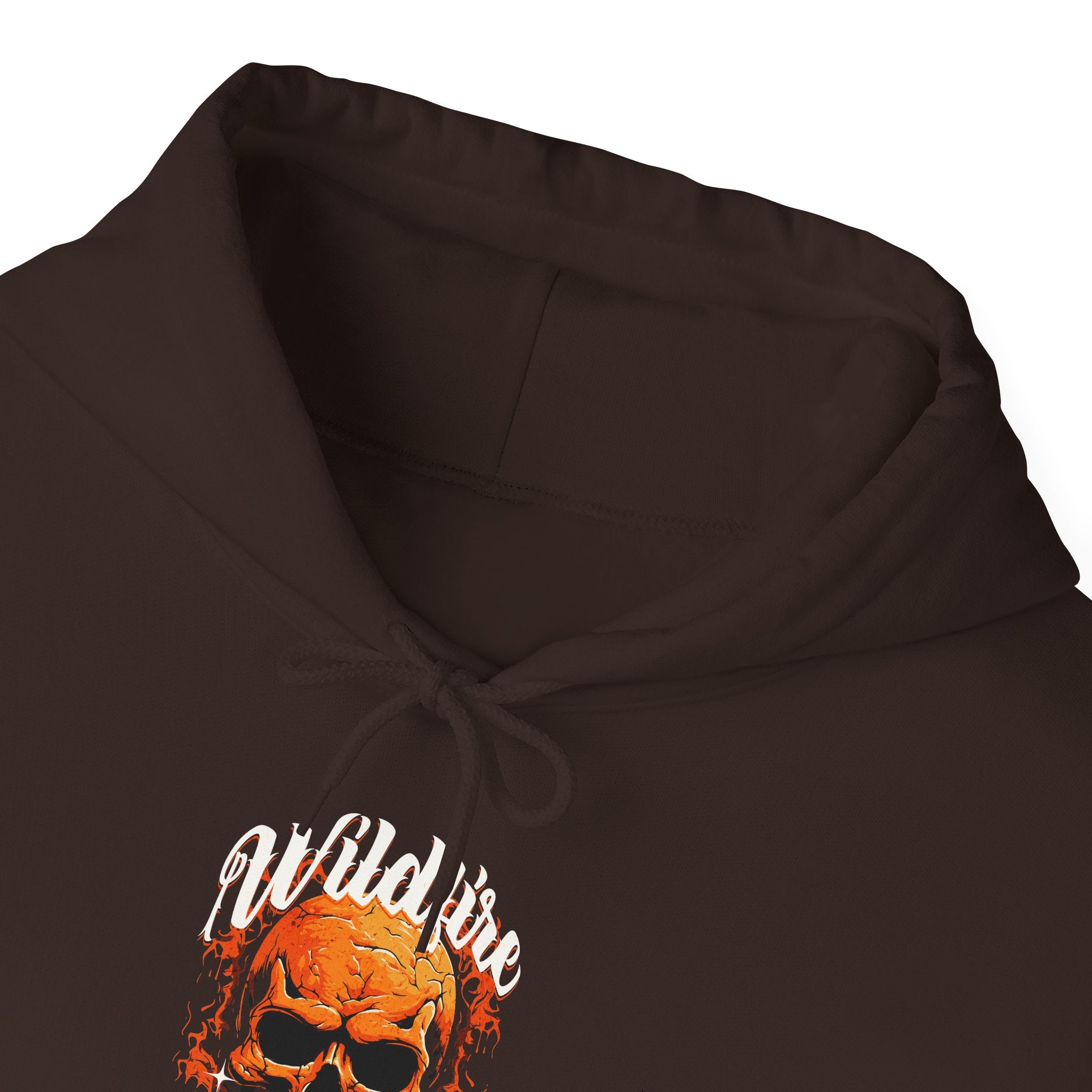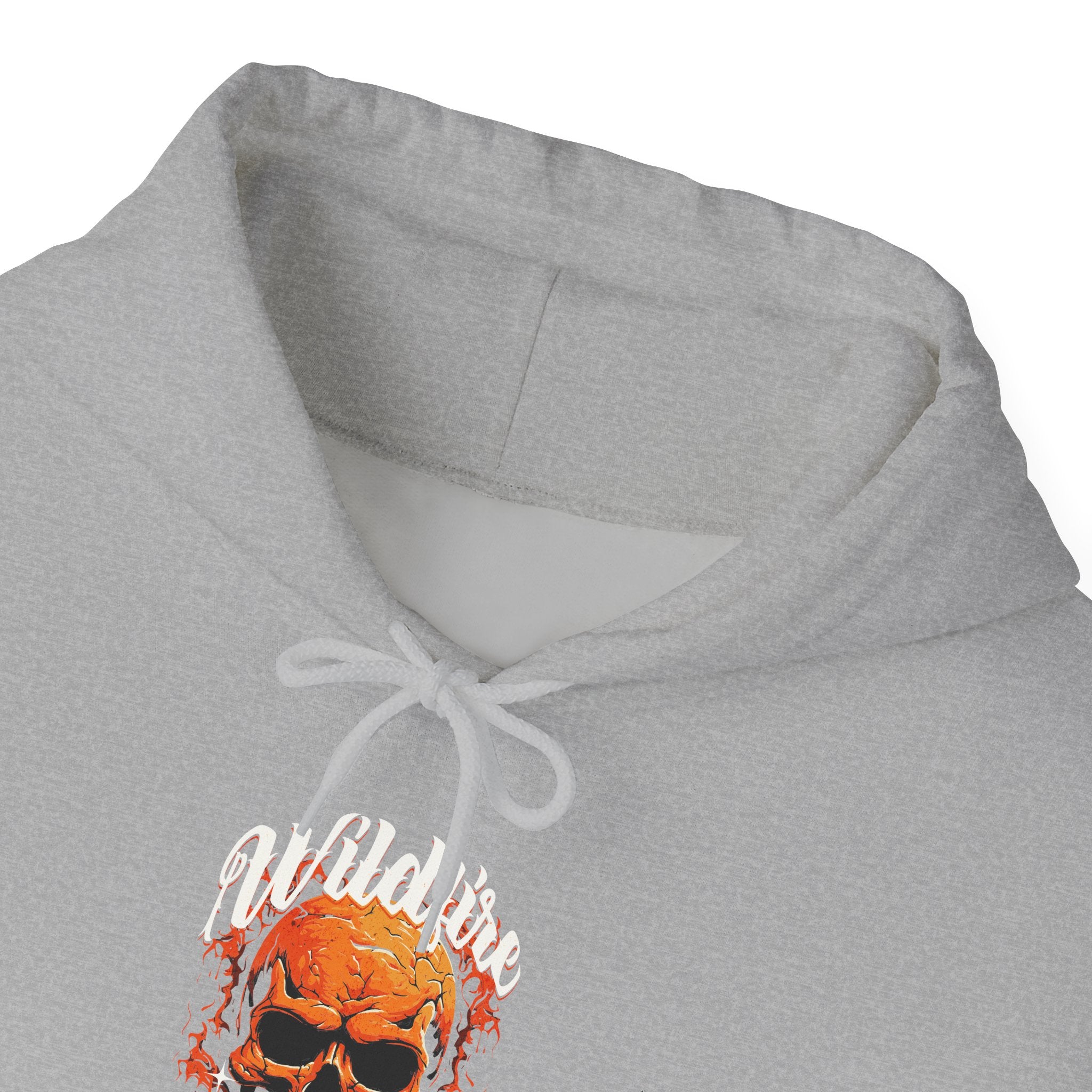 Unisex Heavy Blend™ Hooded Sweatshirt with Wildfire flaming skull design
